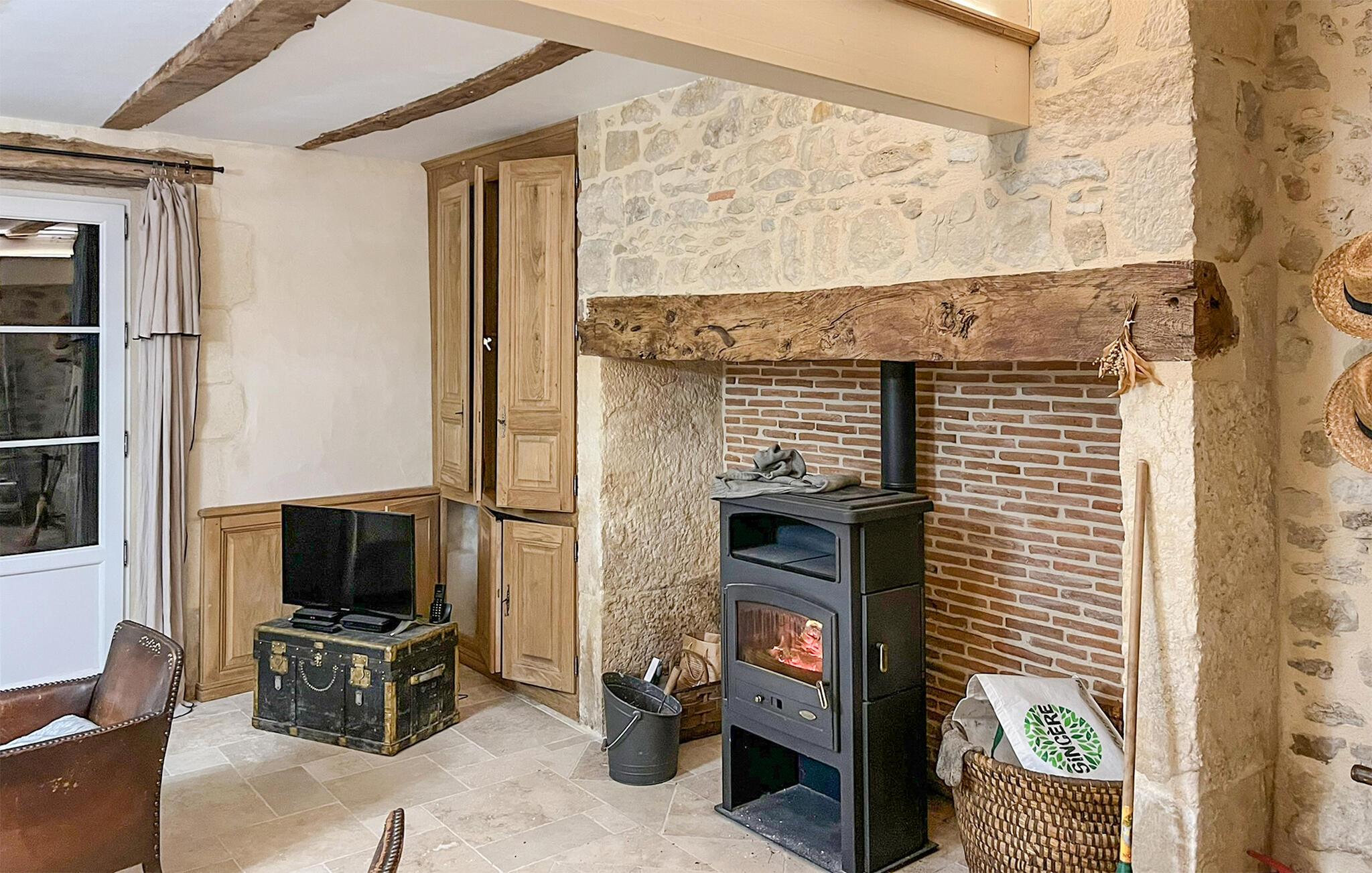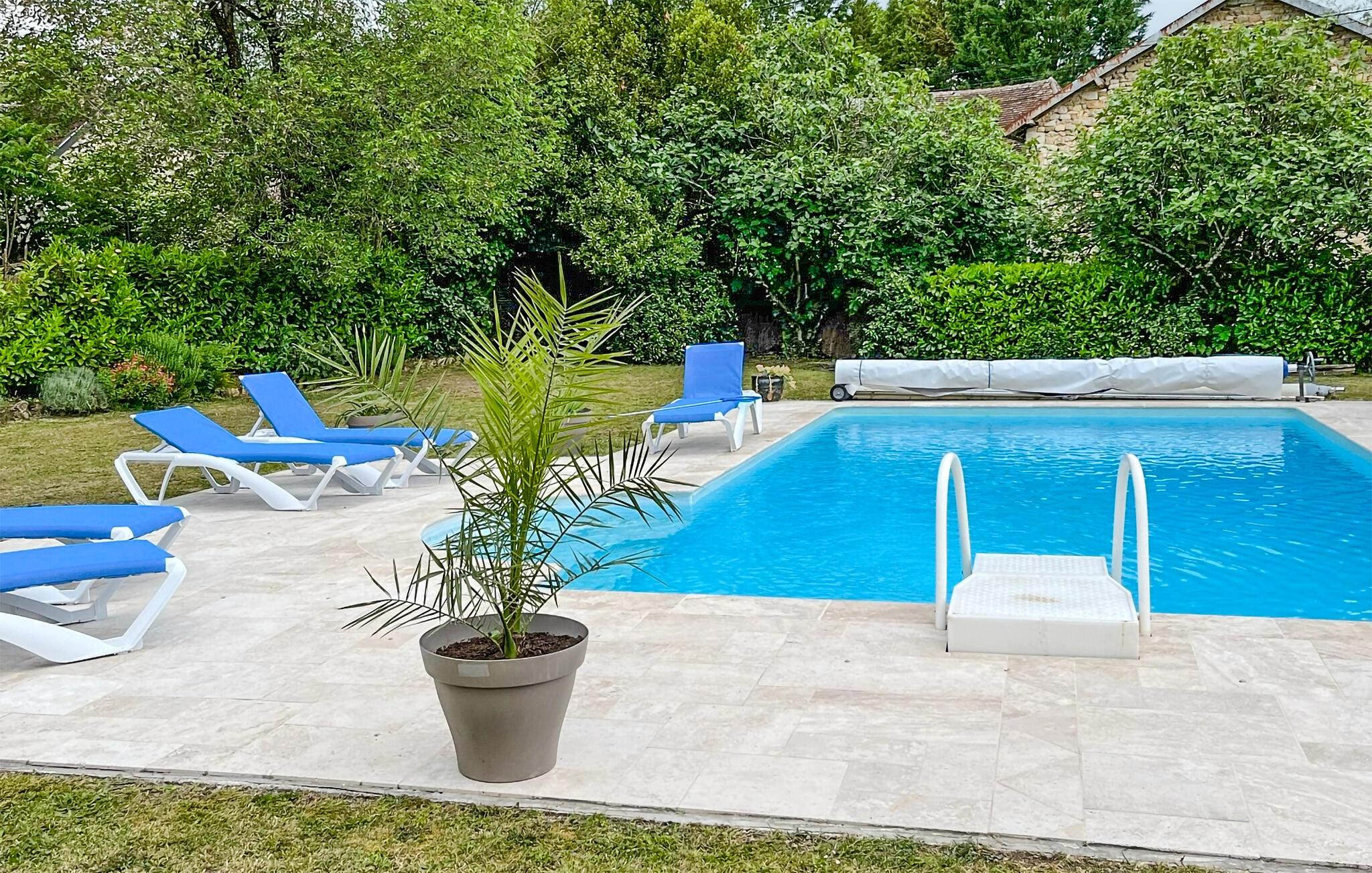 Beliggende i en fredfyldt lille landsby ca. 2 km fra Saint Rabier, opdag dette lyse og rummelige feriehus. Stueetagen byder på en indbydende opholdsstue udstyret med komfortable siddepladser, herunder sofaer og lænestole, placeret omkring en åben pejs. Glasdøre strækker sig til den indbydende terrasse, hvilket giver et problemfrit indendørs-udendørs flow. Derudover er der et veludstyret køkken med moderne bekvemmeligheder. Adgang via trætrapper med et gelænder åbner første sal til en privat terrasse med en smedejernspergola, ideel til udendørs spisning og afslapning. Den rummelige græsplæne med frugttræer giver et roligt sted at slappe af. Desuden er et tidligere halvåbent tobaksskur blevet omdannet til et dejligt rum, indrettet med et stort bord og træbænke, perfekt til at samles og nyde hyggelige stunder udendørs. Navnlig venter en privat pool i en separat eng knyttet til huset. Poolen, der har en størrelse på 9m x 4,5m og med en dybde fra 1,2m til 1,9m, er sikret med en låge, alarm og sikkerhedsafdækning, hvilket sikrer en sikker og behagelig svømmeoplevelse for gæsterne. Huset ligger i landsbyen "Muguet" ca. 2 km fra Saint-Rabier. Det er et ideelt udgangspunkt for at besøge regionen og nyde turistattraktionerne såsom Château de l'Herm, Hautefort, Losse, Castel Merle, klosteret Saint Amand de Coly. Nyd din ferie nær Lascaux og de andre bemærkelsesværdige steder i Vallée de l'Homme.
