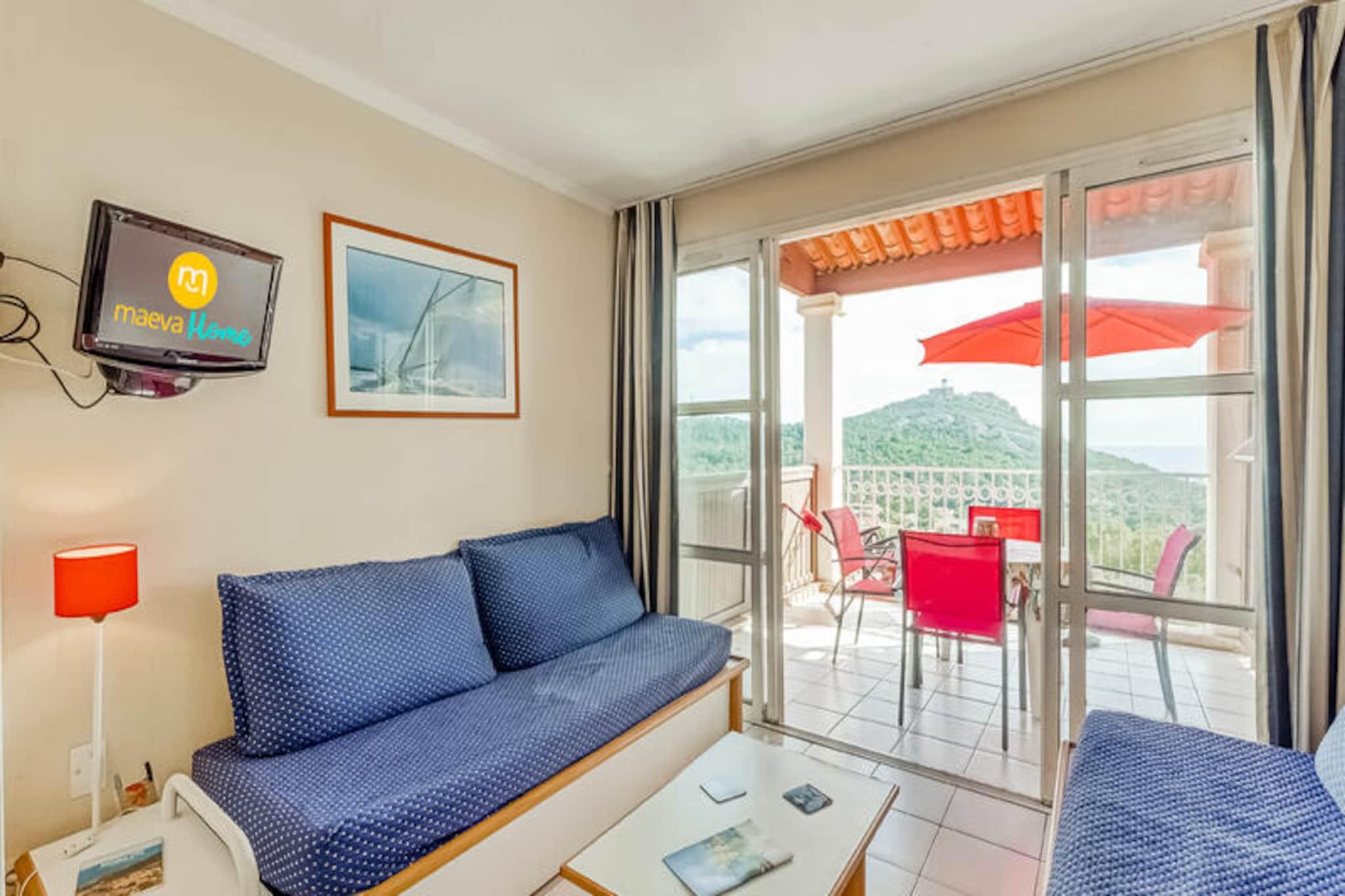 La Residencia Le Hameau de Cap Esterel - maeva Home le da la bienvenida a 9 km de Saint Raphael, con vistas al Mediterráneo y a la bahía de Agay. Esta residencia se encuentra dentro del club del pueblo de Cap Esterel, compuesto como un verdadero pueblo con su propio centro urbano, sus espacios verdes y sus pequeñas viviendas típicas del sur de Francia. Los apartamentos están distribuidos en pequeños edificios típicamente mediterráneos. Dentro del dominio encontrará un área acuática de 455 m2. con piscina infantil y más de 40 actividades a la carta en las inmediaciones. En el lugar, también podrá disfrutar de los servicios de un mini mercado y un snack bar en julio y agosto. También hay un restaurante disponible. Cerca encontrará tiendas, restaurantes y actividades en el Village Club Cap Esterel, accesible a pie, a 15 minutos. Los alojamientos de Maeva Home son alquileres totalmente equipados para personas ubicadas dentro de Pierre & Vacaciones. Se beneficiará de las ventajas de un Pierre & Vacaciones y servicios a la carta según sus deseos. Servicio de limpieza adicional. A realizar al final de la estancia, ya sea por parte del cliente o mediante el pago del servicio en el momento de la reserva, en el pre-check-in o en el momento de la llegada. Actividades de ocio en el sitio (cargo adicional): *Minigolf * Trenecito * Piscina exterior con piscina, dos piscinas de ocio para niños, tumbonas, zona de "playa privada" con coste adicional (piscina accesible según alojamiento) * Campo polideportivo Actividades cercanas (cargo adicional): *Actividades acuáticas y excursiones marítimas en Saint Raphaël. *Senderismo en el Macizo del Esterel *Barranquismo en las gargantas del Verdon *Balneoterapia cercana. *Deportes acuáticos cercanos *Tenis Importante: La piscina es accesible según el alojamiento. Fechas de apertura de la piscina: Piscina Grand Bleu (piscina climatizada): del 06/04/2024 al 03/11/2024 Piscina de olas (piscina no climatizada): del 20/04/2024 al 20/10/2024 Piscina Hameau (piscina no climatizada): del 06/04/2024 al 03/11/2024 Piscinas Hameau para adolescentes (piscina no climatizada): del 06/07/2024 al 01/09/2024 Su alquiler vacacional incluye: 1 salón, 1 cocina, 1 dormitorio, 1 baño, 1 aseo, 1 balcón y 1 plaza de aparcamiento. Las ventajas de su alquiler: Precioso apartamento para 4 personas que disfruta de un balcón esquinero orientado al sur con impresionantes vistas de la Isla de Oro, situado a 1 km de la playa, en una residencia con piscina. Superficie: 28 m². Ubicación: Piso de alojamiento: 2do piso Acceso a playa o pista: No Centro de ciudad o pueblo: No Distancia de las pistas al mar: >500m Distancia comercial: entre 100m y 500m Actividades a distancia: entre 100m y 500m Número de niveles de vivienda: Una sola planta Composición de la estancia: Capacidad: 2 sofás cama (2 camas) Número de sillas (o taburetes): Sí Mesa de centro: Sí Lado de la comida: Tipo de cocina: americana Mesa en la cocina: Sí Número de sillas en la cocina: 4 Composición de las habitaciones: Dormitorio 1: Camas dobles: 1 Composición del baño: Número de baño: 1 Tipo de baño: Bañera con columna Estado del baño principal: Buen estado Un inodoro privado dentro del alojamiento: Sí Exteriores: Balcón: Sí Vista balcón: Mar Orientación balcón: Sur Aparcamiento dedicado al alojamiento: Sí Tipo de Estacionamiento: Cubierto Etiqueta de selección de hogar maeva: Apartamentos mantenidos, al día y con equipamiento de calidad. Para unas vacaciones exitosas y confortables. Acceso Wifi - Con suplemento - sujeto a disponibilidad. Se admiten mascotas - Además, consultar precios directamente con la residencia. Estación de carga para coches eléctricos - terminales eléctricos de 7 kW en el aparcamiento de Cap Esterel Village. Precios y pago directamente en las terminales. 0,30EURO por KWH - Cargo fijo de 1 € por recarga - Incremento + 2EURO/hora después de 2 horas de 8 a 20 horas. Ropa de cama - Con coste adicional - El contenido puede variar según la residencia: sábana bajera, sábana o funda nórdica y funda de almohada. Posibilidad de cambio diario de ropa de cama disponible con coste adicional, consultar precios en recepción. Toallas - Cargo extra. Posibilidad de cambio de ropa de diario disponible, consultar precios en recepción. Limpieza final de estancia - Servicio de limpieza obligatorio a pagar al realizar el check-in o a la llegada. Limpieza diaria - Disponible con coste adicional, consultar tarifas en recepción. Estacionamiento - De pago € Pago únicamente en las taquillas del parking. Piscina - Accesible según alojamiento. Euro Fechas apertura de piscinas: Piscina Grand Bleu (piscina climatizada): del 06/04/2024 al 03/11/2024 Piscina de olas (piscina no climatizada): del 20/04/2024 al 20/10/2024 Piscina Hameau (piscina no climatizada): del 06/04/2024 al 03/11/2024 Piscinas Hameau para adolescentes (piscina no climatizada): del 06/07/2024 al 01/09/2024 Tasa turística (cargo adicional) - El pago de la tasa turística se realiza a través de su espacio personal: https://mon-compte.maeva.com, el importe varía según la ubicación. Gratis para menores de 18 años. Televisión - Según alojamiento. Depósito (en euros) - 500 Wi-Fi - incluido Limpieza final de estancia - Servicio de limpieza obligatorio a pagar al realizar el check-in o a la llegada. Ropa de cama - Cargo adicional.