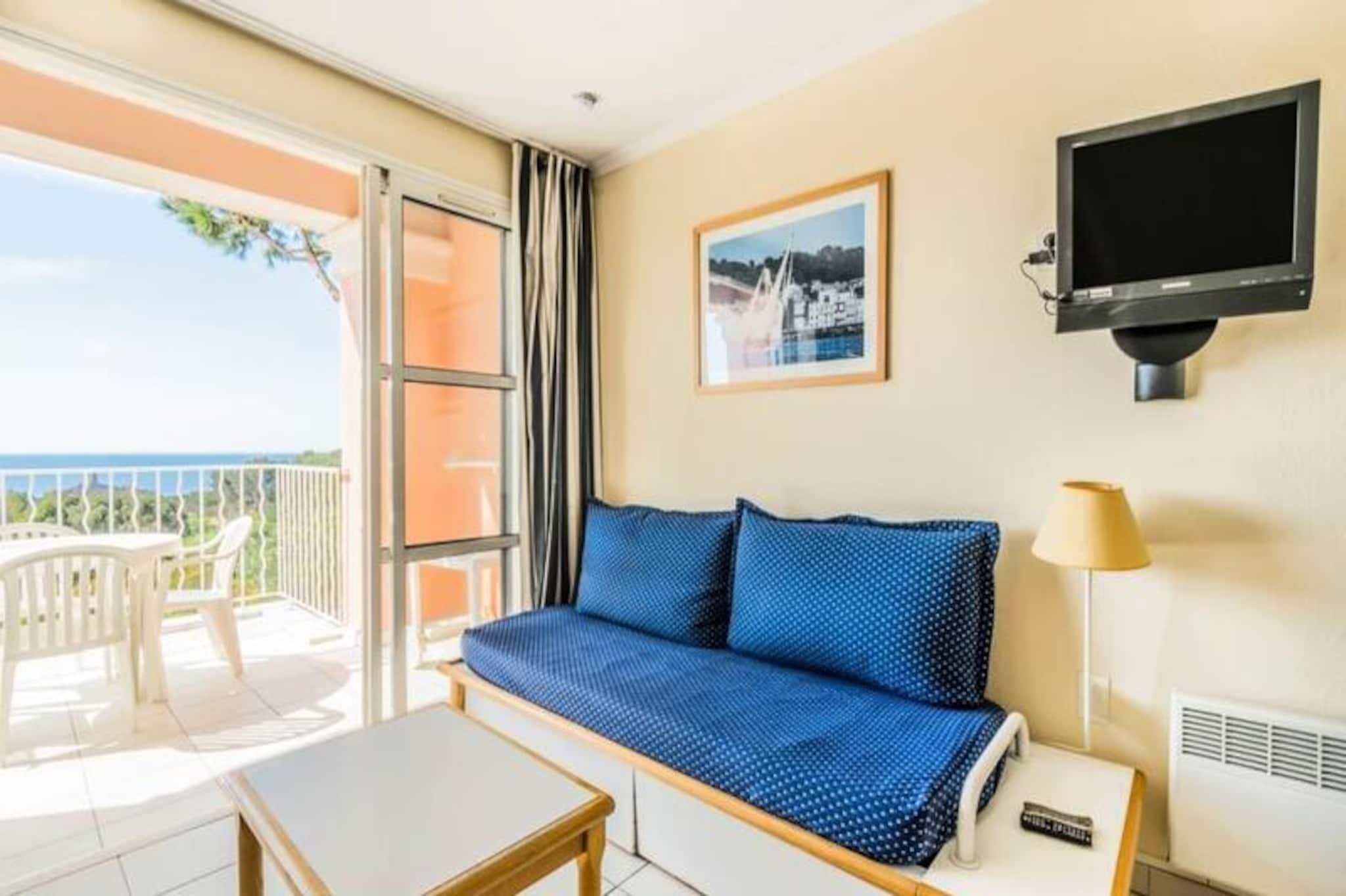 Denne moderne lejlighed p? 29 m² ligger p? 3. sal i en bygning i middelhavsstil og tilbyder et komfortabelt opholdsrum for op til fire g?ster. Lejligheden har en stue med en sovesofa, en udtr?ksseng og en spiseplads med plads til fire. Sovev?relset er indrettet med dobbeltseng, mens badev?relset har badekar og separat toilet. Du har ogs? adgang til en sydvendt terrasse med en fantastisk havudsigt, perfekt til at nyde solen. Gratis parkering er tilg?ngelig ved boligen, med en overd?kket parkeringsplads dedikeret til din bolig. Beliggende kun 500 meter fra havet, giver boligen nem adgang til lokale attraktioner og aktiviteter. Saint Raphael ligger 9 km derfra, mens det n?rliggende landsbycenter byder p? butikker, restauranter og en r?kke fritidsmuligheder. Landsbyen har ogs? et vandomr?de med swimmingpools, minigolf og en multisportsbane. For udend?rsentusiaster er vandreture i Esterel-massivet til r?dighed, sammen med vandaktiviteter i Saint Raphael og Verdon Gorges. Yderligere tjenester s?som restauranter og et minimarked er tilg?ngelige p? stedet. Lejligheden er fuldt udstyret med k?kken med ovn, k?leskab, mikroovn og opvaskemaskine, hvilket g?r den praktisk til selvforplejning. Du finder ogs? et dedikeret rum til reng?ring med vaskemaskine og t?rretumbler. Wi-Fi-adgang er tilg?ngelig mod et till?gsgebyr. P? stedet er der flere swimmingpools, herunder opvarmede muligheder og et privat strandomr?de. Boligen har ogs? ladestationer til elbiler, hvilket sikrer din komfort under dit ophold.