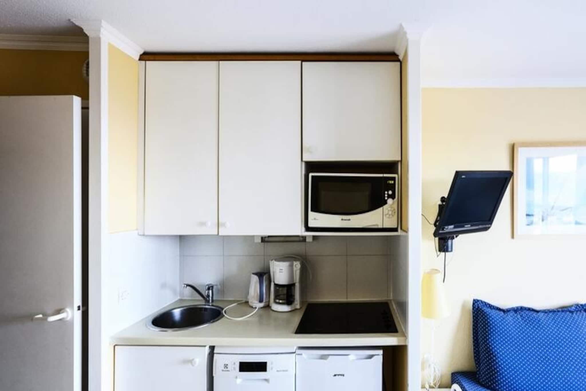 Dette charmerende feriehus tilbyder et komfortabelt og afslappende ophold med to hyggelige sovev?relser, det ene med dobbeltseng og det andet med to enkeltsenge. Ejendommen er k?ledyrsvenlig, hvilket giver g?sterne mulighed for at medbringe deres lodne ledsagere. Det er ideelt for familier eller sm? grupper og tilbyder v?sentlige faciliteter, herunder et tv, varme og en have med udend?rsm?bler. Hjemmet giver et fredeligt tilflugtssted i natursk?nne omgivelser, perfekt til en rolig ferie. Beliggende kun 200 meter fra stranden giver denne ejendom nem adgang til udend?rs aktiviteter og en betagende udsigt. Inden for en kort g?afstand kan g?sterne udforske lokale caf?er, markeder og den pulserende bymidte. Friluftsentusiaster vil nyde n?rliggende vandrestier og cykelruter, med GR 21 og Eurov?lo 4 begge t?t p?. Et n?rliggende ?komuseum og swimmingpool ligger kun 2 km v?k, og tilbyder yderligere fritidsmuligheder. Lejligheden er veludstyret med et fuldt funktionelt k?kken med k?leskab, ovn, mikroovn og opvaskemaskine. Badev?relset har badekar, og der er ogs? et vaskerum med vaskemaskine og t?rretumbler. En terrasse med grill og havem?bler er tilg?ngelig til udend?rs spisning og afslapning. For ekstra bekvemmelighed tilbyder ejendommen ogs? gratis parkering og en garage til cykler.