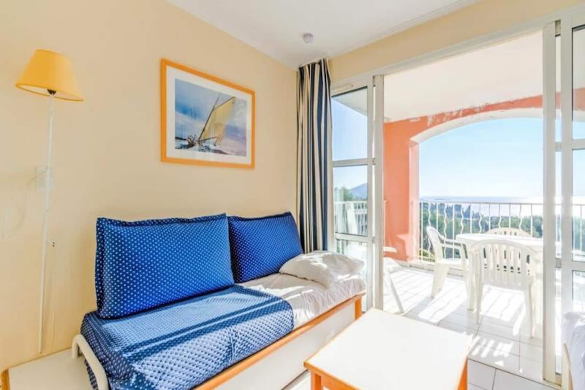 Denne dejlige ferielejlighed i studio-stil tilbyder et hyggeligt oase med havudsigt og moderne bekvemmeligheder. Den ?bne planl?sning omfatter to daybeds og en udtr?ksseng, hvilket g?r det perfekt til sm? familier eller grupper. Et separat kabineomr?de med k?jesenge giver ekstra soveplads. K?ledyr er velkomne mod et ekstra gebyr, og privat overd?kket parkering sikrer bekvemmelighed under hele dit ophold. V?sentlige tjenester s?som WiFi og ladestationer til elbiler er tilg?ngelige mod et till?gsgebyr. Beliggende kun 9 km fra Saint-Rapha?l, er lejligheden en del af en charmerende bolig, der ligner en malerisk sydlig landsby, komplet med gr?nne omr?der og sm? boliger. Inden for en kort g?afstand kan g?sterne udforske den pulserende Village Club Cap Esterel med butikker, restauranter og rekreative aktiviteter. Den smukke middelhavskyst og Agay-bugten er i n?rheden, og tilbyder uendelige muligheder for vandsport, vandreture i Esterel-massivet eller udforske natursk?nne landskaber. Indvendigt har lejligheden et fuldt udstyret k?kken med et spisebord til fire, hvilket sikrer komfortable m?ltider derhjemme. En overd?kket terrasse med havudsigt giver et perfekt afslapningssted. G?sterne kan nyde delt adgang til flere swimmingpools, en multisportsbane og minigolf p? stedet. Ejendommen er ideel for familier og par, der s?ger en fredelig, men aktiv ferie.
