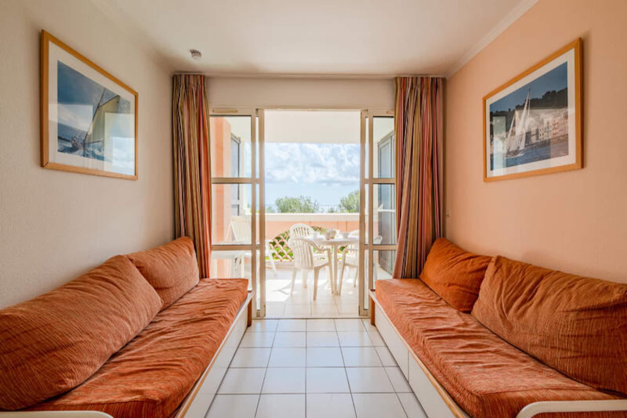 La Residencia Le Hameau de Cap Esterel - maeva Home le da la bienvenida a 9 km de Saint Raphael, con vistas al Mediterráneo y a la bahía de Agay. Esta residencia se encuentra dentro del club del pueblo de Cap Esterel, compuesto como un verdadero pueblo con su propio centro urbano, sus espacios verdes y sus pequeñas viviendas típicas del sur de Francia. Los apartamentos están distribuidos en pequeños edificios típicamente mediterráneos. Dentro del dominio encontrará un área acuática de 455 m2. con piscina infantil y más de 40 actividades a la carta en las inmediaciones. En el lugar, también podrá disfrutar de los servicios de un mini mercado y un snack bar en julio y agosto. También hay un restaurante disponible. Cerca encontrará tiendas, restaurantes y actividades en el Village Club Cap Esterel, accesible a pie, a 15 minutos. Los alojamientos de Maeva Home son alquileres totalmente equipados para personas ubicadas dentro de Pierre & Vacaciones. Se beneficiará de las ventajas de un Pierre & Vacaciones y servicios a la carta según sus deseos. Servicio de limpieza adicional. A realizar al final de la estancia, ya sea por parte del cliente o mediante el pago del servicio en el momento de la reserva, en el pre-check-in o en el momento de la llegada. Actividades de ocio en el sitio (cargo adicional): *Minigolf * Trenecito * Piscina exterior con piscina, dos piscinas de ocio para niños, tumbonas, zona de "playa privada" con coste adicional (piscina accesible según alojamiento) * Campo polideportivo Actividades cercanas (cargo adicional): *Actividades acuáticas y excursiones marítimas en Saint Raphaël. *Senderismo en el Macizo del Esterel *Barranquismo en las gargantas del Verdon *Balneoterapia cercana. *Deportes acuáticos cercanos *Tenis Importante: La piscina es accesible según el alojamiento. Fechas de apertura de la piscina: Piscina Grand Bleu (piscina climatizada): del 06/04/2024 al 03/11/2024 Piscina de olas (piscina no climatizada): del 20/04/2024 al 20/10/2024 Piscina Hameau (piscina no climatizada): del 06/04/2024 al 03/11/2024 Piscinas Hameau para adolescentes (piscina no climatizada): del 06/07/2024 al 01/09/2024 1 salón, 1 dormitorio, 1 rincón cocina, 1 baño y 1 aseo. Equipamiento del salón: 2 sofás cama, 1 de ellos con cama nido. Para la comida: una mesa con 4 sillas y 1 taburete. Instalaciones de la habitación: 1 dormitorio con 1 cama doble. Equipamiento de baños: 1 bañera y 1 aseo. Equipamiento de la cocina: Zona de cocina abierta al salón. Equipamiento de balcón: una mesa con 4 sillas. Superficie: 29 m² aproximadamente. Las ventajas de este alojamiento: apartamento en el 1er piso, vista al mar, balcón amueblado, plaza de aparcamiento reservada, caja fuerte, trastero, TV... Etiqueta maeva Home Confort: buena relación calidad-precio. Servicios correctos, alojamiento mantenido y equipado con las principales comodidades. Lo imprescindible para unas vacaciones al mejor precio. Acceso Wifi - Con suplemento - sujeto a disponibilidad. Se admiten mascotas - Además, consultar precios directamente con la residencia. Estación de carga para coches eléctricos - terminales eléctricos de 7 kW en el aparcamiento de Cap Esterel Village. Precios y pago directamente en las terminales. 0,30EURO por KWH - Cargo fijo de 1 € por recarga - Incremento + 2EURO/hora después de 2 horas de 8 a 20 horas. Ropa de cama - Con coste adicional - El contenido puede variar según la residencia: sábana bajera, sábana o funda nórdica y funda de almohada. Posibilidad de cambio diario de ropa de cama disponible con coste adicional, consultar precios en recepción. Toallas - Cargo extra. Posibilidad de cambio de ropa de diario disponible, consultar precios en recepción. Limpieza final de estancia - Servicio de limpieza obligatorio a pagar al realizar el check-in o a la llegada. Limpieza diaria - Disponible con coste adicional, consultar tarifas en recepción. Estacionamiento - De pago € Pago únicamente en las taquillas del parking. Piscina - Accesible según alojamiento. Euro Fechas apertura de piscinas: Piscina Grand Bleu (piscina climatizada): del 06/04/2024 al 03/11/2024 Piscina de olas (piscina no climatizada): del 20/04/2024 al 20/10/2024 Piscina Hameau (piscina no climatizada): del 06/04/2024 al 03/11/2024 Piscinas Hameau para adolescentes (piscina no climatizada): del 06/07/2024 al 01/09/2024 Tasa turística (cargo adicional) - El pago de la tasa turística se realiza a través de su espacio personal: https://mon-compte.maeva.com, el importe varía según la ubicación. Gratis para menores de 18 años. Televisión - Según alojamiento. Limpieza final de estancia - Servicio de limpieza obligatorio a pagar al realizar el check-in o a la llegada. Ropa de cama - Cargo adicional.