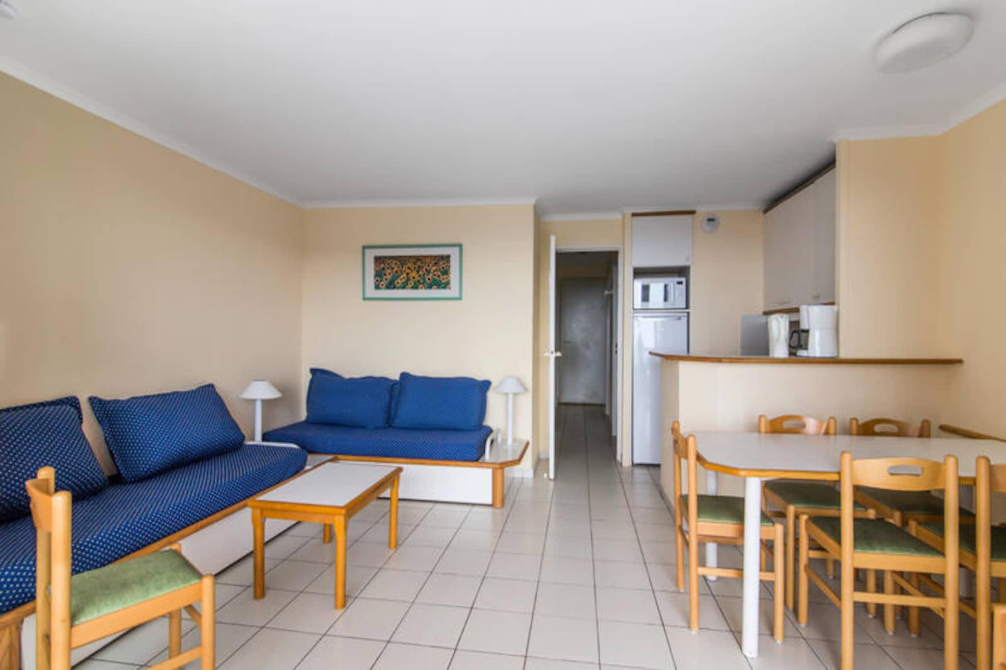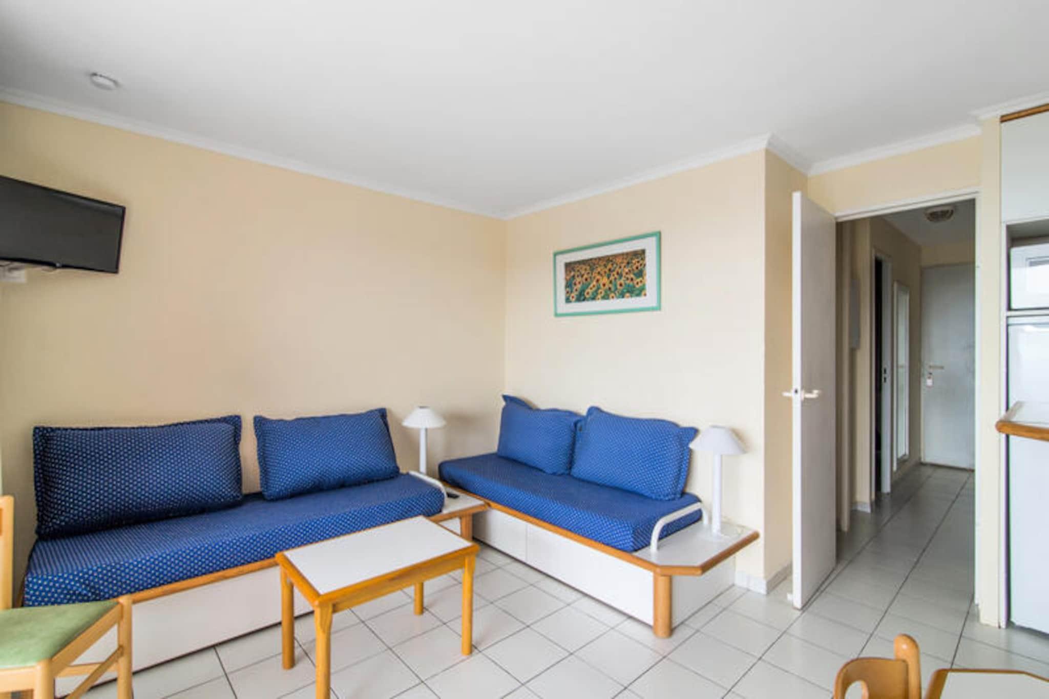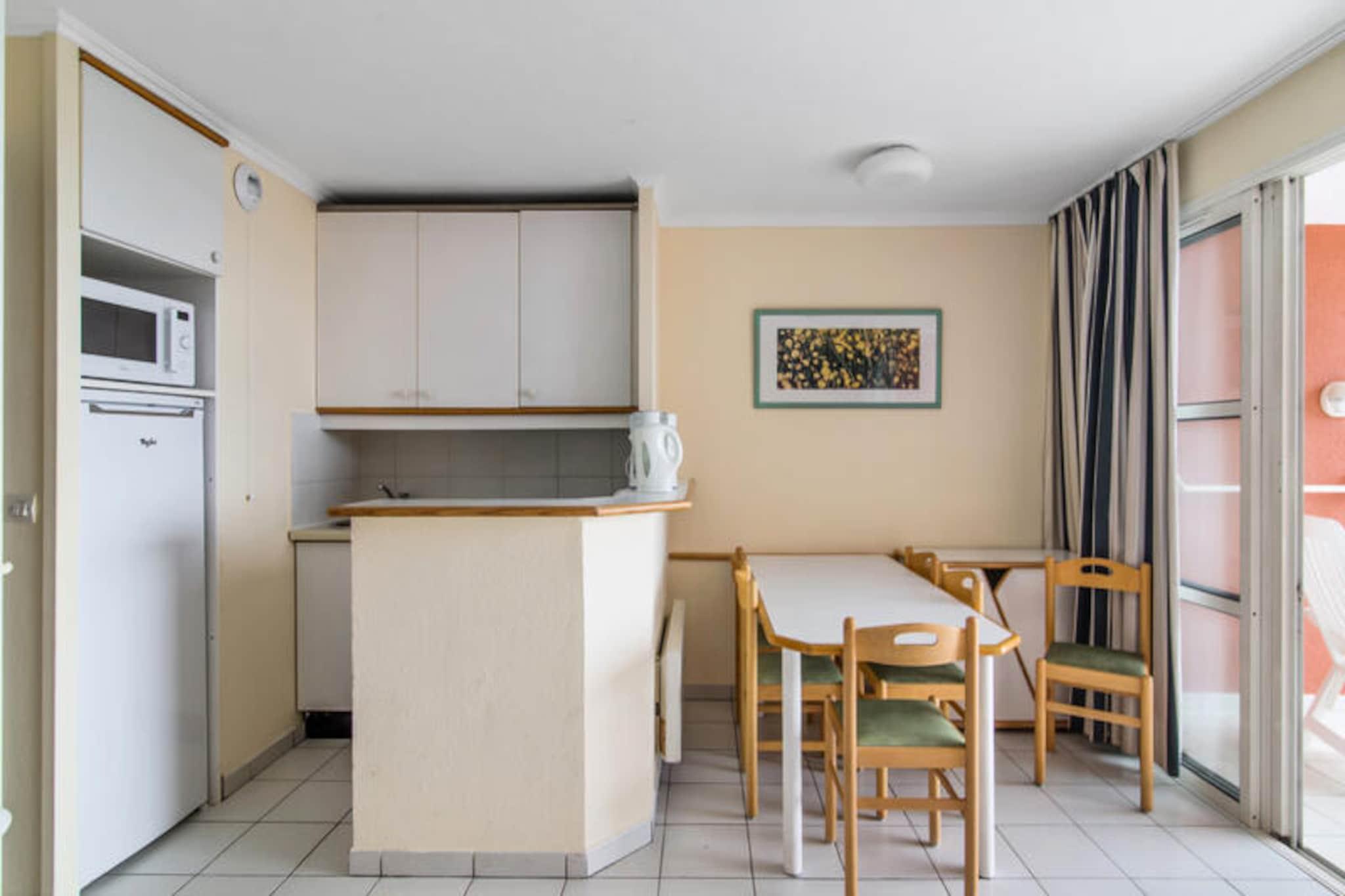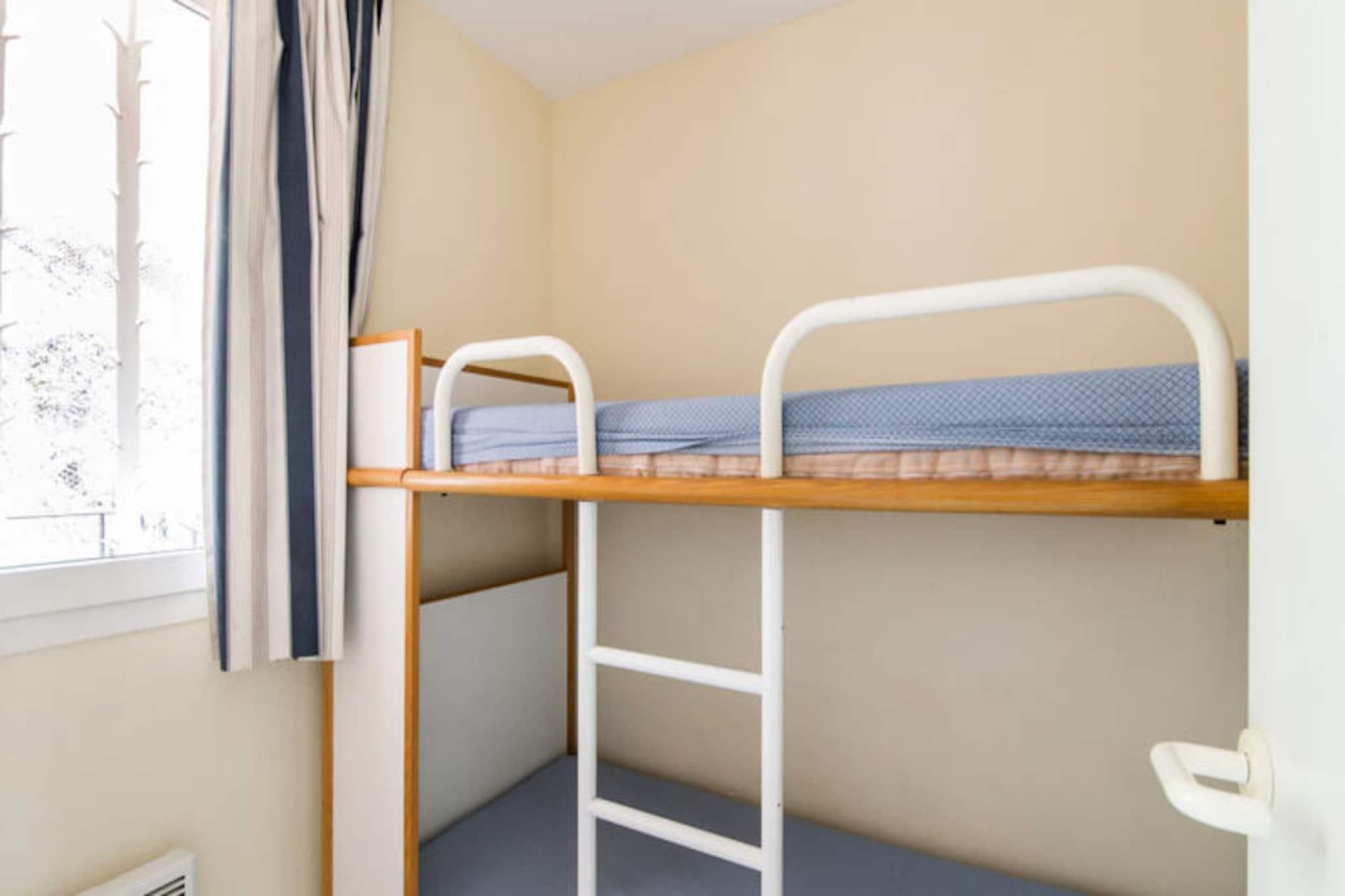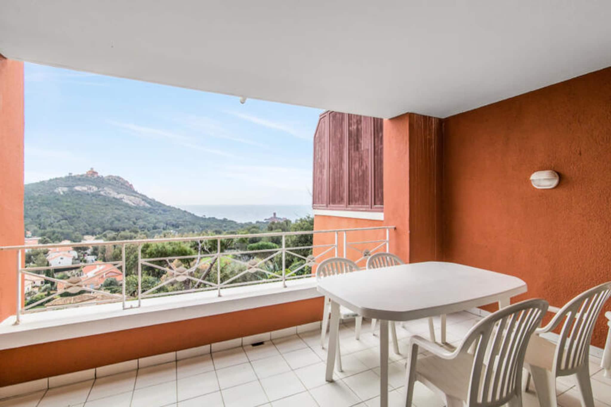 Denne velindrettede lejlighed tilbyder et behageligt ophold med en r?kke faciliteter. Det har en rummelig stue, et k?kkenomr?de og et sovev?relse med en dobbeltseng. Kahytsomr?det giver ekstra soveplads med to k?jesenge. Badev?relset har bruser og badekar, med separat toilet for bekvemmelighed. En m?bleret balkon tilbyder en smuk havudsigt, og reserveret parkering er til r?dighed for g?sterne. Ejendommen er k?ledyrsvenlig, s? du kan tage dine lodne ledsagere med. Lejligheden ligger 9 km fra Saint Raphael, t?t p? lokale attraktioner. Middelhavskysten og Agay Bay giver maleriske udsigter og muligheder for udend?rs aktiviteter. En 15-minutters g?tur bringer dig til Village Club Cap Esterel, hvor du finder butikker, restauranter og caf?er. For dem, der s?ger eventyr, omfatter n?rliggende aktiviteter vandsport, vandreture i Esterel-massivet og canyoning i Verdon-kl?fterne. Resortets beliggenhed tilbyder den perfekte blanding af afslapning og udforskning. Lejligheden er udstyret med alt det n?dvendige for et bekvemt ophold. K?kkenet er ?bent til stuen og indeholder alt det n?dvendige for at tilberede m?ltider. G?sterne vil ogs? have adgang til flere swimmingpools p? stedet sammen med en r?kke fritidsaktiviteter. Boligen omfatter et minimarked, en snackbar og en restaurant, der sikrer, at g?sterne har alt, hvad de har brug for under deres ophold. Ejendommen er velholdt og byder p? en afslappende atmosf?re i natursk?nne omgivelser.