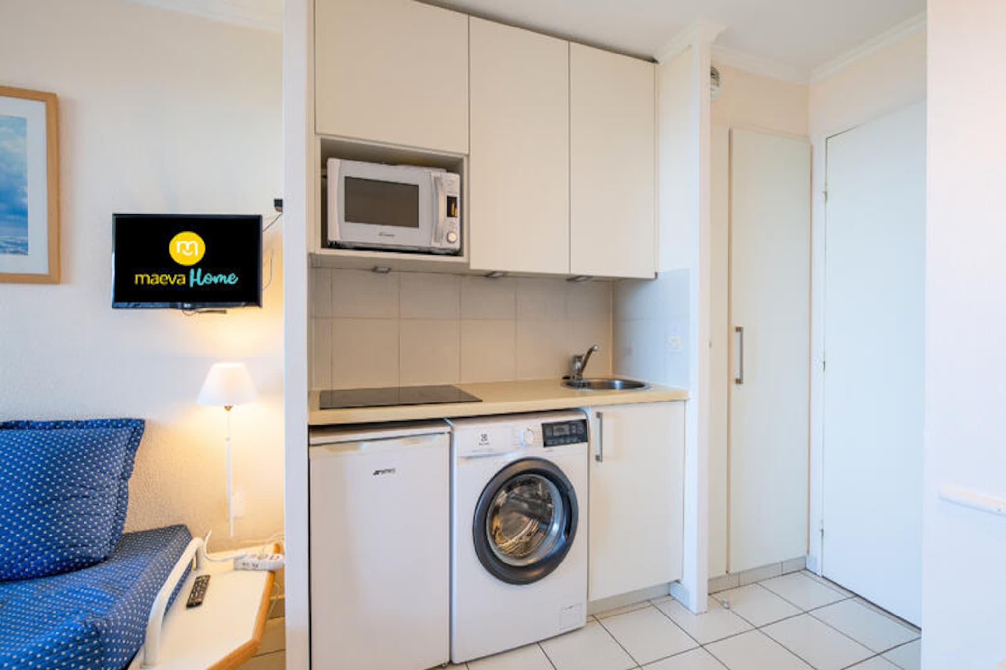 La Residencia Le Hameau de Cap Esterel - maeva Home le da la bienvenida a 9 km de Saint Raphael, con vistas al Mediterráneo y a la bahía de Agay. Esta residencia se encuentra dentro del club del pueblo de Cap Esterel, compuesto como un verdadero pueblo con su propio centro urbano, sus espacios verdes y sus pequeñas viviendas típicas del sur de Francia. Los apartamentos están distribuidos en pequeños edificios típicamente mediterráneos. Dentro del dominio encontrará un área acuática de 455 m2. con piscina infantil y más de 40 actividades a la carta en las inmediaciones. En el lugar, también podrá disfrutar de los servicios de un mini mercado y un snack bar en julio y agosto. También hay un restaurante disponible. Cerca encontrará tiendas, restaurantes y actividades en el Village Club Cap Esterel, accesible a pie, a 15 minutos. Los alojamientos de Maeva Home son alquileres totalmente equipados para personas ubicadas dentro de Pierre & Vacaciones. Se beneficiará de las ventajas de un Pierre & Vacaciones y servicios a la carta según sus deseos. Servicio de limpieza adicional. A realizar al final de la estancia, ya sea por parte del cliente o mediante el pago del servicio en el momento de la reserva, en el pre-check-in o en el momento de la llegada. Actividades de ocio en el sitio (cargo adicional): *Minigolf * Trenecito * Piscina exterior con piscina, dos piscinas de ocio para niños, tumbonas, zona de "playa privada" con coste adicional (piscina accesible según alojamiento) * Campo polideportivo Actividades cercanas (cargo adicional): *Actividades acuáticas y excursiones marítimas en Saint Raphaël. *Senderismo en el Macizo del Esterel *Barranquismo en las gargantas del Verdon *Balneoterapia cercana. *Deportes acuáticos cercanos *Tenis Importante: La piscina es accesible según el alojamiento. Fechas de apertura de la piscina: Piscina Grand Bleu (piscina climatizada): del 06/04/2024 al 03/11/2024 Piscina de olas (piscina no climatizada): del 20/04/2024 al 20/10/2024 Piscina Hameau (piscina no climatizada): del 06/04/2024 al 03/11/2024 Piscinas Hameau para adolescentes (piscina no climatizada): del 06/07/2024 al 01/09/2024 1 salón, 1 rincón cocina, 1 dormitorio, 1 baño, 1 aseo y plaza de aparcamiento cubierta. Equipamiento del salón: 2 sofás cama, 1 de ellos con 1 cama nido. Instalaciones de la habitación: 1 dormitorio con 1 cama doble. Equipamiento de baños: 1 bañera y 1 aseo. Equipamiento de la cocina: Zona de cocina abierta al salón. Equipamiento del balcón: una mesa con 4 sillas y 1 tumbona. Superficie: aproximadamente 29 m² Las ventajas de este alojamiento: vista al mar, balcón cubierto amueblado, espacio de almacenamiento, TV... Etiqueta maeva Home Confort: buena relación calidad-precio. Servicios correctos, alojamiento mantenido y equipado con las principales comodidades. Lo imprescindible para unas vacaciones al mejor precio. Acceso Wifi - Con suplemento - sujeto a disponibilidad. Se admiten mascotas - Además, consultar precios directamente con la residencia. Estación de carga para coches eléctricos - terminales eléctricos de 7 kW en el aparcamiento de Cap Esterel Village. Precios y pago directamente en las terminales. 0,30EURO por KWH - Cargo fijo de 1 € por recarga - Incremento + 2EURO/hora después de 2 horas de 8 a 20 horas. Ropa de cama - Con coste adicional - El contenido puede variar según la residencia: sábana bajera, sábana o funda nórdica y funda de almohada. Posibilidad de cambio diario de ropa de cama disponible con coste adicional, consultar precios en recepción. Toallas - Cargo extra. Posibilidad de cambio de ropa de diario disponible, consultar precios en recepción. Limpieza final de estancia - Servicio de limpieza obligatorio a pagar al realizar el check-in o a la llegada. Limpieza diaria - Disponible con coste adicional, consultar tarifas en recepción. Estacionamiento - De pago € Pago únicamente en las taquillas del parking. Piscina - Accesible según alojamiento. Euro Fechas apertura de piscinas: Piscina Grand Bleu (piscina climatizada): del 06/04/2024 al 03/11/2024 Piscina de olas (piscina no climatizada): del 20/04/2024 al 20/10/2024 Piscina Hameau (piscina no climatizada): del 06/04/2024 al 03/11/2024 Piscinas Hameau para adolescentes (piscina no climatizada): del 06/07/2024 al 01/09/2024 Tasa turística (cargo adicional) - El pago de la tasa turística se realiza a través de su espacio personal: https://mon-compte.maeva.com, el importe varía según la ubicación. Gratis para menores de 18 años. Televisión - Según alojamiento. Limpieza final de estancia - Servicio de limpieza obligatorio a pagar al realizar el check-in o a la llegada. Ropa de cama - Cargo adicional.
