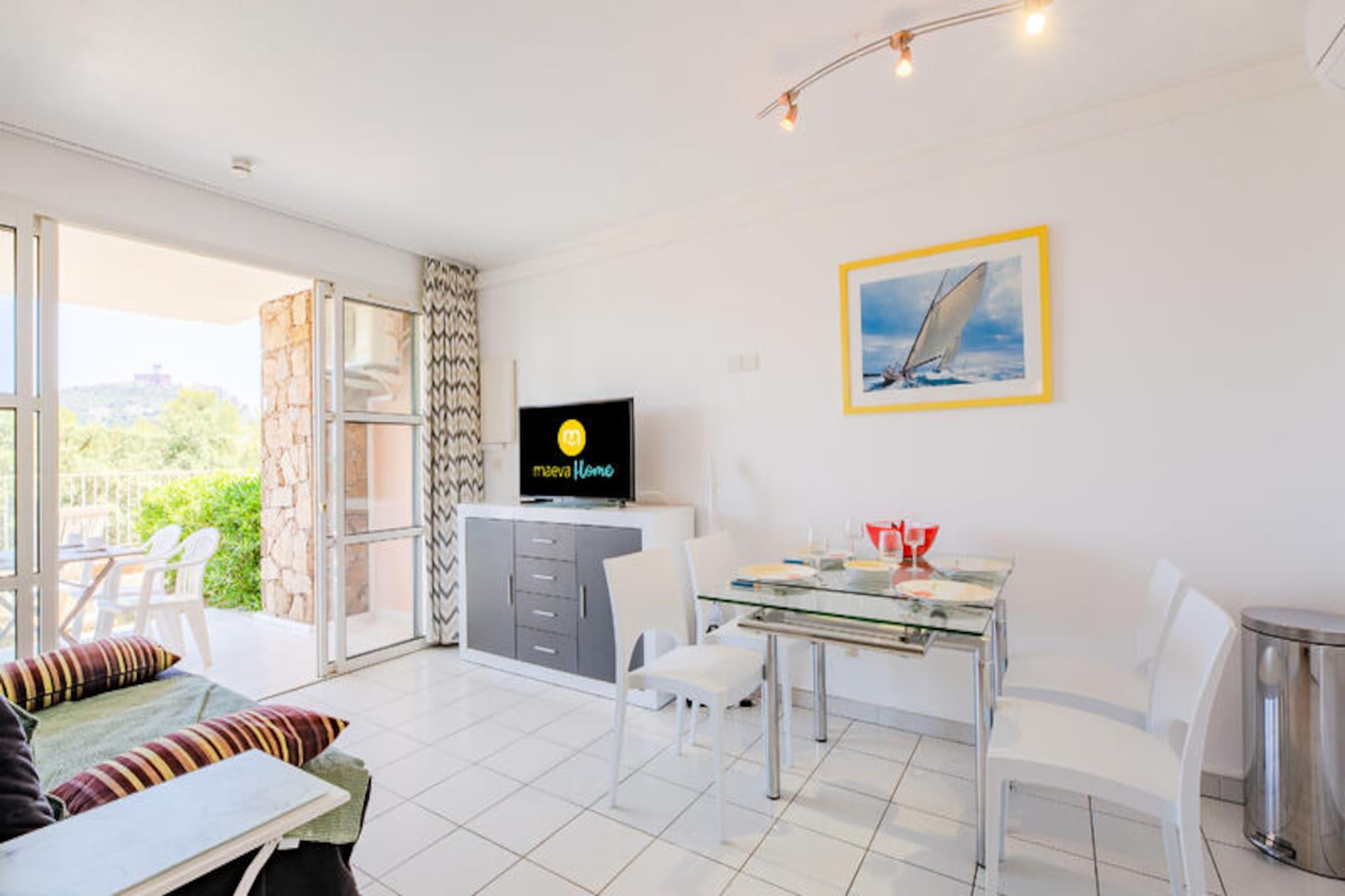 La Residencia Le Hameau de Cap Esterel - maeva Home le da la bienvenida a 9 km de Saint Raphael, con vistas al Mediterráneo y a la bahía de Agay. Esta residencia se encuentra dentro del club del pueblo de Cap Esterel, compuesto como un verdadero pueblo con su propio centro urbano, sus espacios verdes y sus pequeñas viviendas típicas del sur de Francia. Los apartamentos están distribuidos en pequeños edificios típicamente mediterráneos. Dentro del dominio encontrará un área acuática de 455 m2. con piscina infantil y más de 40 actividades a la carta en las inmediaciones. En el lugar, también podrá disfrutar de los servicios de un mini mercado y un snack bar en julio y agosto. También hay un restaurante disponible. Cerca encontrará tiendas, restaurantes y actividades en el Village Club Cap Esterel, accesible a pie, a 15 minutos. Los alojamientos de Maeva Home son alquileres totalmente equipados para personas ubicadas dentro de Pierre & Vacaciones. Se beneficiará de las ventajas de un Pierre & Vacaciones y servicios a la carta según sus deseos. Servicio de limpieza adicional. A realizar al final de la estancia, ya sea por parte del cliente o mediante el pago del servicio en el momento de la reserva, en el pre-check-in o en el momento de la llegada. Actividades de ocio en el sitio (cargo adicional): *Minigolf * Trenecito * Piscina exterior con piscina, dos piscinas de ocio para niños, tumbonas, zona de "playa privada" con coste adicional (piscina accesible según alojamiento) * Campo polideportivo Actividades cercanas (cargo adicional): *Actividades acuáticas y excursiones marítimas en Saint Raphaël. *Senderismo en el Macizo del Esterel *Barranquismo en las gargantas del Verdon *Balneoterapia cercana. *Deportes acuáticos cercanos *Tenis Importante: La piscina es accesible según el alojamiento. Fechas de apertura de la piscina: Piscina Grand Bleu (piscina climatizada): del 06/04/2024 al 03/11/2024 Piscina de olas (piscina no climatizada): del 20/04/2024 al 20/10/2024 Piscina Hameau (piscina no climatizada): del 06/04/2024 al 03/11/2024 Piscinas Hameau para adolescentes (piscina no climatizada): del 06/07/2024 al 01/09/2024 Su alquiler vacacional incluye: 1 sala de estar, 1 área de cabaña, 1 cocina, 1 dormitorio, 1 baño, 1 aseo separado, 1 balcón, 1 jardín y 1 estacionamiento cubierto. Las ventajas de su alquiler: Este apartamento con vistas al bosque le desorientará. Tiene balcón, 1 jardín y plaza de aparcamiento interior. Superficie: 26 m². Ubicación : Planta de alojamiento: Planta baja Distancia a pistas/mar: >500m Distancia comercial: <100 m Actividades a distancia: entre 100m y 500m Composición del salón: Sofá cama Salón: 1 Cama doble Salón: 1 Lado de la comida: Tipo de cocina: americana Mesa en la cocina: Sí Número de sillas en la cocina: 4 Composición de las habitaciones: Dormitorio 1: Cama doble: 1 Composición del baño: Número de baño: 1 Número de baños separados: 1 Baño principal: Tipo de baño: Ducha Una toma de corriente libre cerca del espejo: Sí Perchero(s) o secador de toallas sin calefacción: Sí Espacio(s) de almacenamiento (sin incluir el estante debajo del espejo y el tocador): Sí Secador de pelo eléctrico: Sí Exteriores: Terraza: Cubierta Vista de la terraza: Bosque Orientación terraza: Este Jardín: Sí Vista al jardín: Bosque Orientación del jardín: Este Aparcamiento dedicado al alojamiento: Sí Tipo de Estacionamiento: Cubierto Etiqueta Maeva Home Prestige: date un capricho. Elija apartamentos que hayan sido renovados recientemente y con buen gusto y que le ofrezcan una gama de servicios de calidad. Acceso Wifi - Con suplemento - sujeto a disponibilidad. Se admiten mascotas - Además, consultar precios directamente con la residencia. Estación de carga para coches eléctricos - terminales eléctricos de 7 kW en el aparcamiento de Cap Esterel Village. Precios y pago directamente en las terminales. 0,30EURO por KWH - Cargo fijo de 1 € por recarga - Incremento + 2EURO/hora después de 2 horas de 8 a 20 horas. Ropa de cama - Con coste adicional - El contenido puede variar según la residencia: sábana bajera, sábana o funda nórdica y funda de almohada. Posibilidad de cambio diario de ropa de cama disponible con coste adicional, consultar precios en recepción. Toallas - Cargo extra. Posibilidad de cambio de ropa de diario disponible, consultar precios en recepción. Limpieza final de estancia - Servicio de limpieza obligatorio a pagar al realizar el check-in o a la llegada. Limpieza diaria - Disponible con coste adicional, consultar tarifas en recepción. Estacionamiento - De pago € Pago únicamente en las taquillas del parking. Piscina - Accesible según alojamiento. Euro Fechas apertura de piscinas: Piscina Grand Bleu (piscina climatizada): del 06/04/2024 al 03/11/2024 Piscina de olas (piscina no climatizada): del 20/04/2024 al 20/10/2024 Piscina Hameau (piscina no climatizada): del 06/04/2024 al 03/11/2024 Piscinas Hameau para adolescentes (piscina no climatizada): del 06/07/2024 al 01/09/2024 Tasa turística (cargo adicional) - El pago de la tasa turística se realiza a través de su espacio personal: https://mon-compte.maeva.com, el importe varía según la ubicación. Gratis para menores de 18 años. Televisión - Según alojamiento. Depósito (en euros) - 500 Estacionamiento - Cubierto Ropa de cama - Cargo adicional. Limpieza de final de estancia - Cargo adicional. Servicio de limpieza obligatorio a pagar al momento del check-in o a la llegada.