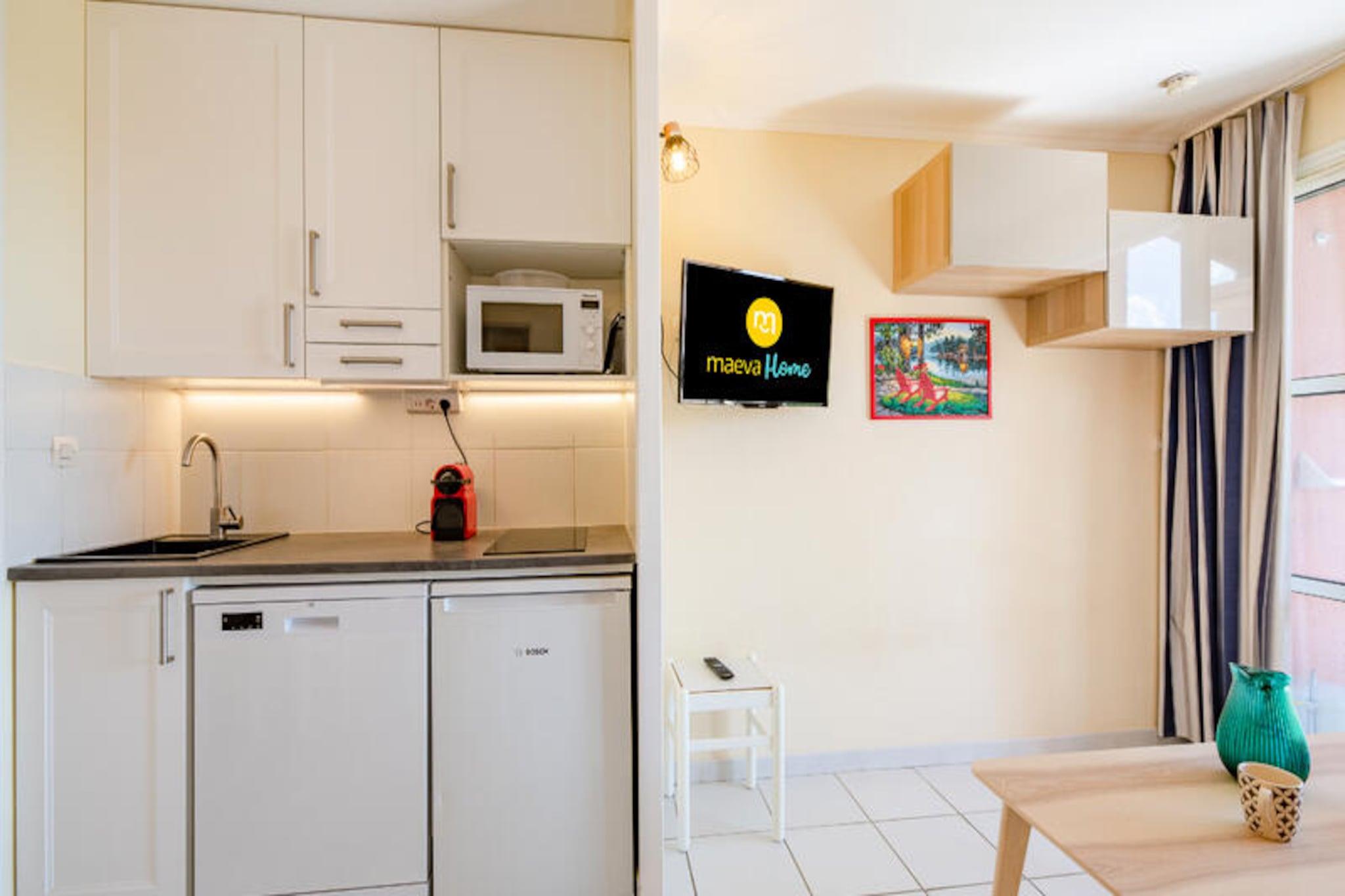 La Residencia Le Hameau de Cap Esterel - maeva Home le da la bienvenida a 9 km de Saint Raphael, con vistas al Mediterráneo y a la bahía de Agay. Esta residencia se encuentra dentro del club del pueblo de Cap Esterel, compuesto como un verdadero pueblo con su propio centro urbano, sus espacios verdes y sus pequeñas viviendas típicas del sur de Francia. Los apartamentos están distribuidos en pequeños edificios típicamente mediterráneos. Dentro del dominio encontrará un área acuática de 455 m2. con piscina infantil y más de 40 actividades a la carta en las inmediaciones. En el lugar, también podrá disfrutar de los servicios de un mini mercado y un snack bar en julio y agosto. También hay un restaurante disponible. Cerca encontrará tiendas, restaurantes y actividades en el Village Club Cap Esterel, accesible a pie, a 15 minutos. Los alojamientos de Maeva Home son alquileres totalmente equipados para personas ubicadas dentro de Pierre & Vacaciones. Se beneficiará de las ventajas de un Pierre & Vacaciones y servicios a la carta según sus deseos. Servicio de limpieza adicional. A realizar al final de la estancia, ya sea por parte del cliente o mediante el pago del servicio en el momento de la reserva, en el pre-check-in o en el momento de la llegada. Actividades de ocio en el sitio (cargo adicional): *Minigolf * Trenecito * Piscina exterior con piscina, dos piscinas de ocio para niños, tumbonas, zona de "playa privada" con coste adicional (piscina accesible según alojamiento) * Campo polideportivo Actividades cercanas (cargo adicional): *Actividades acuáticas y excursiones marítimas en Saint Raphaël. *Senderismo en el Macizo del Esterel *Barranquismo en las gargantas del Verdon *Balneoterapia cercana. *Deportes acuáticos cercanos *Tenis Importante: La piscina es accesible según el alojamiento. Fechas de apertura de la piscina: Piscina Grand Bleu (piscina climatizada): del 06/04/2024 al 03/11/2024 Piscina de olas (piscina no climatizada): del 20/04/2024 al 20/10/2024 Piscina Hameau (piscina no climatizada): del 06/04/2024 al 03/11/2024 Piscinas Hameau para adolescentes (piscina no climatizada): del 06/07/2024 al 01/09/2024 Su alquiler vacacional incluye: 1 sala de estar, 1 área de cabaña, 1 cocina, 1 baño, 1 aseo separado, 1 balcón y estacionamiento. Las ventajas de su alquiler: Estudio con balcón que ofrece una hermosa vista al mar, plaza de aparcamiento contigua al estudio incluida. Superficie: 26 m². Ubicación: Piso de alojamiento: 3er piso Distancia de las pistas al mar: >500m Distancia comercial: entre 100m y 500m Actividades a distancia: entre 100m y 500m Número de niveles de vivienda: Una sola planta Composición de la estancia: Sofá estándar: Sí Plazas para sentarse en el sofá: 4 Sofá convertible: Sí (cama doble 160x200) Número de camas en el sofá convertible: 2 Mesa de centro: Sí Lado de la comida: Tipo de cocina: americana Mesa en la cocina: Sí Número de sillas en la cocina: 4 Composición de la zona de la cabina: Literas en esquina de cabina: 1 (2 camas) Composición del baño: Estado del baño principal: Buen estado Tipo: cuarto de baño italiano Exteriores: Balcón: Sí Vista balcón: Mar Orientación del balcón: Este Aparcamiento dedicado al alojamiento: Sí Tipo de Estacionamiento: Cubierto Etiqueta maeva Home Selection: buena relación calidad-precio. Apartamentos mantenidos, al día y con equipamiento de calidad. Para unas vacaciones exitosas y confortables. Acceso Wifi - Con suplemento - sujeto a disponibilidad. Se admiten mascotas - Además, consultar precios directamente con la residencia. Estación de carga para coches eléctricos - terminales eléctricos de 7 kW en el aparcamiento de Cap Esterel Village. Precios y pago directamente en las terminales. 0,30EURO por KWH - Cargo fijo de 1 € por recarga - Incremento + 2EURO/hora después de 2 horas de 8 a 20 horas. Ropa de cama - Con coste adicional - El contenido puede variar según la residencia: sábana bajera, sábana o funda nórdica y funda de almohada. Posibilidad de cambio diario de ropa de cama disponible con coste adicional, consultar precios en recepción. Toallas - Cargo extra. Posibilidad de cambio de ropa de diario disponible, consultar precios en recepción. Limpieza final de estancia - Servicio de limpieza obligatorio a pagar al realizar el check-in o a la llegada. Limpieza diaria - Disponible con coste adicional, consultar tarifas en recepción. Estacionamiento - De pago € Pago únicamente en las taquillas del parking. Piscina - Accesible según alojamiento. Euro Fechas apertura de piscinas: Piscina Grand Bleu (piscina climatizada): del 06/04/2024 al 03/11/2024 Piscina de olas (piscina no climatizada): del 20/04/2024 al 20/10/2024 Piscina Hameau (piscina no climatizada): del 06/04/2024 al 03/11/2024 Piscinas Hameau para adolescentes (piscina no climatizada): del 06/07/2024 al 01/09/2024 Tasa turística (cargo adicional) - El pago de la tasa turística se realiza a través de su espacio personal: https://mon-compte.maeva.com, el importe varía según la ubicación. Gratis para menores de 18 años. Televisión - Según alojamiento. Depósito (en euros) - 400 Limpieza final de estancia - Servicio de limpieza obligatorio a pagar al realizar el check-in o a la llegada. Ropa de cama - Cargo adicional.