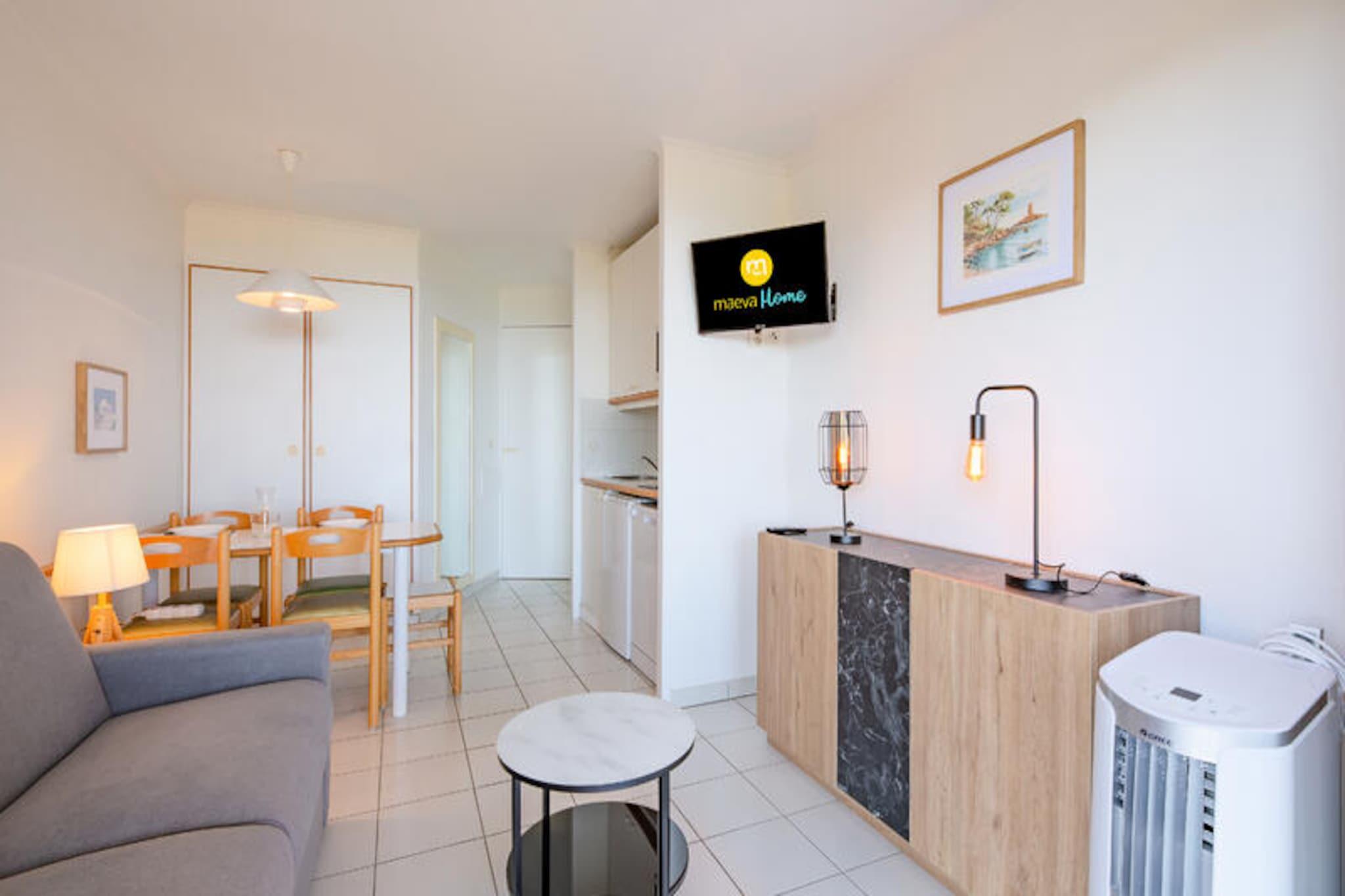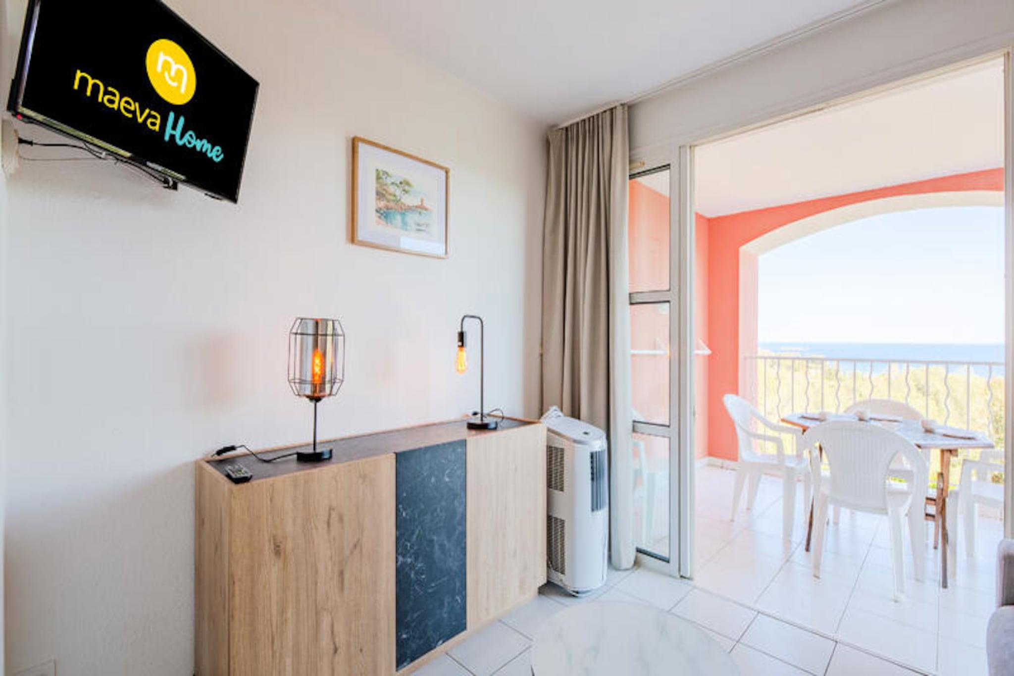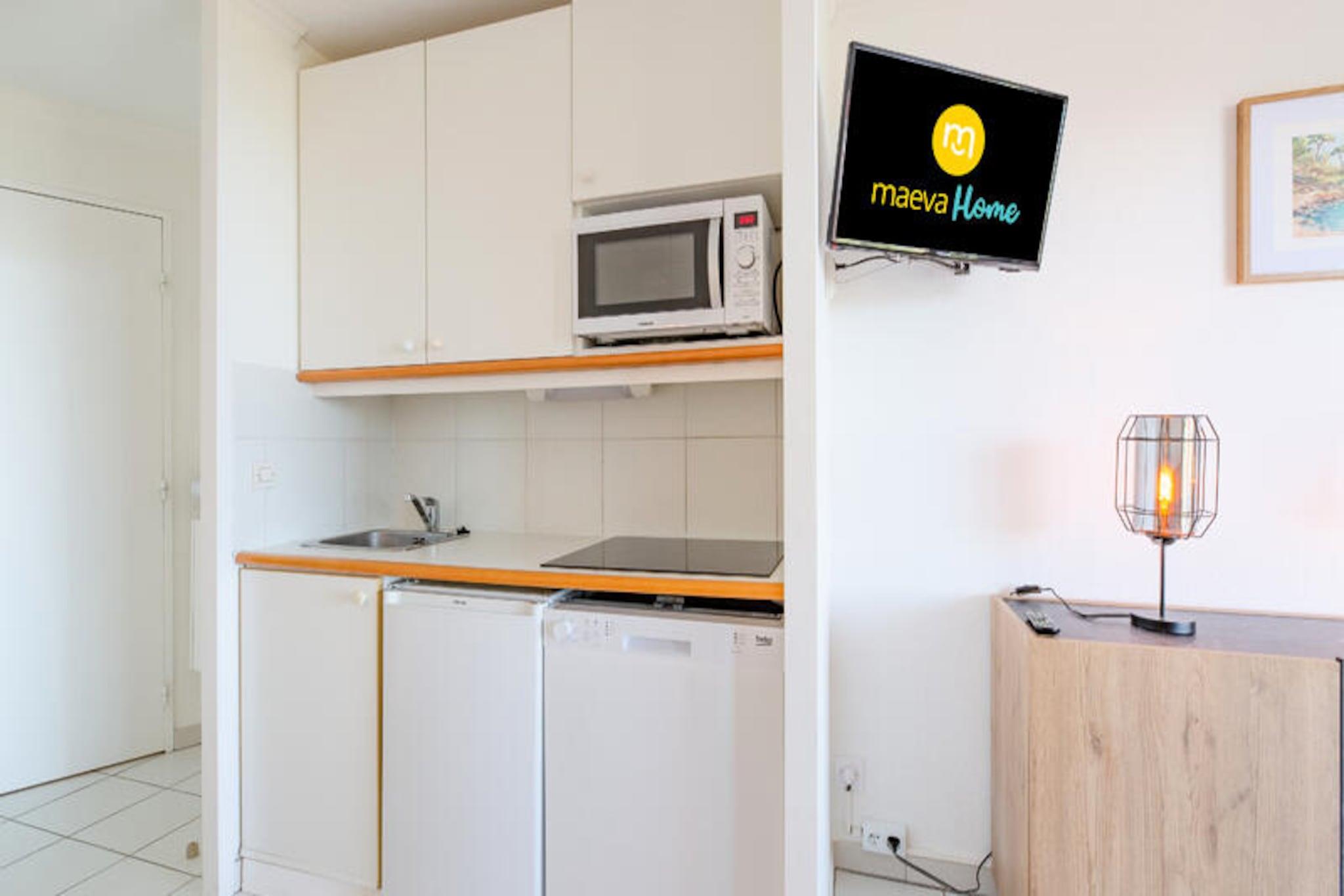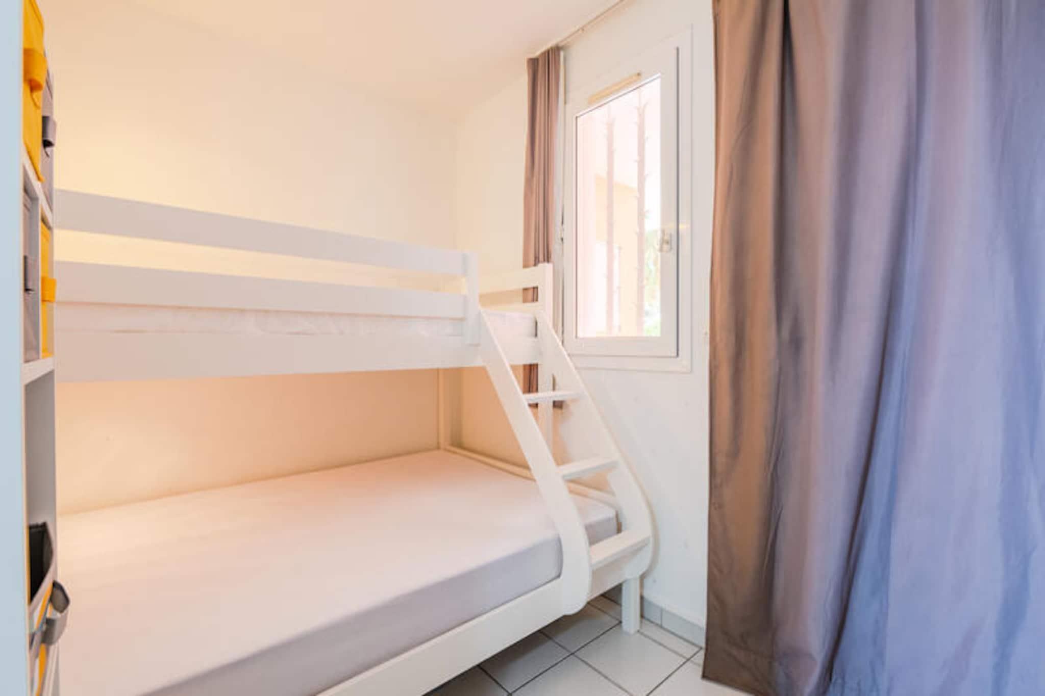 La Residencia Le Hameau de Cap Esterel - maeva Home le da la bienvenida a 9 km de Saint Raphael, con vistas al Mediterráneo y a la bahía de Agay. Esta residencia se encuentra dentro del club del pueblo de Cap Esterel, compuesto como un verdadero pueblo con su propio centro urbano, sus espacios verdes y sus pequeñas viviendas típicas del sur de Francia. Los apartamentos están distribuidos en pequeños edificios típicamente mediterráneos. Dentro del dominio encontrará un área acuática de 455 m2. con piscina infantil y más de 40 actividades a la carta en las inmediaciones. En el lugar, también podrá disfrutar de los servicios de un mini mercado y un snack bar en julio y agosto. También hay un restaurante disponible. Cerca encontrará tiendas, restaurantes y actividades en el Village Club Cap Esterel, accesible a pie, a 15 minutos. Los alojamientos de Maeva Home son alquileres totalmente equipados para personas ubicadas dentro de Pierre & Vacaciones. Se beneficiará de las ventajas de un Pierre & Vacaciones y servicios a la carta según sus deseos. Servicio de limpieza adicional. A realizar al final de la estancia, ya sea por parte del cliente o mediante el pago del servicio en el momento de la reserva, en el pre-check-in o en el momento de la llegada. Actividades de ocio en el sitio (cargo adicional): *Minigolf * Trenecito * Piscina exterior con piscina, dos piscinas de ocio para niños, tumbonas, zona de "playa privada" con coste adicional (piscina accesible según alojamiento) * Campo polideportivo Actividades cercanas (cargo adicional): *Actividades acuáticas y excursiones marítimas en Saint Raphaël. *Senderismo en el Macizo del Esterel *Barranquismo en las gargantas del Verdon *Balneoterapia cercana. *Deportes acuáticos cercanos *Tenis Importante: La piscina es accesible según el alojamiento. Fechas de apertura de la piscina: Piscina Grand Bleu (piscina climatizada): del 06/04/2024 al 03/11/2024 Piscina de olas (piscina no climatizada): del 20/04/2024 al 20/10/2024 Piscina Hameau (piscina no climatizada): del 06/04/2024 al 03/11/2024 Piscinas Hameau para adolescentes (piscina no climatizada): del 06/07/2024 al 01/09/2024 Su alquiler vacacional incluye: 1 salón, 1 cocina, 1 zona de cabañas, 1 baño, 1 aseo, 1 terraza y aparcamiento. Las ventajas de su alquiler: Estudio con bonita terraza con vistas al mar situado en una residencia con piscina de libre acceso. Superficie: 24 m². Ubicación: Planta de alojamiento: Planta baja Distancia de las pistas al mar: >500m Distancia comercial: <100m Actividades a distancia: entre 100m y 500m Composición de la estancia: Sofá convertible: Sí Número de camas en el sofá convertible: 2 Mesa de centro: Sí Lado de la comida: Tipo de cocina: americana Mesa en la cocina: Sí Número de sillas en la cocina: 4 Composición de la zona de la cabina: Literas en esquina de cabina: 2 Composición del baño: Estado del baño principal: Promedio Un inodoro privado dentro del alojamiento: Sí Exteriores: Terraza: Cubierta Terraza opuesta: Sí Vista terraza: Mar Orientación terraza: Este Aparcamiento dedicado al alojamiento: Sí Tipo de Estacionamiento: Cubierto Etiqueta de selección de hogar maeva: Apartamentos mantenidos, al día y con equipamiento de calidad. Para unas vacaciones exitosas y confortables. Acceso Wifi - Con suplemento - sujeto a disponibilidad. Se admiten mascotas - Además, consultar precios directamente con la residencia. Estación de carga para coches eléctricos - terminales eléctricos de 7 kW en el aparcamiento de Cap Esterel Village. Precios y pago directamente en las terminales. 0,30EURO por KWH - Cargo fijo de 1 € por recarga - Incremento + 2EURO/hora después de 2 horas de 8 a 20 horas. Ropa de cama - Con coste adicional - El contenido puede variar según la residencia: sábana bajera, sábana o funda nórdica y funda de almohada. Posibilidad de cambio diario de ropa de cama disponible con coste adicional, consultar precios en recepción. Toallas - Cargo extra. Posibilidad de cambio de ropa de diario disponible, consultar precios en recepción. Limpieza final de estancia - Servicio de limpieza obligatorio a pagar al realizar el check-in o a la llegada. Limpieza diaria - Disponible con coste adicional, consultar tarifas en recepción. Estacionamiento - De pago € Pago únicamente en las taquillas del parking. Piscina - Accesible según alojamiento. Euro Fechas apertura de piscinas: Piscina Grand Bleu (piscina climatizada): del 06/04/2024 al 03/11/2024 Piscina de olas (piscina no climatizada): del 20/04/2024 al 20/10/2024 Piscina Hameau (piscina no climatizada): del 06/04/2024 al 03/11/2024 Piscinas Hameau para adolescentes (piscina no climatizada): del 06/07/2024 al 01/09/2024 Tasa turística (cargo adicional) - El pago de la tasa turística se realiza a través de su espacio personal: https://mon-compte.maeva.com, el importe varía según la ubicación. Gratis para menores de 18 años. Televisión - Según alojamiento. Depósito (en euros) - 400 Limpieza final de estancia - Servicio de limpieza obligatorio a pagar al realizar el check-in o a la llegada. Ropa de cama - Cargo adicional.