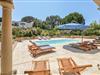 Denne imponerende, arkitekttegnede villa ligger på en stor grund i et boligkvarter, ikke langt fra golf- og tennisanlægget Valescure. I har en privat pool, solsenge, en vidunderlig terrasse af marmor og en whirlpool til 6 personer til rådighed. Villaens indre er præget af fin luksus og elegance. Gulvene er af sten, og den lyse stue med hvælvinger og stensøjler åbner til poolen. Alle soveværelser er velplejet og byder på tilstødende badeværelse, tv, omklædningsrum og elektriske skodder for vinduerne. Et soveværelse ligger i stueetagen, og fra de tre på øverste etage er der adgang til egen terrasse. Saint-Raphaël er en badeby med sandstrande og små, skjulte klippebugter. Tag med færgen over til Saint-Tropez for at nyde godt af den velrenommerede strand Pampelonne.