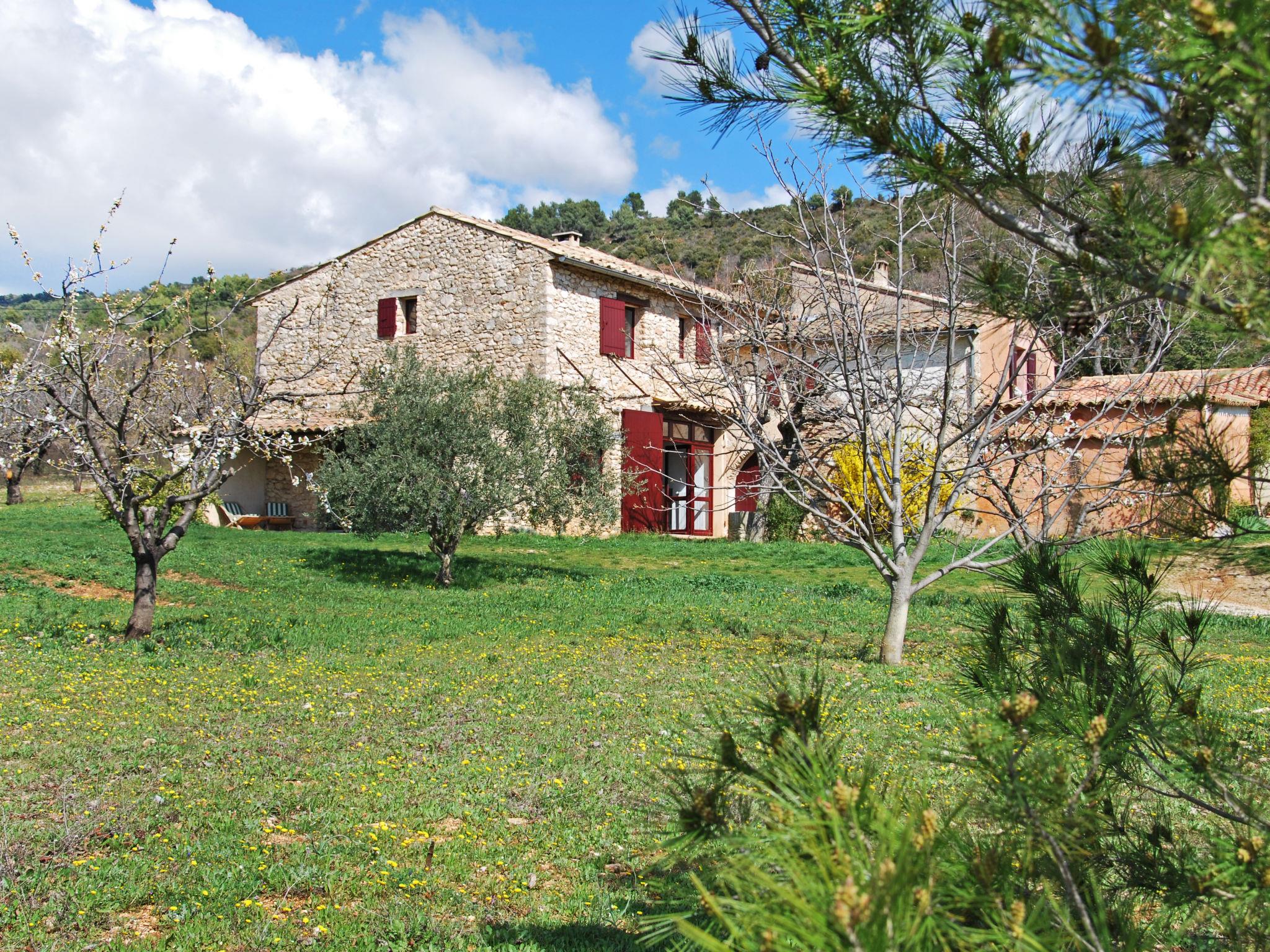 Divided into three adjoining houses (independent access) of which one is occupied by the owner. Mas "Les Geais", from the 17th century, renovated. In a secluded, quiet position. For shared use: property 1 ha with trees. Motor access (200 m via unmade road). Parking on the premises. Shop 3 km, restaurant 3 km, bus stop "Moulin à Huile" 3 km, outdoor swimming pool 3 km. Tennis 10 km. Hiking paths: Ayguier neuf 2 km, Travignon 5 km. Please note: car recommended. Additional accommodations can be booked. Property ref. FR8033.105 is situated on the same property. Lake,Apt 10 km. Please note: on the ground, 50 meters of rental, protected swimming pool reserved for owners.