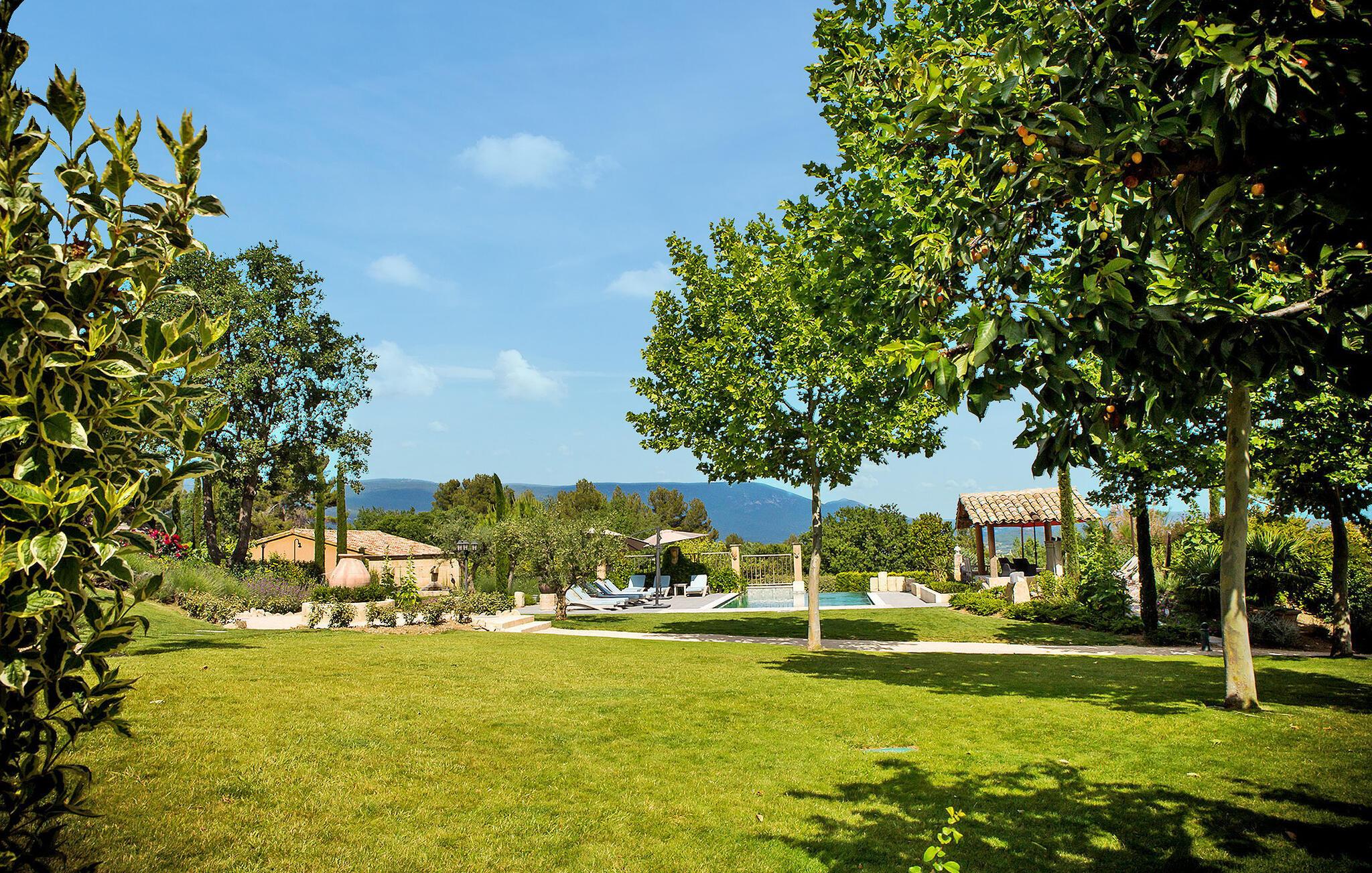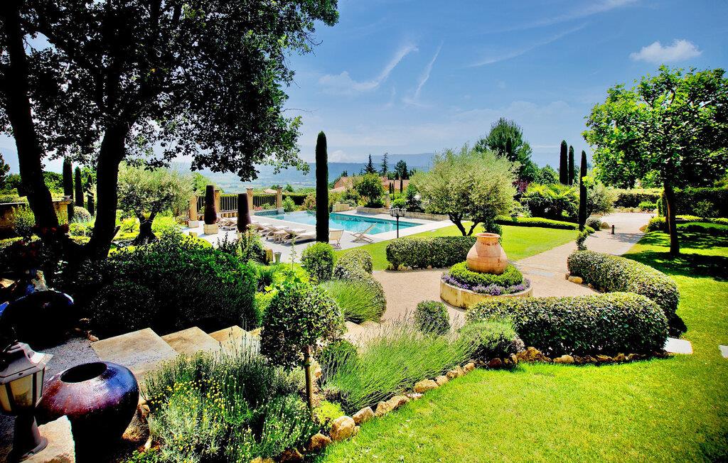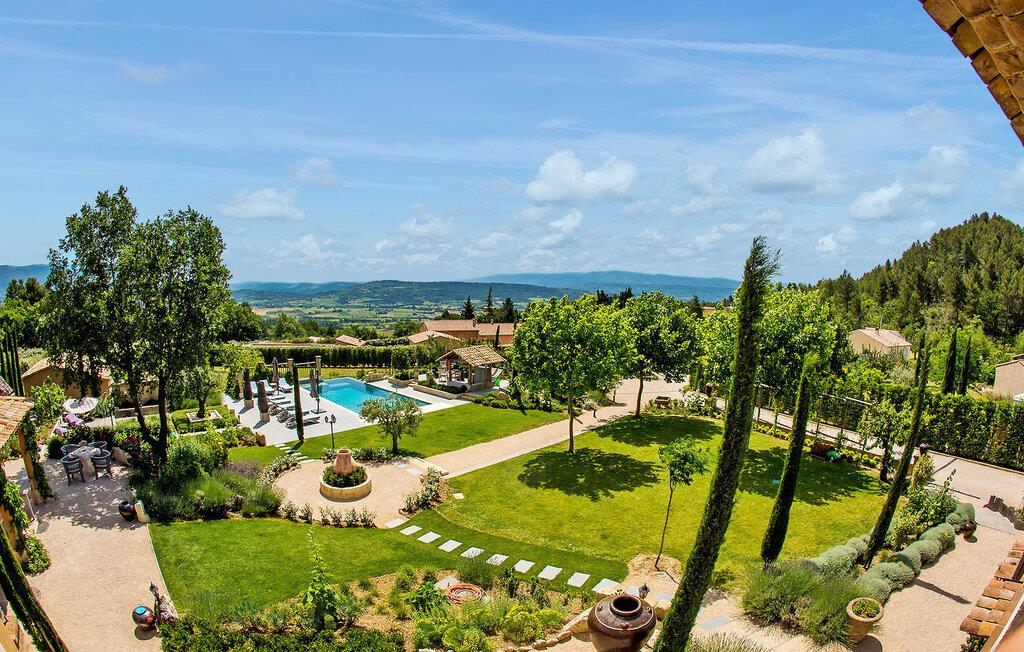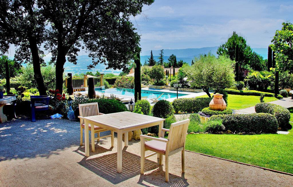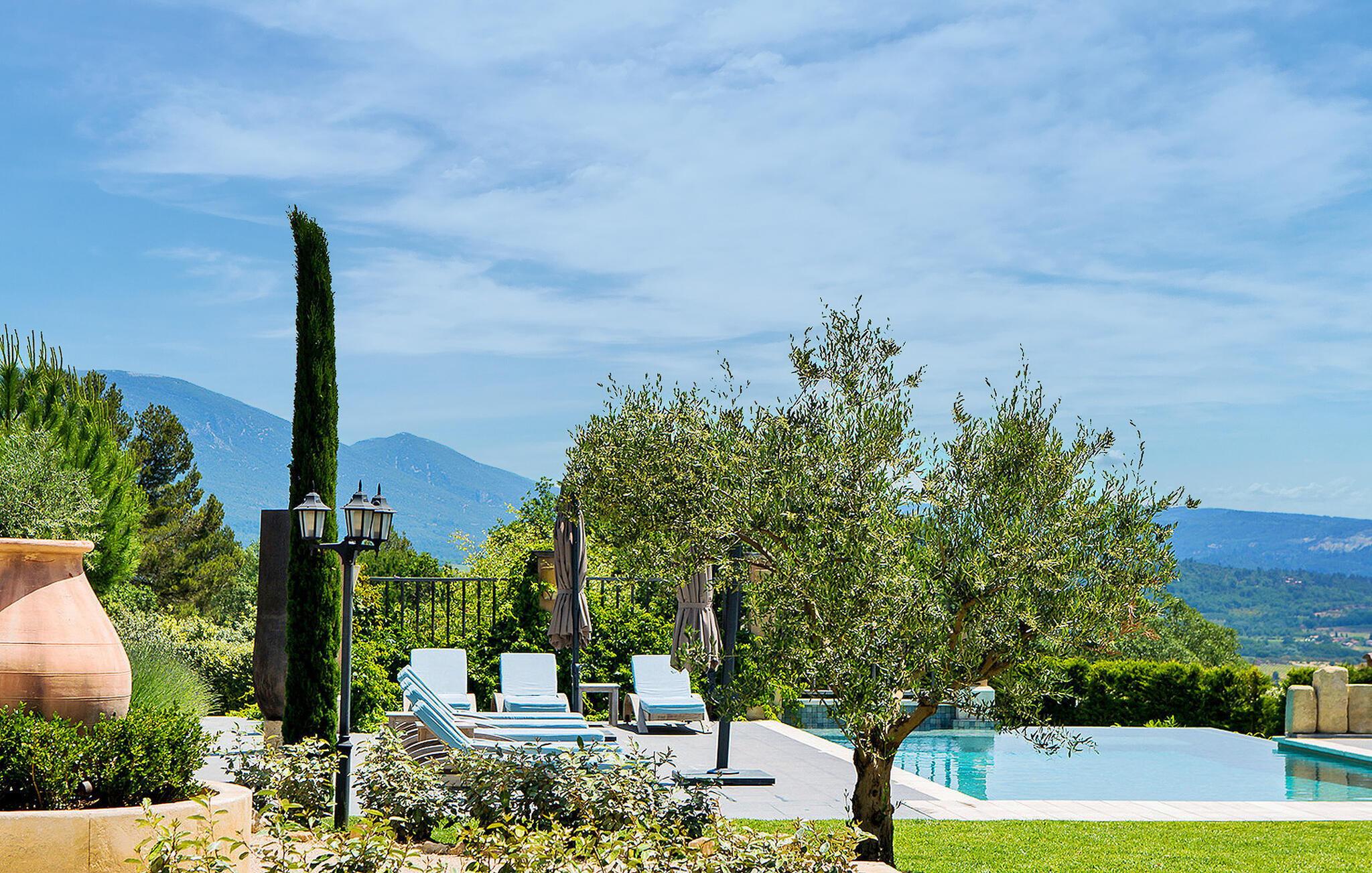 Beliggende på en bjergskråning, nær den historiske landsby Saint Saturnin les Apt, tilbyder denne fængslende ferievilla en uforglemmelig flugt. Villaen er udformet med kvalitet og giver en fantastisk udsigt over Luberon-bjergene. Denne imponerende ejendom er opdelt i to dele; hovedhuset og en separat fløj, som er hjemsted for to sydvendte soveværelser, med udsigt over haven, poolen og Luberon, hver med eget brusebad. Udenfor omgiver smukt velplejede og ekspansive haver med middelhavsflora en stor 12,5 x 5 m opvarmet pool (solenergi). En overdækket terrasse med havemøbler og grill, liggestole og en elektrisk port for sikker adgang til parkeringspladsen fuldender oplevelsen. Huset nyder godt af en rolig landlig beliggenhed, mens det kun er 2 km fra centrum af Saint Saturnin les Apt, en typisk Luberon-landsby beliggende blandt frugtplantager, olivenlunde og vinmarker. Landsbyen har mange historiske monumenter og bygninger at udforske. Blot et par minutter længere i bil kan du opdage de smukkeste steder i Luberon og det omkringliggende område, såsom Colorado de Rustrel, Gordes, Roussillon, Oppède, Ménerbes, Lacoste, Saignon, Sault og dens lavendelmarker, eller vandre rundt i Provence farverige markeder. Fordyb dig i denne ferievilla, hvor hver detalje afspejler essensen af et perfekt tilflugtssted midt i Luberons skønhed.