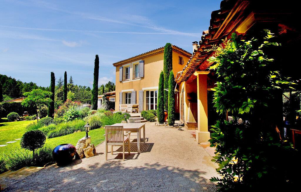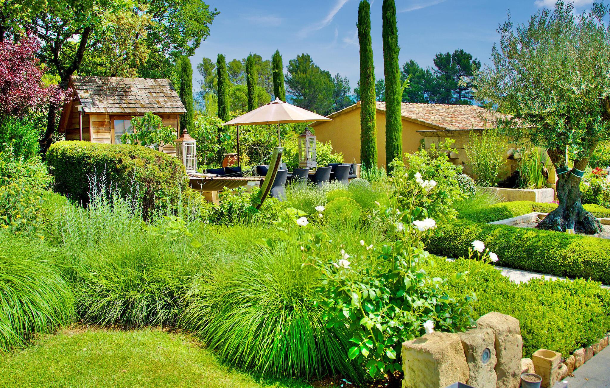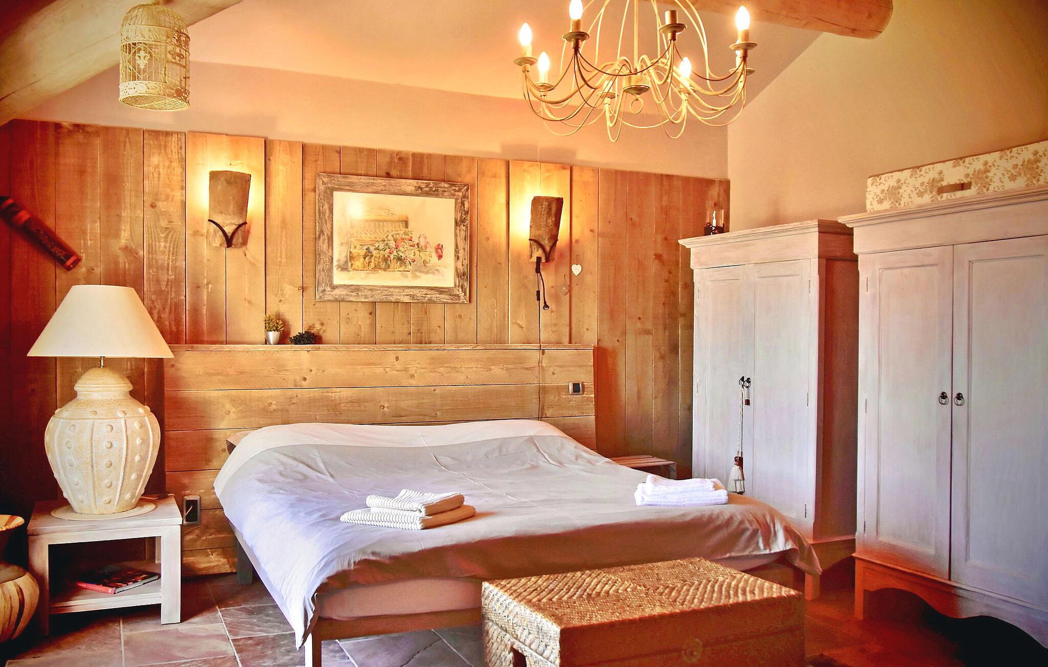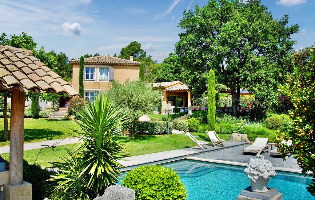Beliggende på en bjergskråning, nær den historiske landsby Saint Saturnin les Apt, tilbyder denne fængslende ferievilla en uforglemmelig flugt. Villaen er udformet med kvalitet og giver en fantastisk udsigt over Luberon-bjergene. Denne imponerende ejendom er opdelt i to dele; hovedhuset og en separat fløj, som er hjemsted for to sydvendte soveværelser, med udsigt over haven, poolen og Luberon, hver med eget brusebad. Udenfor omgiver smukt velplejede og ekspansive haver med middelhavsflora en stor 12,5 x 5 m opvarmet pool (solenergi). En overdækket terrasse med havemøbler og grill, liggestole og en elektrisk port for sikker adgang til parkeringspladsen fuldender oplevelsen. Huset nyder godt af en rolig landlig beliggenhed, mens det kun er 2 km fra centrum af Saint Saturnin les Apt, en typisk Luberon-landsby beliggende blandt frugtplantager, olivenlunde og vinmarker. Landsbyen har mange historiske monumenter og bygninger at udforske. Blot et par minutter længere i bil kan du opdage de smukkeste steder i Luberon og det omkringliggende område, såsom Colorado de Rustrel, Gordes, Roussillon, Oppède, Ménerbes, Lacoste, Saignon, Sault og dens lavendelmarker, eller vandre rundt i Provence farverige markeder. Fordyb dig i denne ferievilla, hvor hver detalje afspejler essensen af et perfekt tilflugtssted midt i Luberons skønhed.