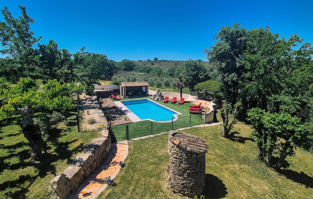 Det velholdte og rummelige udendørsområde byder på smuk udsigt over landskabet mellem Provence og Cevennerne. Glæd jer til timevis af solbadning i det børnesikre indhegnede poolområde, spil boule eller bordtennis. Nyd romantiske solnedgange på tagterrassen og tag plads under den hyggelige terrasse til en stemningsfuld grillaften.