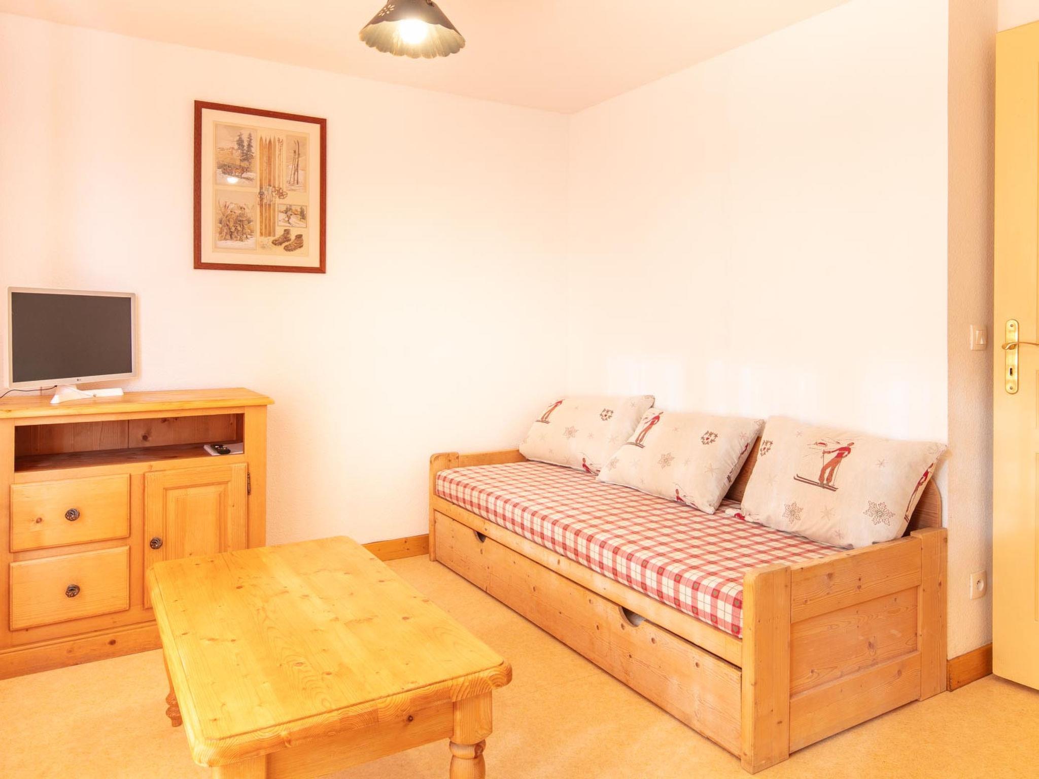 "Les Bouquetins", 2-room apartment 44 m2 on 2nd floor. Object suitable for 6 adults. 1 room with 1 double bed and TV. Living room with 2 beds, 1 sofabed and 1 pull-out bed. Kitchen (4 hot plates, oven, dishwasher, freezer, electric coffee machine). Bath/WC, shower/WC. Balcony. View of the mountains. Please note: non-smokers only. Smoke alarm. Offer by a commercial proprietor according to Art. 155, IV, CGI