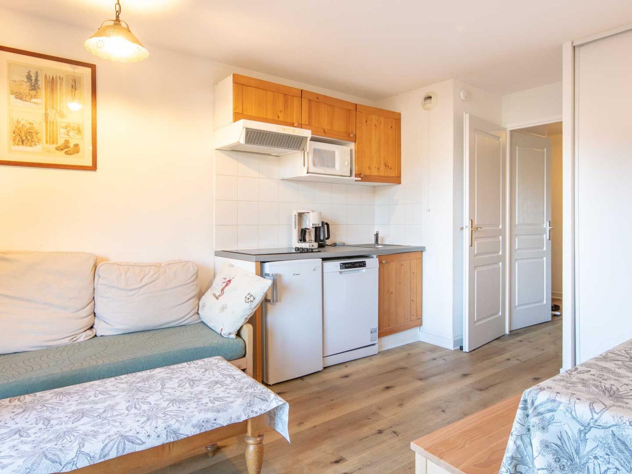 "Les Tetras", 3-room apartment 40 m2 on 1st floor. Object suitable for 8 adults. 1 room with 1 double sofabed and TV. 1 room with 2 x 2 bunk beds. Living room with 1 sofabed and 1 pull-out bed. Kitchen (4 hot plates, dishwasher, toaster, kettle, microwave, freezer, electric coffee machine). Shower/WC. Balcony. View of the mountains. Parking (1 car) at the house. Please note: non-smokers only. Smoke alarm. Offer by a commercial proprietor according to Art. 155, IV, CGI