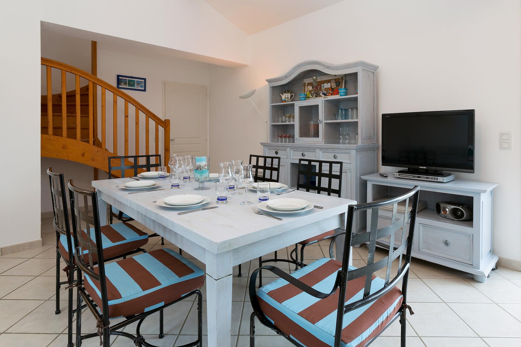Roligt Villa Retreat med Privat Pool Omgivet af frodige skove og badet i kystsollys er denne charmerende villa den perfekte tilflugtssted for både familier, venner og lodne ledsagere. Med fire hyggelige soveværelser, et fuldt udstyret åbent køkken, to badeværelser og en rummelig stue/spisestue, der åbner til en solbeskinnet terrasse, blander dette hjem komfort med stil. Den private, opvarmelige pool (8x4m) inviterer dig til at slappe af i din egen afsondrede haveoase - komplet med grill, havemøbler og masser af plads til, at din hund kan færdes sikkert i den indhegnede gård. Udforsk kystvidundere med din hvalp Beliggende kun 3,5 km fra hjertet af St. Jean-de-Monts og dets gyldne strande, er du få minutter fra en af Vendées mest elskede kystdestinationer. Gå en tur langs den livlige promenade, hop på en båd til Ile d'Yeu, eller besøg strandengene og fyrreskovene på cykel eller til fods - mange stier er kæledyrsvenlige! Din hund vil elske at snuse gennem de skyggefulde skove og dyppe poterne i bølgerne ved hundevenlige strande i nærheden. Efter en dag ude kan du trække dig tilbage til stilheden i din private have eller nyde et måltid i solnedgangen udendørs. Spis, oplev, nyd Fra friske fiske- og skaldyrsbistroer langs kysten til boulangerier og caféer i landsbyen byder St. Jean-de-Monts på en fest for enhver smag. Lokale favoritter som Le Bouche à Oreille byder kæledyr velkommen på deres terrasse. Gå ikke glip af det ugentlige marked for lokale produkter og specialiteter, perfekt til et gør-det-selv-måltid tilbage i villaen.