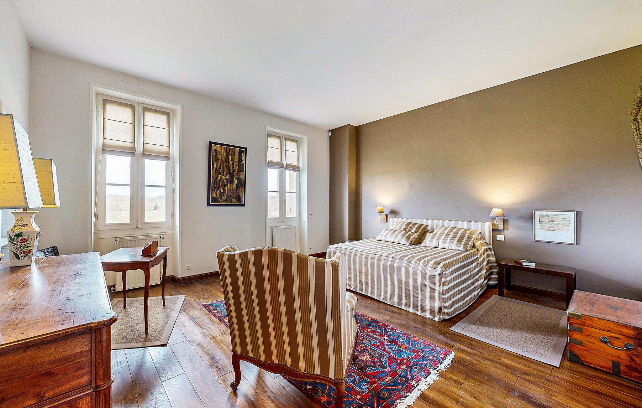 Huset er yderst rummeligt og har en fantastisk beliggenhed til mange spændende udflugter i området. Indvendigt fremtræder huset rustikt og charmerende med livlige farver og et nærmest herskabeligt strejf, der vidner om husets lange historie. Kræs om livretterne i det gode køkken og dæk op til hele flokken ved det lange spisebord, inden I runder aftenen af i stuen ved pejsen med brætspil og et godt glas vin.
