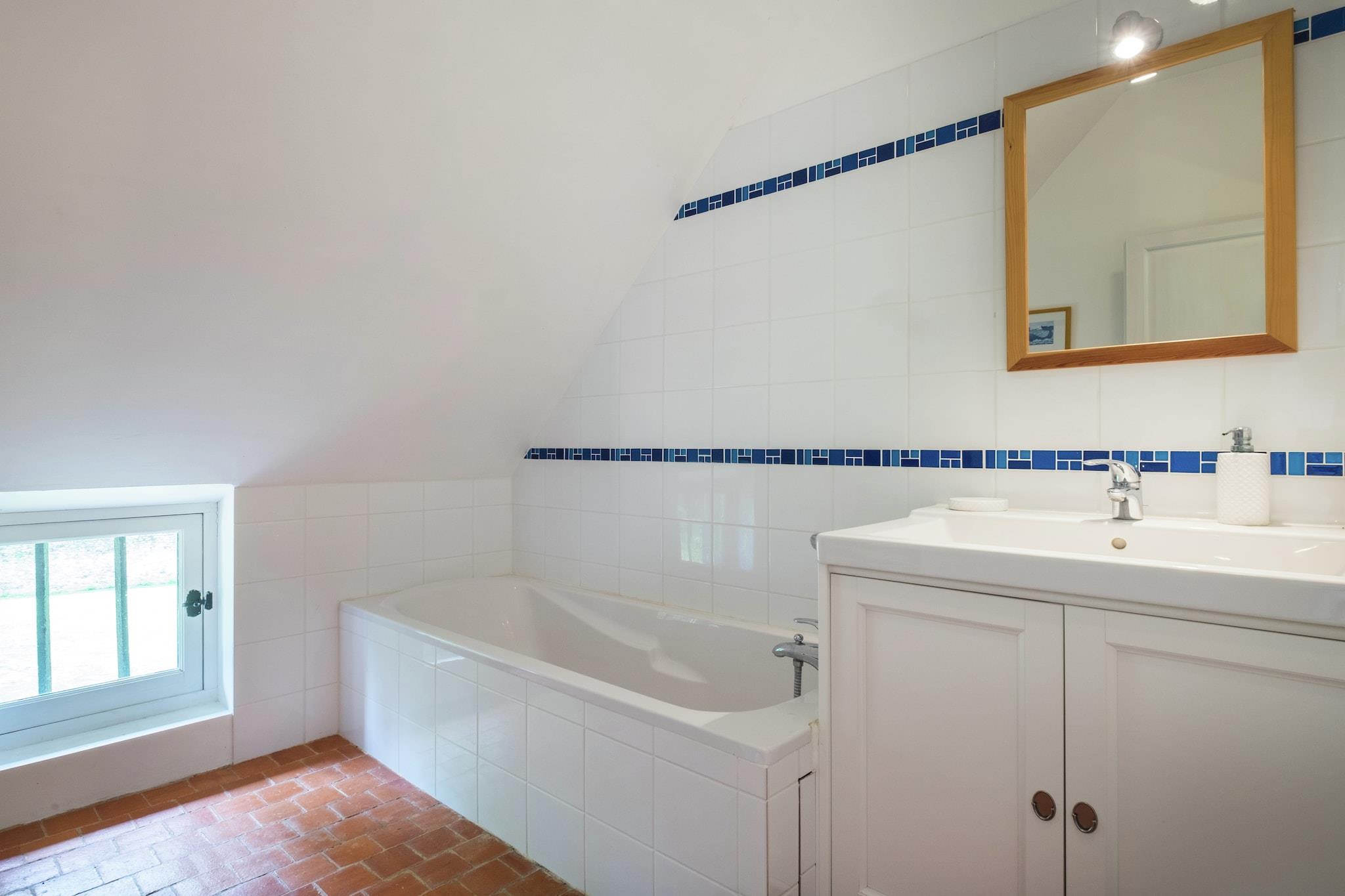En fuldt restaureret Bindingsværkshus med al charmen fra i går og de faciliteter i dag. En ideel kombination for et behageligt og komfortabelt ophold! Begge etager har gulvvarme og alle værelser har et moderne badeværelse. Den rummelige stue og køkken giver rigelig plads til fællesspisning. Hvis vejret er godt kan du benytte de store karnapper eller sidde udenfor på terrassen.Den store private have, med udsigt over slottet og dets grund, er et ideelt sted at nyde total ro. Hvis du har lyst til noget andet, og at være i stand til at nyde en afslappende miljø, kan du gå til naturparken (30min.). Labas, kan du gå og cykle. Oplev de Saosnois bakker og marker omkring Sées og Alençon. Området omfatter også imponerende skove: Écouves, Andaines, Perseigne, Sillé og Alpes Mancelles. Slottet er besat af ejeren af huset. Besøg muligt efter aftale På grund af vejarbejde kan køretøjer muligvis ikke nærme sig inden for 300 meter fra sommerhuset i løbet af januar og februar 2022.