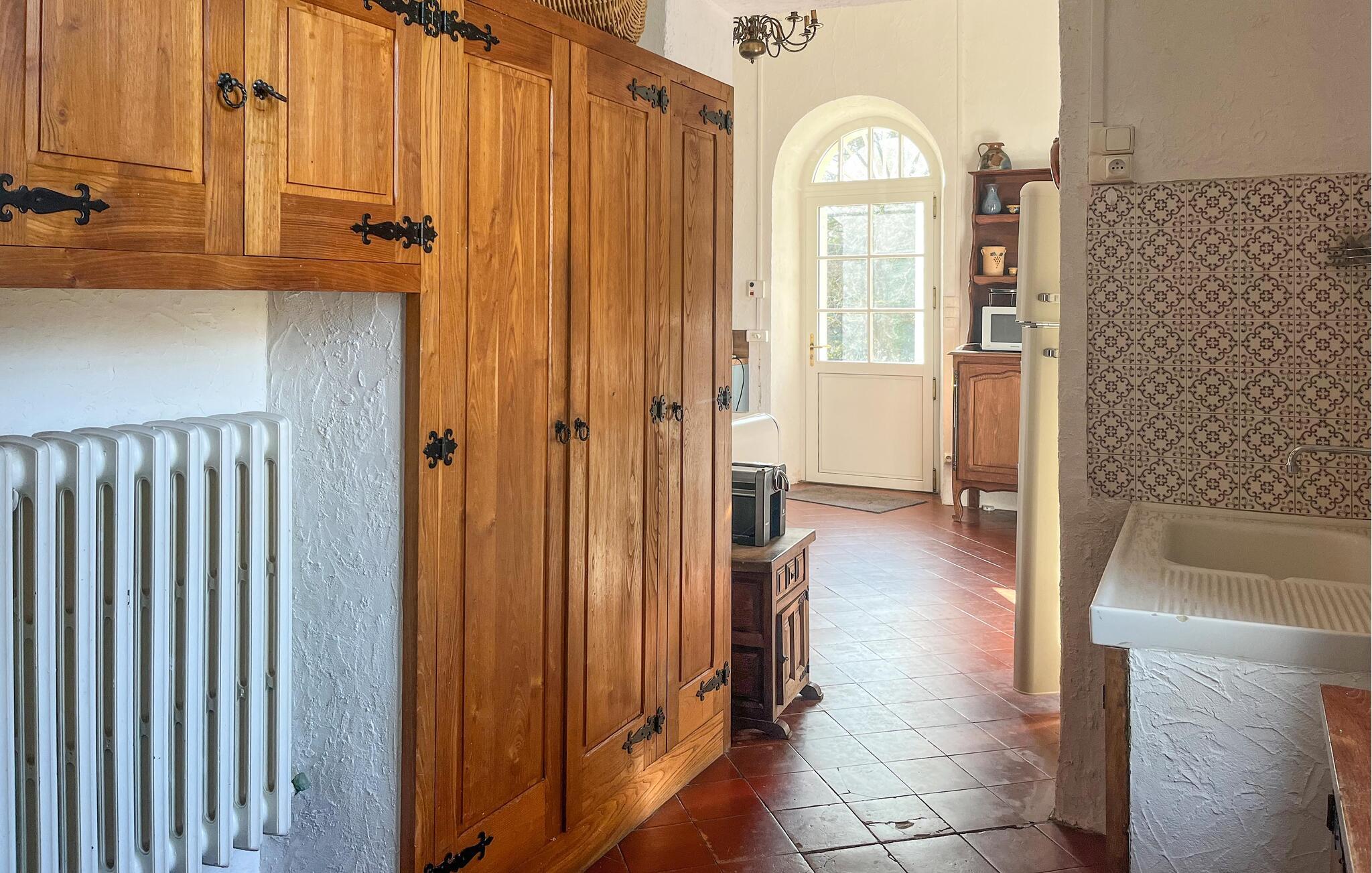 Tilbring afslappende timer i den rummelige oase med moderne indendørs/udendørs pool eller på den klassiske boulebane i skyggen af århundrede gamle træer. Et sted for ro og elegance, ideelt til en pause fra hverdagen. Spadser gennem parkens fredelige rekreative områder, og samles om aftenen i den rummelige orangeri. Oplev en fredelig bambusskov, og opdag bag murene ejendommen, som skråner blidt ned mod floden Cèze. Floden tilbyder muligheder for svømning og afslapning ved en privat strand.