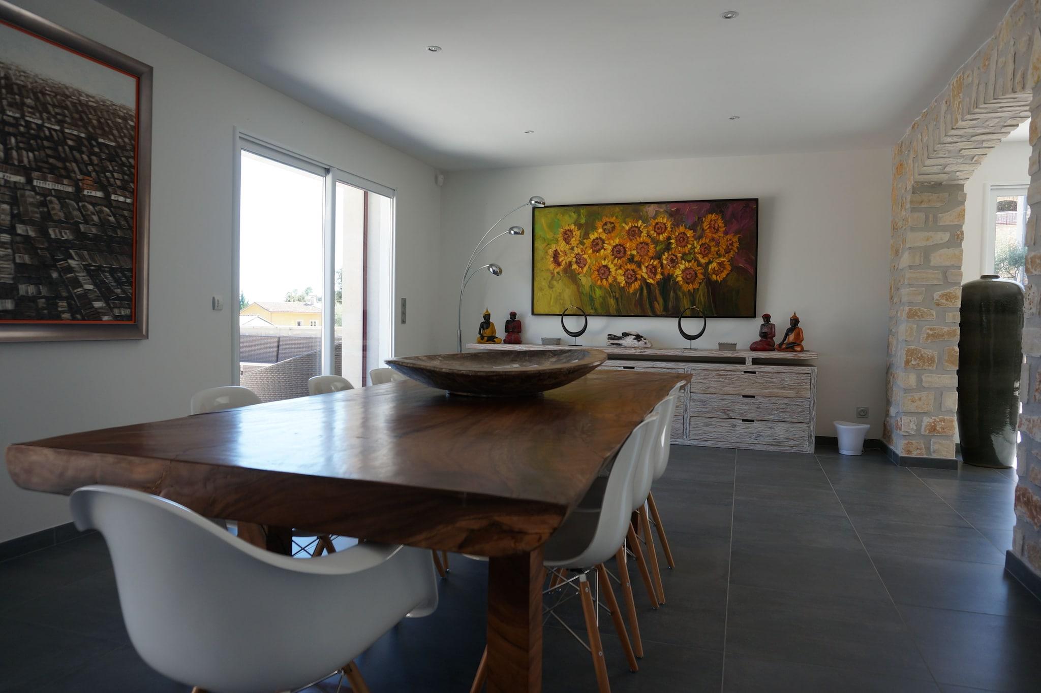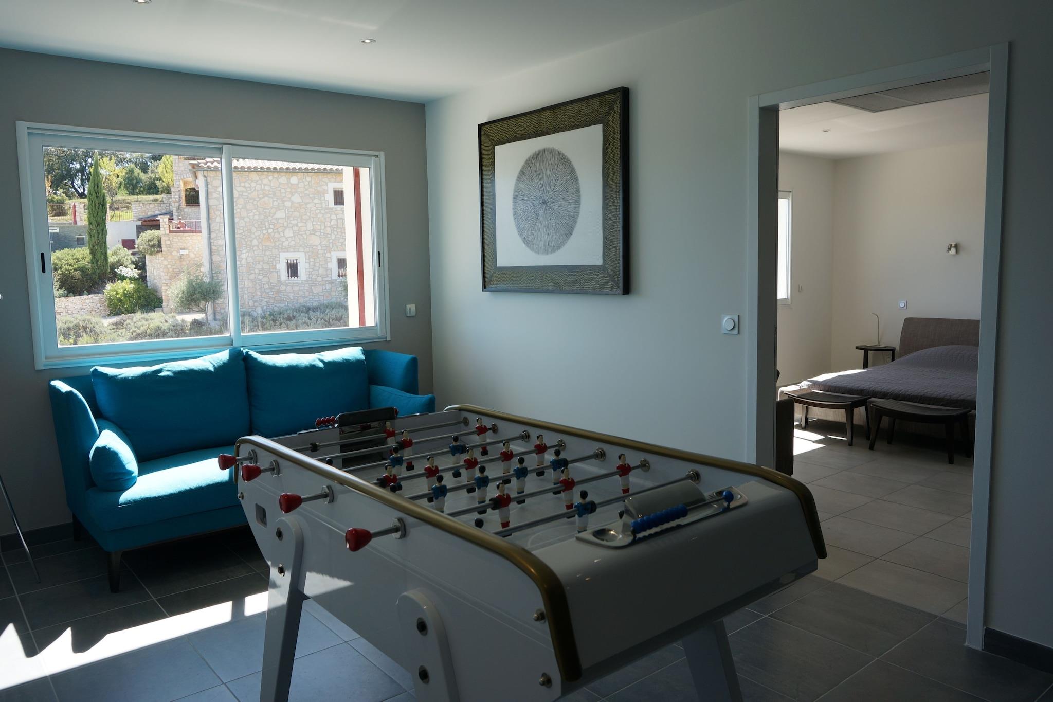 Denne luksusvilla i Saint-Ambroix har 6 soveværelser og kan rumme op til 12 personer. Det afslappende hus med privat swimmingpool og bowlingbane er ideelt for grupper. Villaen har en traditionel stenbastide og er udstyret med alle moderne bekvemmeligheder. Boligen er bekvemt placeret tæt på generelle faciliteter, restauranter (1,2 km) og byens centrum (2 km). Den attraktive region byder på mange aktiviteter for grupper.Den børnevenlige bolig byder på faciliteter som bordtennisbane, privat swimmingpool, terrasse og have med grillfaciliteter. Huset opvarmes med varmepumpe. Dette fungerer fuldautomatisk, og du bliver derfor bedt om ikke at ændre nogen indstillinger. I de koldere perioder kan du bruge en brændeovn. Der er rigelig parkering til et par biler ved siden af huset, den nærmeste lufthavn ligger ca. 57 km væk, motorvejen ligger 50 km væk.