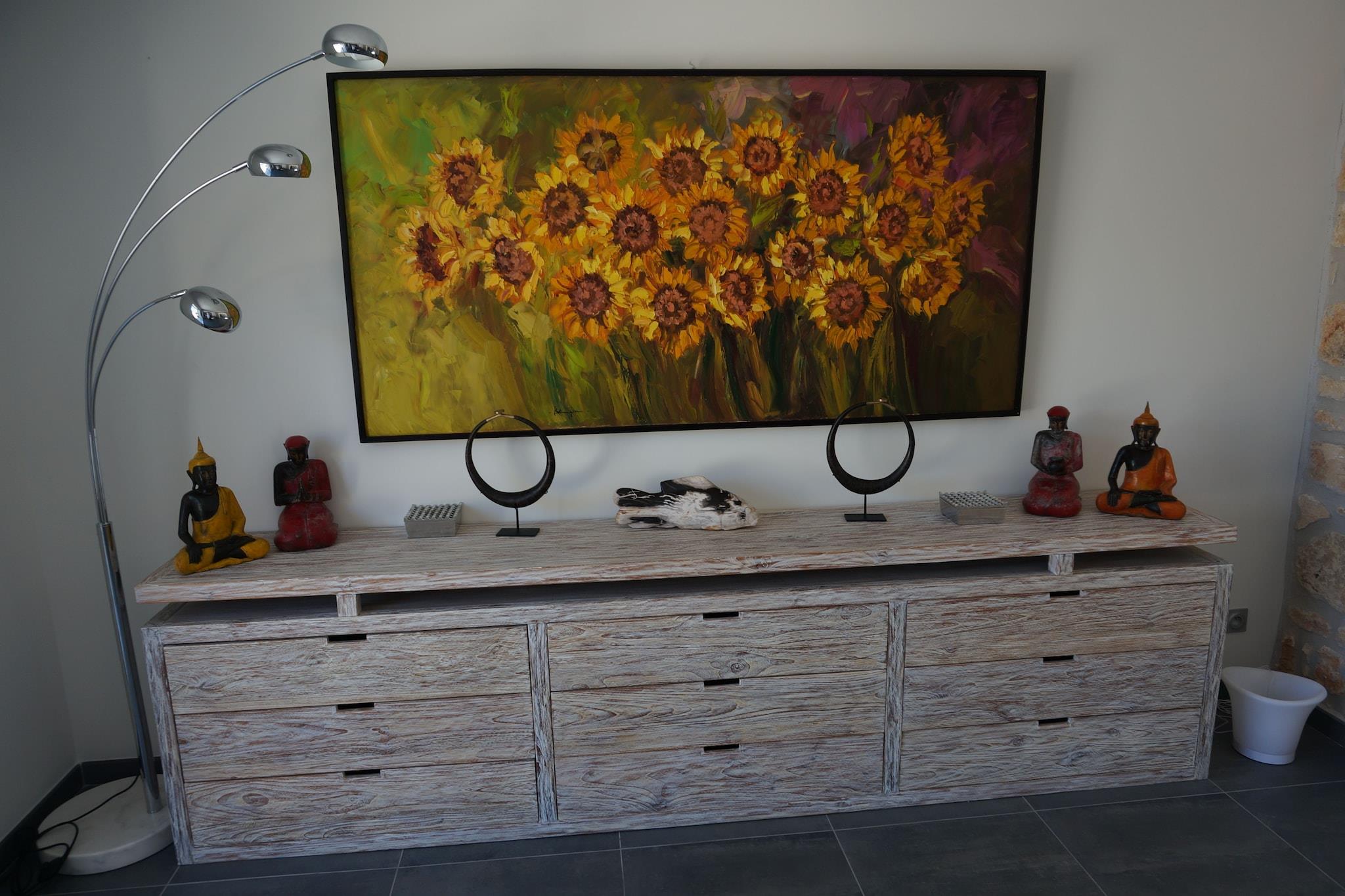 Stueetage: (Stue(pejs), spisestue, Køkken(komfur(Komfur med fire kogeplader, induktion), kaffemaskine(kaffetragt), ovn, mikrobølgeovn, opvaskemaskine , køleskab(amerikansk), fryser), Soveværelse med badeværelse(dobbeltseng(dobbeltdyne, dun, 180 x 200 cm), bruser, 2x håndvask, toilet, klimaanlæg), toilet, pulterkammer(tørretumbler, vaskemaskine), klimaanlæg) På 1. etage: (Soveværelse med badeværelse(dobbeltseng(180 x 200 cm), bruser, 2x håndvask, toilet, klimaanlæg), Soveværelse med badeværelse(køjeseng, bruser, 2x håndvask, toilet, klimaanlæg), Soveværelse med badeværelse(2x enkeltseng(dyne, dun, 90 x 190 cm), bruser, håndvask, toilet, klimaanlæg), Soveværelse med badeværelse(dobbeltseng(dobbeltdyne, dun, 160 x 190 cm), bruser, håndvask, toilet, klimaanlæg), klimaanlæg) Gæsteophold Stueetage: (Køkken(komfur(Komfur med fire kogeplader), ovn, mikrobølgeovn, opvaskemaskine ), stue / spisestue, Soveværelse med badeværelse(dobbeltseng(dobbeltdyne, dun, 140 x 190 cm), bruser, 2x håndvask, toilet), Arbejdsværelse, klimaanlæg) udekøkken, garage(adgang udefra), Fjernsyn, havedøre, patio, terrasse(privat, 120 m2), have(privat, delvist indhegnet, 800 m2), havemøbler, solstole, parkering, liggestole, swimmingpool(privat, indhegnet, 14 x 4 m., opened from May upto and including Oct), petanquebane, bordtennisbord, bordfodbold, barneseng, strygebræt, Pladegrill