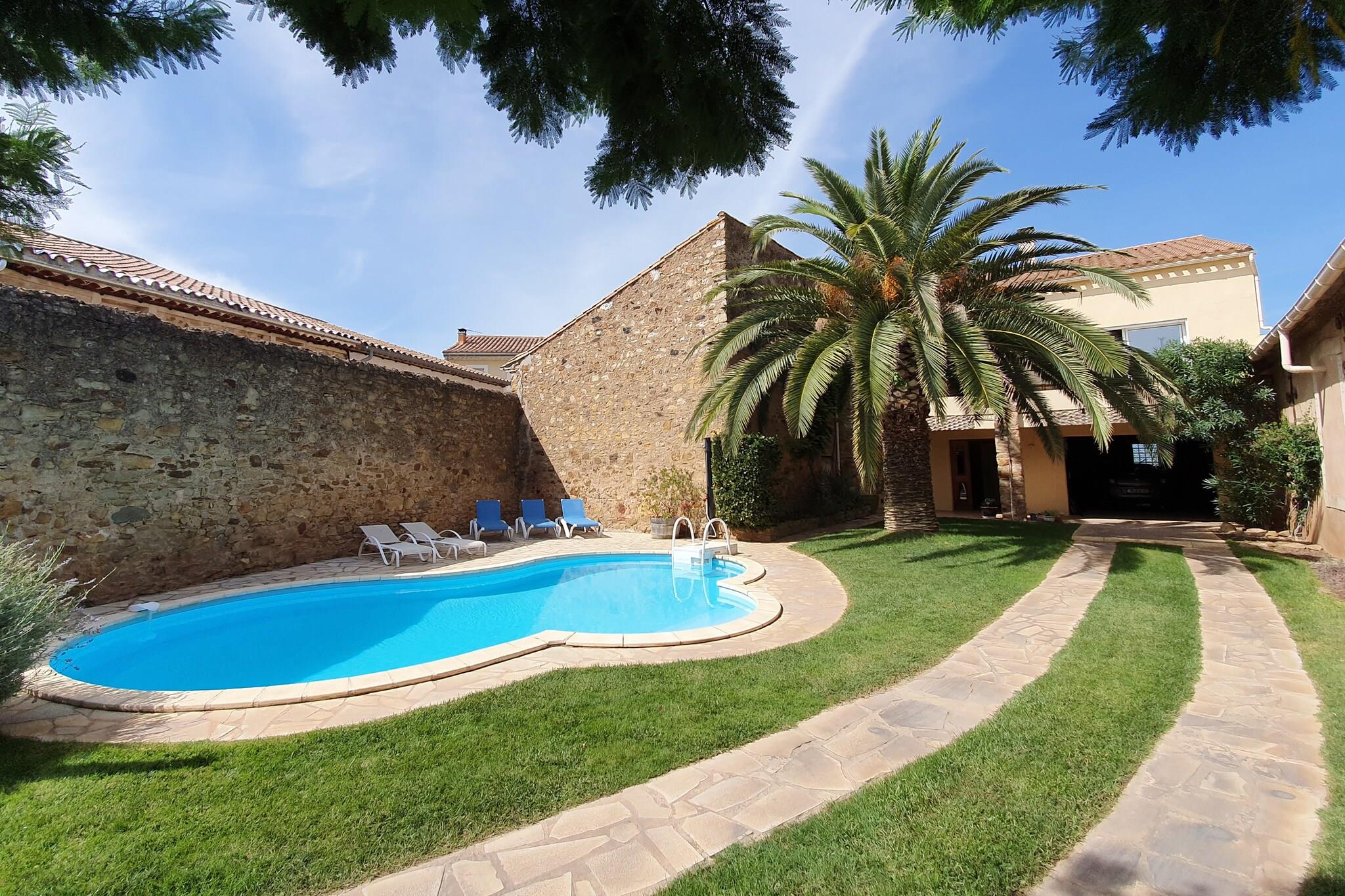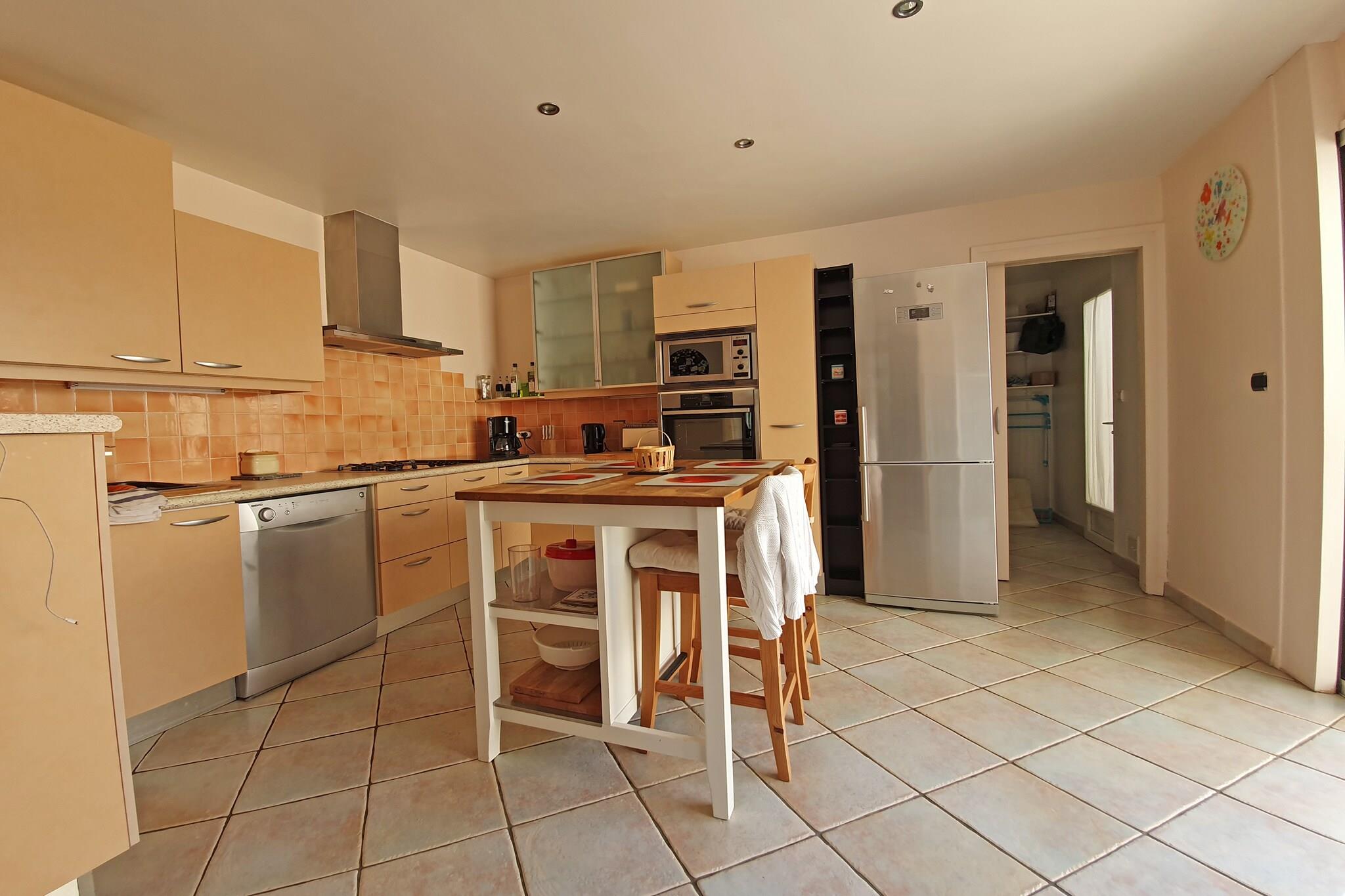 Denne rummelige villa i Saint-André-de-Roquelongue, Occitanie, Frankrig, tilbyder et lyst, komfortabelt og veludstyret hjem væk fra hjemmet, ideelt for familier eller grupper, der søger en afslappende ferie i hjertet af Corbières-landskabet. Ejendommen kombinerer generøs indendørs opholdsplads med fremragende udendørs faciliteter, herunder en privat swimmingpool og sauna, perfekt til varme sommerdage og afslappende aftener. Indenfor er villaen indrettet til at understøtte lethed og komfort under hele dit ophold. De indbydende opholdsområder inkluderer en rummelig stue med rigelig siddeplads og et tv, hvilket gør det nemt at slappe af efter at have udforsket regionen. Det fuldt udstyrede køkken tilbyder alt, hvad du behøver til selvforplejning - fra hverdagsmåltider til familiemiddage. 4 soveværelser er indrettet til komfortabelt at rumme større grupper, og villaen har flere badeværelser med moderne inventar for ekstra bekvemmelighed. Udenfor er ejendommens private swimmingpool et højdepunkt, der indbyder til forfriskende dukkerter på varme dage. I nærheden er der en sauna til total afslapning og foryngelse. En overdækket terrasse og havemøbler skaber et behageligt sted at spise udendørs eller nyde afslappende morgener med din morgenkaffe. Den sikre have og poolområde gør det nemt at blande social tid med fredelig afslapning i det provencalske solskin. Beliggende i det landlige Saint-André-de-Roquelongue-område - kendt for sit middelhavslandskab, vinmarker og nærhed til naturparkerne Corbières og Narbonnaise - er denne villa ideel for rejsende, der nyder at udforske landsbyer på landet, regionale vingårde, naturskønne køreruter og nærliggende strande langs Middelhavskysten.