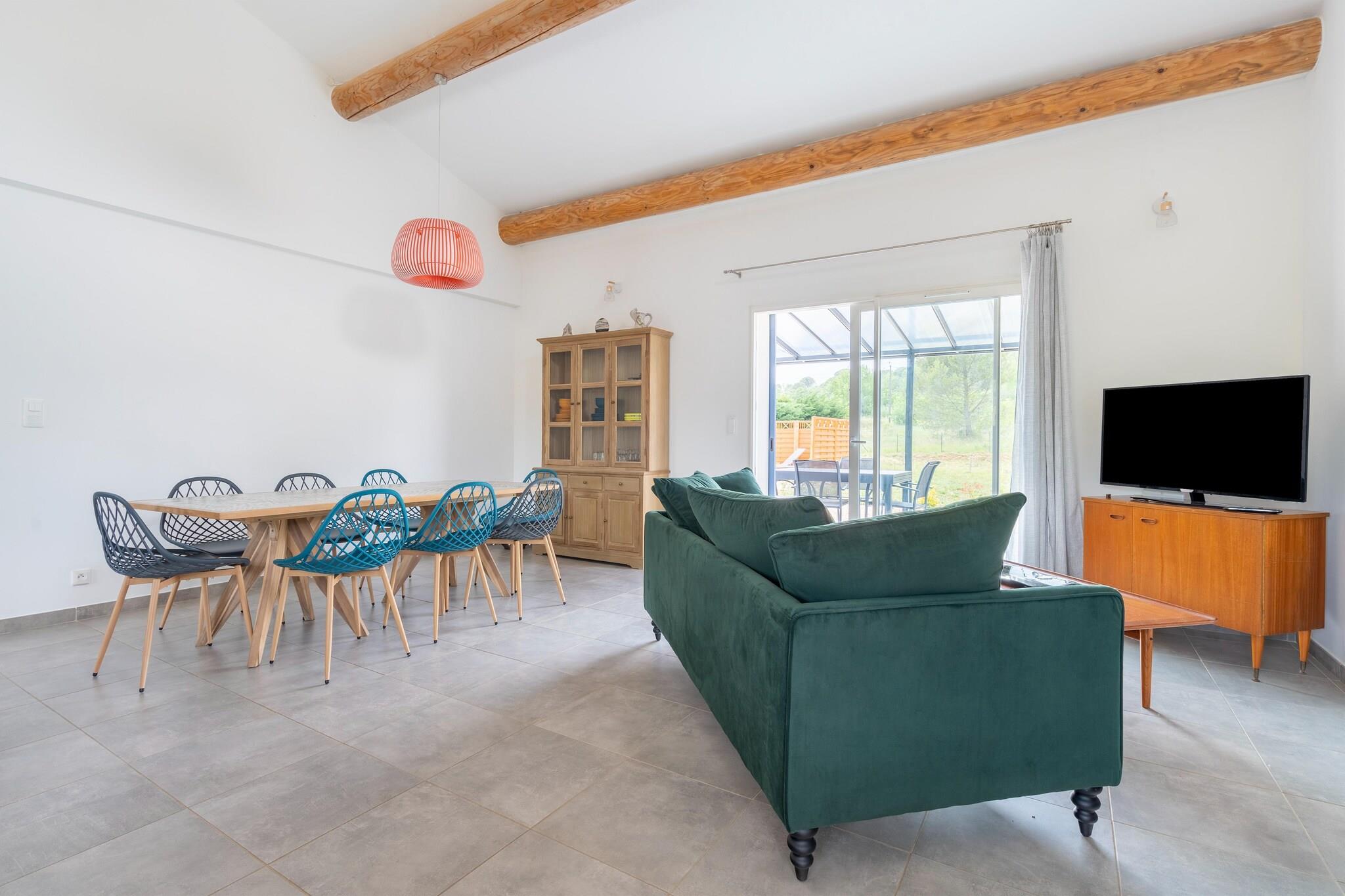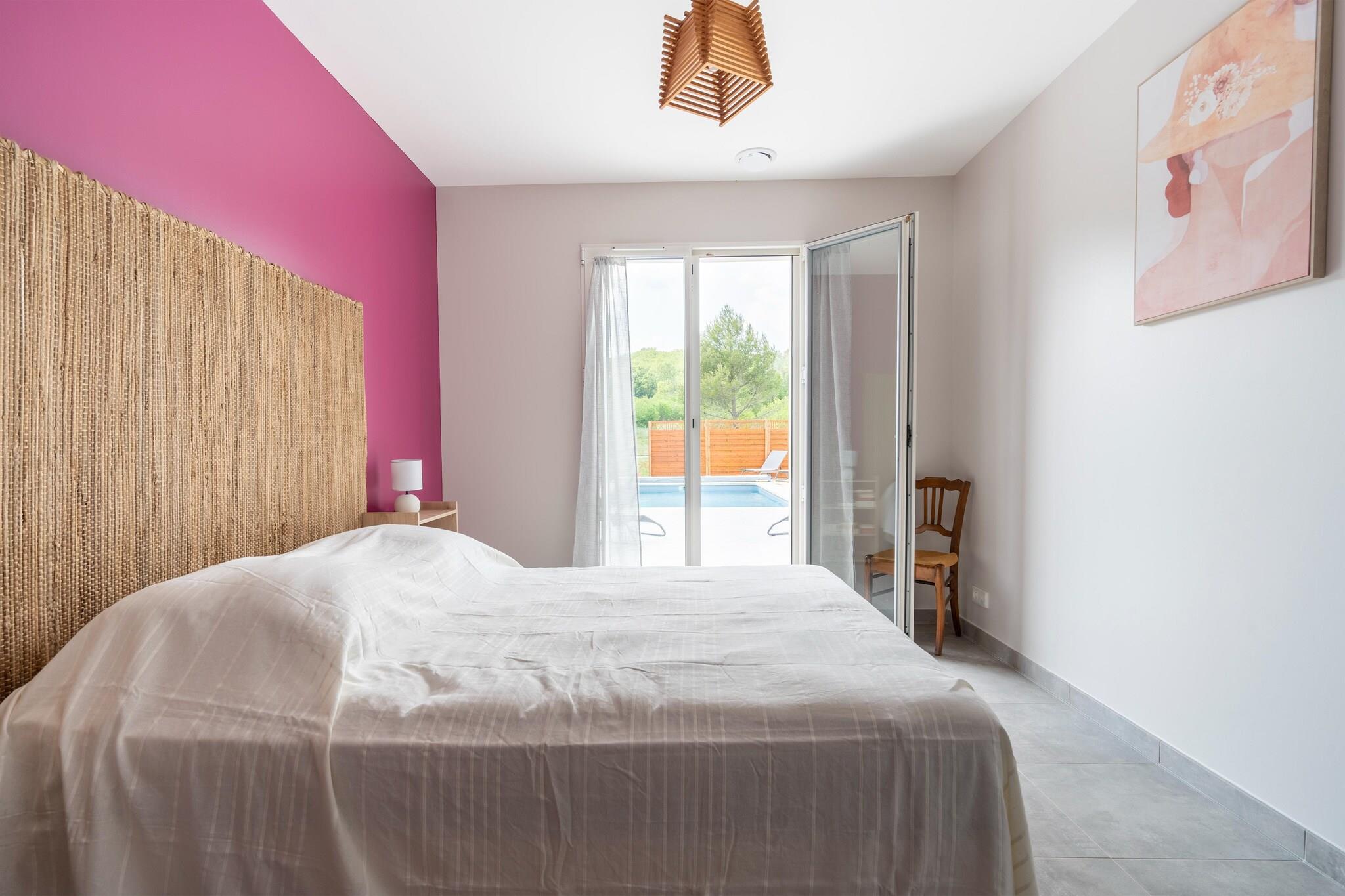 Dette nybyggede feriehus på 90 m² (2018) ligger på en generøs 1500 m² stor grund i Saint-André-de-Roquepertuis og tilbyder en privat swimmingpool og en fredelig terrasse til afslappende aftener. Perfekt til familier eller venner, huset åbner ud til en pergola-skyggefuld udendørs spiseplads og en solbelyst have. Indvendigt forbinder den rummelige stue problemfrit til terrassen og poolen og har et trådløst tv og hyggelige siddepladser. Beliggende i hjertet af Cèze-dalen mellem Goudargues og Montclus, er dette naturelskers paradis omgivet af skove, lavendelmarker og charmerende middelalderlandsbyer som La Roque-sur-Cèze, Aiguèze og Lussan. Nyd at svømme i floden, sejle i kano, vandre eller cykle op ad Mont Ventoux. Middelhavsstrandene ved Grau du Roi ligger kun 90 minutter væk, og kulturelle perler som Uzès, Nîmes og Avignon ligger inden for en times kørsel. Boligen indeholder komfortable soveværelser med nyt sengetøj, et veludstyret køkken og rummelige badeværelser med vaskemaskine. WiFi er tilgængeligt via rådhusets netværk ved siden af. Butikker, restauranter og lægetjenester er kun 3 km væk i Goudargues. Kæledyr er velkomne, og der er parkering til to biler. Dette rolige tilflugtssted er din indgang til det bedste af det sydlige Frankrig.