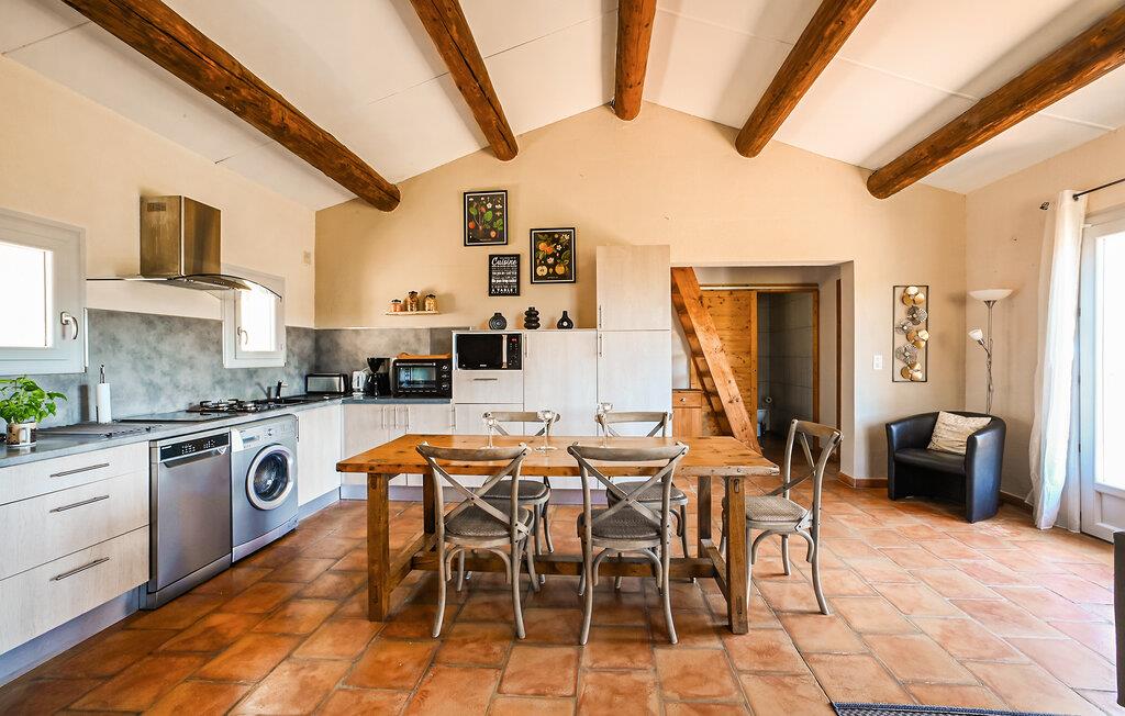 Fritliggende feriehus med en rummelig terrasse samt en fantastisk udsigt fra den store og rektangulære grund, til flodens smukke bredder. Husets åbne køkken, kamin og fritlagte loftsbjælker understreger husets hyggelige og charmerende stemning. Huset indre er komfortabelt indrettet i provencalsk stil. Dette lille stykke af paradis ligger midt i Cèzes dal, nær Ardèche slugten, Cevennerne og Pont du Gard. Sautadets kaskader: 12 km. Barjac: 15 km. Gourdages, der også kaldes Lille Venedig: 4 km.