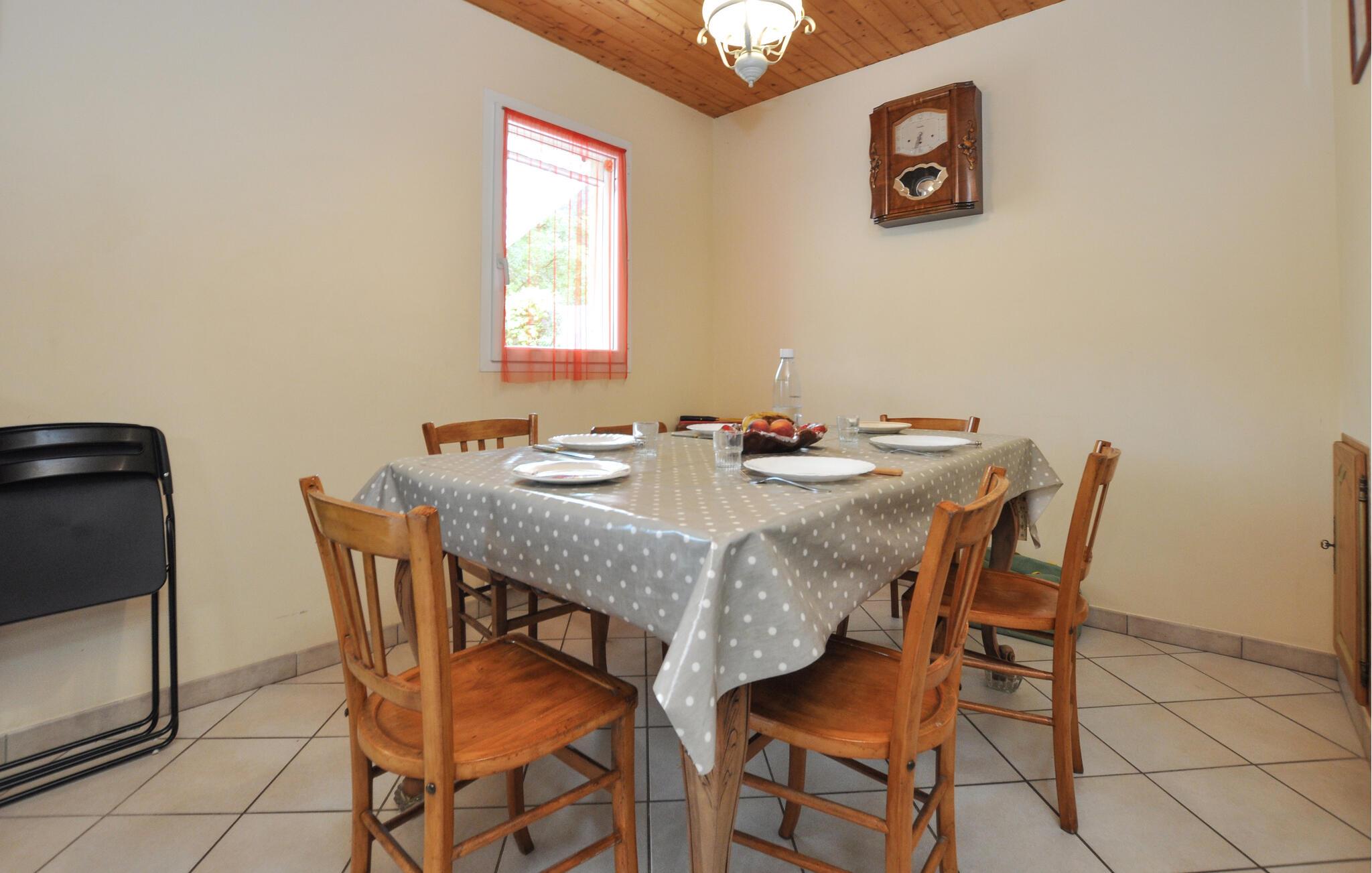 Nyd den hjemlige atmosfære i Feriehuset, forstærket af træelementer og enkle møbler. Brug de lyse rum til at slappe af efter en aktiv dag og tilbring aftener sammen i stuen med pejs og TV. Sæt jer ved spisebordet og tilbered dagens måltider i det funktionelle køkken.
