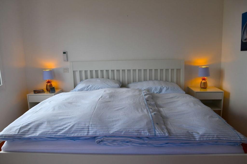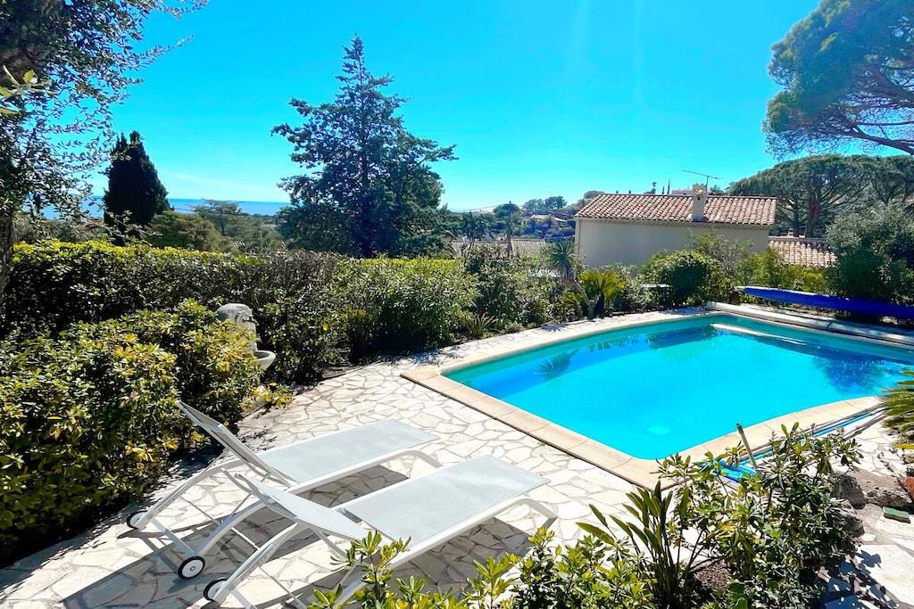 DIE VILLA PLEN SOULÈU "Plen soulèu" ist ein Ausdruck in Okzitanisch, dem französisch-romanischen Dialekt der Provence, der an der Côte d'Azur in Frankreich gesprochen wird. Es ist ein malerischer Ausdruck, der häufig verwendet wird, um einen schönen, sonnigen Tag oder die freudigen Momente zu beschreiben, wenn die Sonne vom Himmel strahlt. Wir finden, dass dieser Ausdruck unsere sonnenverwöhnte Villa mit ihrer besonderen Architektur und der fantastischen Dachlounge mit 360°-Panomarablick und grandiosem Meerblick, und ihrem sonnendurchfluteten Garten von über 1.000 m2 Fläche perfekt beschreibt. Die Villa liegt nur 1 Kilometer vom Strand entfernt und nur einen kurzen Spaziergang (1,5 km) von einer örtlichen Bäckerei und einem Geschäft entfernt. Sie ist in einer ruhigen Umgebung mit atemberaubender Aussicht eingebettet. Der Hauptstrand von Saint-Aygulf, wo sich die meisten Restaurants befinden, ist nur 3 Kilometer von der Unterkunft entfernt. DIE AUSSENANLAGE Mit einer wunderschönen Terrasse mit Grill und Esstisch bietet die Villa Plen Soulèu die perfekte Kulisse für köstliche Mittag- und Abendessen mit spektakulärer Aussicht. Die Terrasse grenzt an den beheizbaren Pool, bei dem auf Anfrage gegen Aufpreis eine professionelle Gegenstromanlage aktiviert werden kann. Entspannen Sie sich auf den bequemen Liegen und Sesseln, tanken Sie Sonne, genießen Sie ein gutes Buch, die ruhige Gelassenheit und die weiten Ausblicke. Eine Treppe an der Seite der Villa führt zur Dachterrasse mit luxuriöser Lounge. Diese Dachterrasse ist das absolute Highlight der Unterkunft und bietet einen 360°-Panoramablick auf das Mittelmeer und die Bucht von Saint Aygulf. Ein idyllischer Ort, um atemberaubende Sonnenuntergänge bei köstlichen Aperitifs zu genießen. Es gibt 2 Parkplätze auf dem Privatgrundstück. DAS INTERIEUR Betreten Sie diese wunderschöne Villa mit einer Wohnfläche von ca. 150m2, die kürzlich komplett renoviert wurde und Sie in Komfort willkommen heißt. Beim Betreten der Villa werden Sie vom einladenden Wohnzimmer mit gemütlichem Kamin empfangen. Dieser Raum bietet ausreichend Sitzgelegenheiten auf bequemen Sofas, einen Esstisch für gemütliche Abendessen und Zugang zur überdachten Terrasse, wo ein Grill für Ihr Outdoor-Vergnügen bereitsteht. Neben dem Wohnzimmer finden Sie die voll ausgestattete Küche, die alles bietet, was Sie für die Zubereitung köstlicher Mahlzeiten benötigen, einschließlich Elektroherd, Kühlschrank, Gefrierschrank, Geschirrspüler, Backofen und Mikrowelle. Auch von hier aus gelangen Sie zur überdachten Terrasse. Ein Flur führt zu einer separaten Toilette und dann zum ersten Schlafzimmer, ausgestattet mit einem komfortablen Doppelbett und einem Badezimmer mit luxuriöser Badewanne, Doppelwaschbecken und Toilette. Neben dem Schlafzimmer finden Sie einen Arbeitsraum, in dem ein feststehender Computerbildschirm immer für Ihre Arbeitsbedürfnisse bereitsteht. Von diesem Raum führt eine Treppe in den ersten Stock, wo Sie zwei weitere Schlafzimmer mit jeweils eigener Terrasse und atemberaubendem Meerblick finden. Ein zweites Badezimmer auf dieser Etage bietet zusätzlichen Komfort mit Toilette, Dusche und Waschbecken. Für zusätzlichen Schlafplatz gibt es einen Zwischenraum mit einem bequemen Schlafsofa. Klimaanlage ist in allen Schlafzimmern und im Wohnzimmer vorhanden. Entdecken Sie den Komfort, den Stil und die atemberaubende Aussicht dieser wunderschönen Villa, die bereit ist, Ihren Aufenthalt unvergesslich zu machen. TRAUMHAFTE STRÄNDE Diese Villa ist ideal gelegen, nur 1 km von einem intimen Strand entfernt, während der Hauptstrand des belebten Saint-Aygulf nur 3 km entfernt ist. Innerhalb einer kurzen 10-minütigen Fahrt erreichen Sie die malerische Küstenstadt Fréjus, wo Sie das charmante Ambiente und die lebhafte Atmosphäre genießen können. Entdecken Sie den glamourösen Charme von Saint-Tropez, das nur 30 Kilometer von der Villa entfernt liegt, während das schöne Sainte-Maxime nur einen Katzensprung entfernt ist, nur 15 Kilometer entfernt. Mit einer perfekten Lage zwischen diesen bezaubernden Zielen bietet diese Villa die ideale Basis, um die Schönheit der französischen Riviera in vollen Zügen zu genießen. GELEBTE NACHHALTIGKEIT Die Villa bezieht ihren Strom aus einer Photovoltaikanlage (eine Rarität in Südfrankreich) und im ganzen Haus sind modernste umweltfreundliche und CO2 sparende Wärmepumpen für Klimatisierung, Heizung und Warmwasserbereitung installiert. So können Sie Ihren Urlaub mit gutem Gewissen genießen!