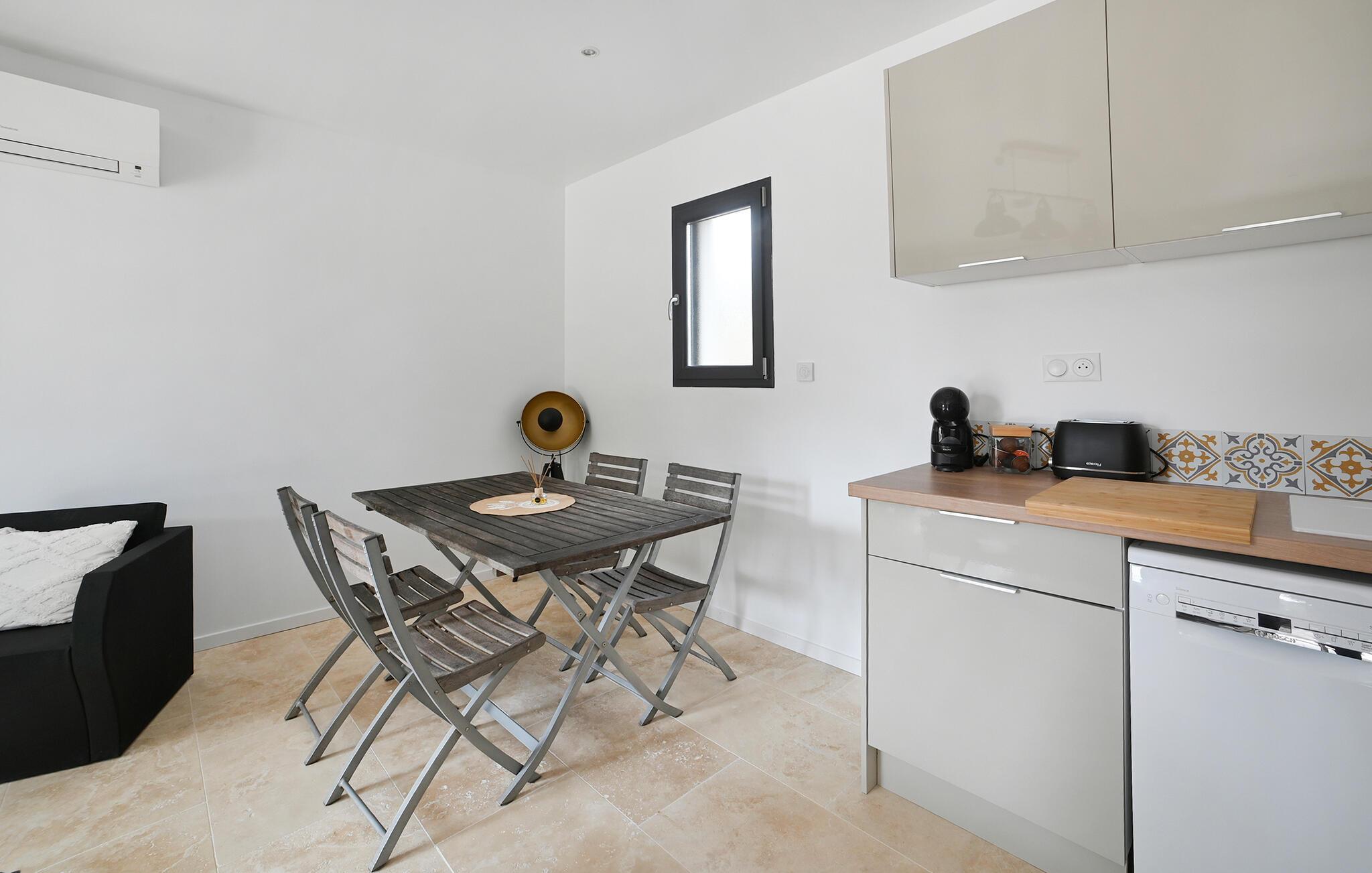 Dette lyse og moderne feriehus ligger tæt på smukke strande og giver jer en ideel base, hvorfra I kan udforske de forskellige attraktioner omkring Montpellier. Pisk lækre retter op i det charmerende køkken og planlæg jeres aktiviteter for den kommende dag ved det indbydende spisebord. Føl jer godt tilpas i de behagelige lænestole, læs en spændende bog eller få en god snak over et glas vin.