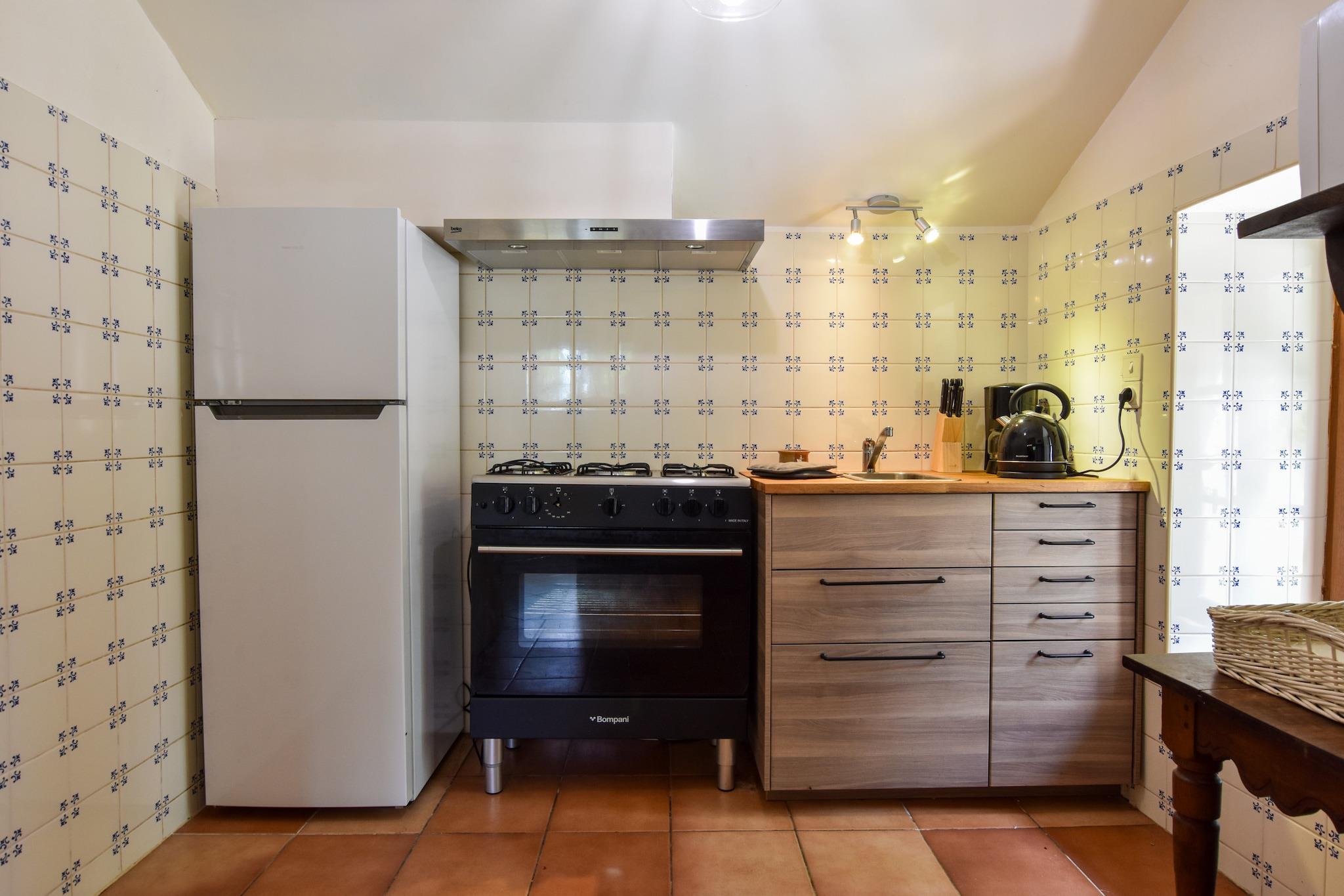 Stueetage: (åbent køkken(kogeplade, elkedel, brødrister, kaffemaskine, ovn, mikrobølgeovn, opvaskemaskine , køle-fryseskab), stue / spisestue(Fjernsyn, spisebord, pejs, sofahjørne, CD-afspiller), Soveværelse med badeværelse(king size-seng(160 x 200 cm), bruser, håndvask, toilet), Soveværelse med badeværelse(2x enkeltseng(90 x 180 cm), bruser, håndvask, toilet), toilet) På 1. etage: (Soveværelse med badeværelse(enkeltseng(90 x 180 cm), king size-seng(160 x 200 cm), ovn, bruser, håndvask, toilet), Soveværelse med badeværelse(enkeltseng(90 x 180 cm), king size-seng, videoafspiller, badekar, håndvask, toilet)) garage, vaskemaskine, terrasse(privat), have(privat), havemøbler, grill, liggestole, Parasol, swimmingpool(privat, opvarmet, indhegnet), petanquebane, legeredskaber, bordtennisbord, barnestol, strygebræt, strygejern