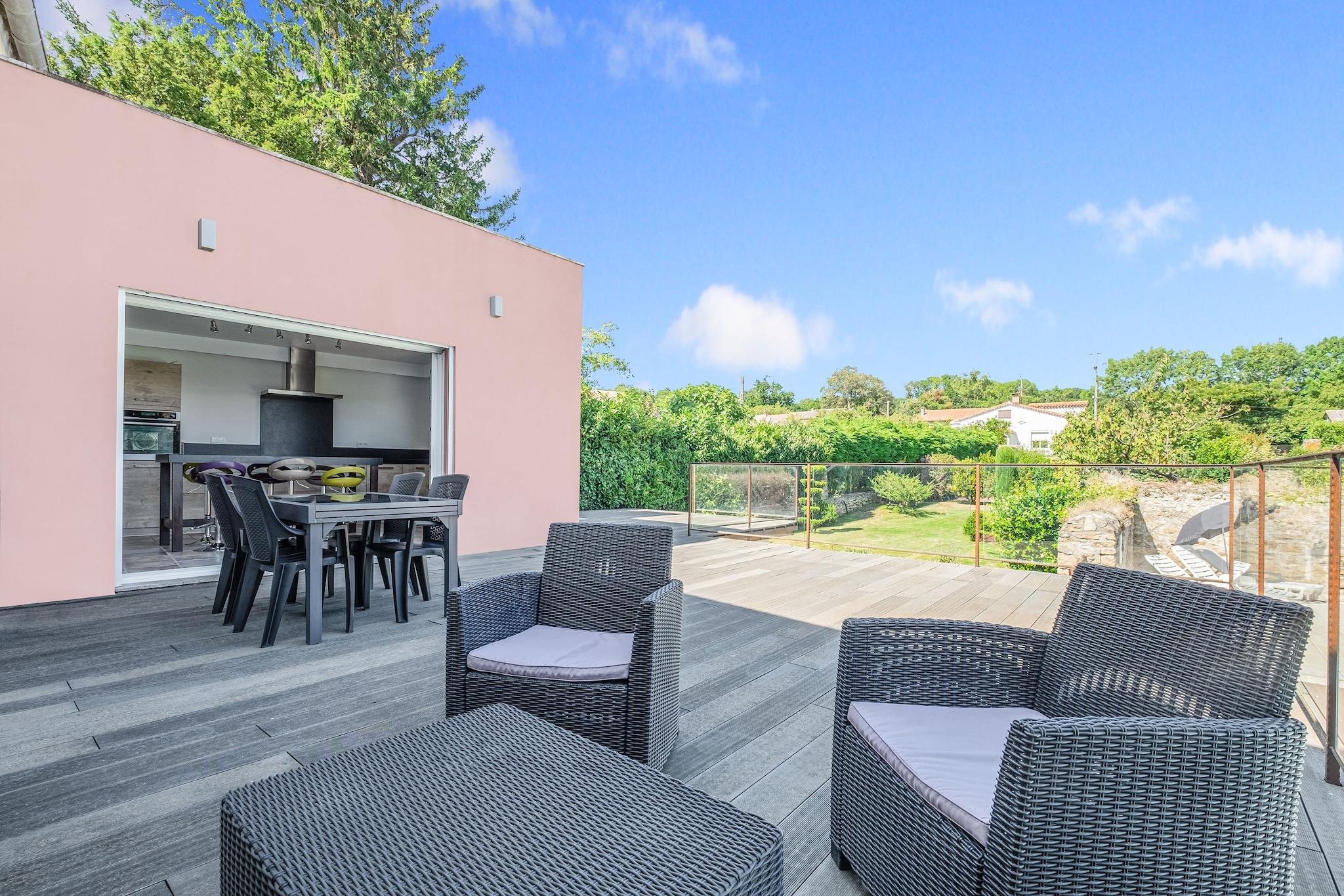 Stueetage: (garage) På 1. etage: (Køkken(brødrister, komfur(induktion), emhætte, espressomaskine, ovn, mikrobølgeovn, opvaskemaskine , køle-fryseskab, vaskemaskine, strygejern), stue / spisestue(40 m2)(Fjernsyn(fladskærm, parabol), spisebord, DVD-afspiller), Soveværelse med badeværelse(25 m2)(dobbeltseng(180 x 200 cm), Fjernsyn(Smart-TV), bruser(Walk-in-bruser), håndvask, håndvask), toilet) På 2. etage: (soveværelse(dobbeltseng(140 x 200 cm)), soveværelse(enkeltseng(90 x 190 cm), dobbeltseng(140 x 190 cm)), badeværelse(badekar, bruser, håndvask), toilet) spisebord(8 personer), terrasse, solstole, grill(elektrisk), swimmingpool(privat, udendørs, 14 x 4 m.)