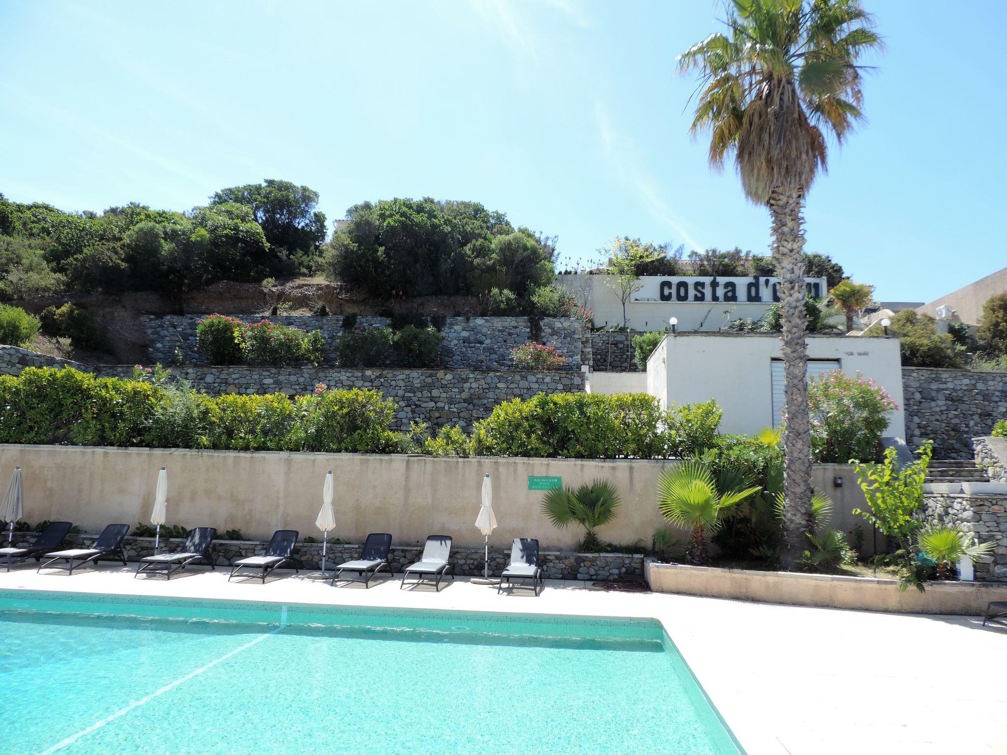 Residence "Costa D'Oru". 37 houses in the residence. In the resort 1.8 km from the centre of Saint-Florent, in an elevated position on top of a hill, 350 m from the sea, road to cross. For shared use: property 2 ha (fenced), swimming pool (13 x 6 m, depth 150 - 210 cm, seasonal availability: 01.May. - 15.Oct.). Outdoor shower, table tennis. In the house: reception, WiFi, table tennis. Parking at the house on the premises. Grocery 2 km, supermarket 4.6 km, bakery 750 m, bus stop 2.2 km, sandy beach "La Roya" 4 km, shingle beach 400 m. Sports harbour 2 km. Nearby attractions: Plage de Saleccia 27 km, Plage du Lotu, Bastia 22 km, Nonza 11 km. Hiking paths: Cap Corse, Desert des Agriates. Please note: car recommended. Baby equipment on request.