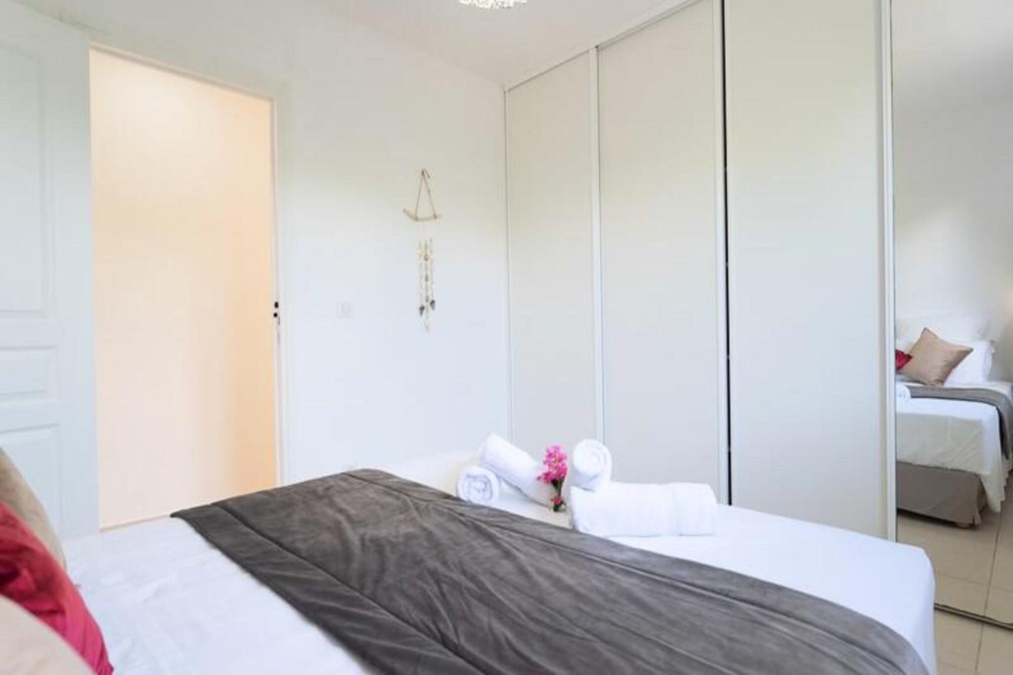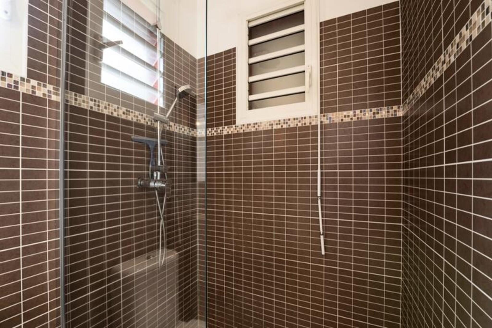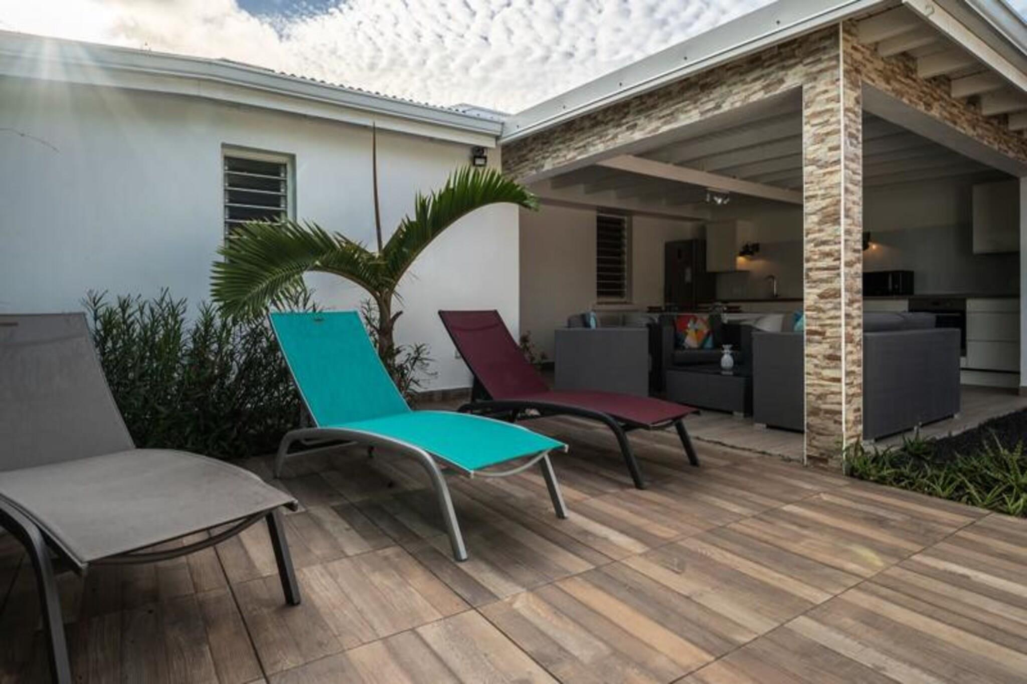 Denne rummelige ejendom best?r af to villaer med stor swimmingpool og kan rumme 12-15 personer. Den f?rste villa omfatter en stor stue med et katedralloft, der ?bner til en terrasse, en stor pool og frodige haver. Det tilbyder fire sovev?relser med aircondition, herunder en mastersuite med en 180 cm seng, p?kl?dningsv?relse, badev?relse og toilet. Den anden villa har et lyst k?kken, et opholdsomr?de og to sovev?relser med aircondition, hver med sit eget private badev?relse. Villaerne er ikke k?ledyrsvenlige, og der kr?ves et depositum p? EURO2500. Denne ejendom er ideelt beliggende i hjertet af Saint-Fran?ois, t?t p? kvalitetsbutikker, restauranter og marinaen. Kun 7 minutter fra golfbanen og 10 minutters k?rsel til en af ??de smukkeste strande p? Guadeloupe, Raisins Clairs. Saint-Annes storsl?ede strande er 15 minutter v?k, og Le Moule er en kort 5-minutters k?rsel. Omr?det er ideelt til vandsport, hvor havnen i Saint-Fran?ois tilbyder surflektioner, og de n?rliggende strande er perfekte til Wing Foil-ture. Villaerne er fuldt udstyret med moderne bekvemmeligheder, herunder aircondition, internetadgang og en saltvandsswimmingpool med alarmsystem for sikkerhed. Hver villa har et fuldt udstyret k?kken, private badev?relser og store terrasser med liggestole. G?sterne kan ogs? nyde concierge-tjenester, en velkomstcocktail og reng?ring f?r og efter deres ophold.