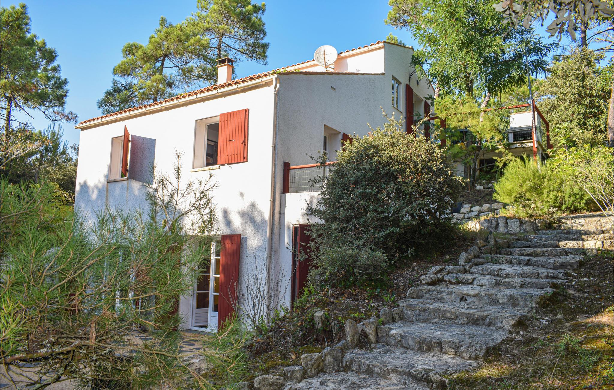 Smukt beliggende, omgivet af skov og bygget ind i klipperne, byder dette indbydende og rummelige hus jer velkommen. Et fantastisk sted for hele familien, hvor I kan tilbringe tid alene eller med venner. Soveværelserne er fordelt mellem hovedhuset og et anneks, hvilket gør det ideelt for større familier, der også sætter pris på privatliv. Slap af her i en hjemlig atmosfære; møblerne er komfortable uden at være luksuriøse. To terrasser tilbyder en hyggelig ramme for hyggelige aftener på den skyggefulde grund.