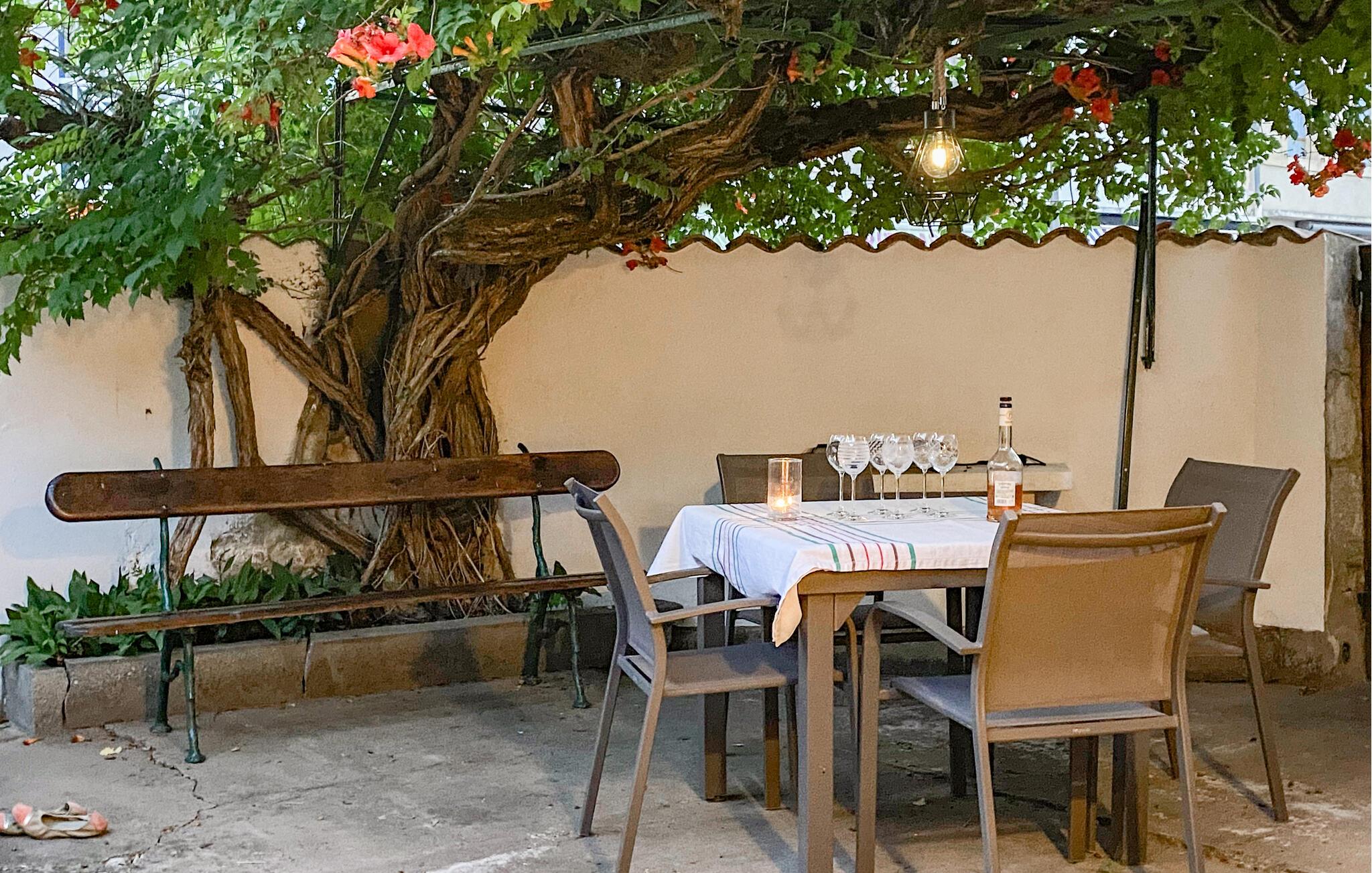 Den ugenerede have indbyder til fredfyldte stunder og lune aftener omgivet af grønne omgivelser og skyggefulde oaser.
