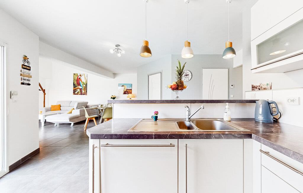 Glæd jer til dette ophold i dette moderne feriehus. Det lyse og stilfulde interiør tilbyder en indbydende atmosfære. Den rummelige stue med komfortable møbler og smagfulde dekorationer skaber en hjemlig atmosfære. Kom sammen om morgenen i det veludstyrede køkken, som ikke lader noget tilbage at ønske, efter at I har nydt en afslappende nat i de velindrettede soveværelser.