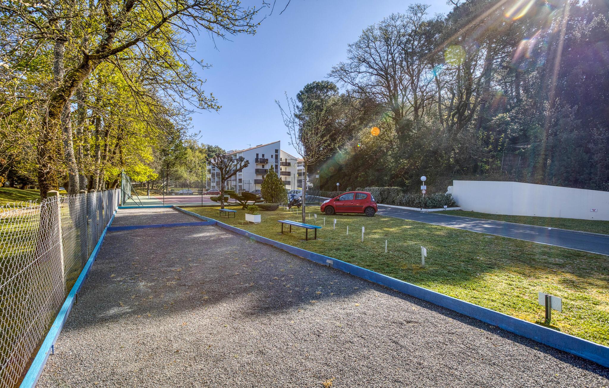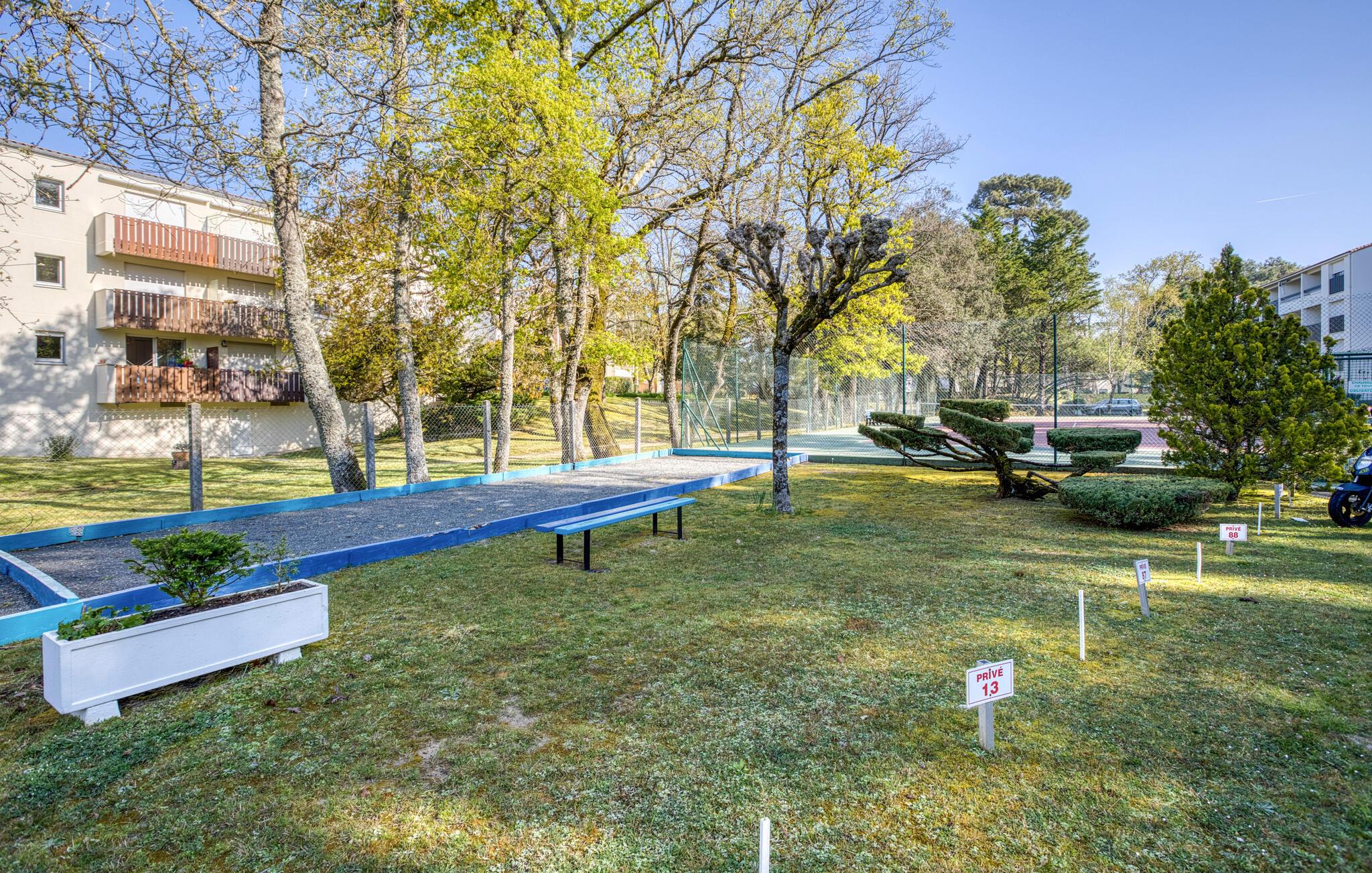 sæt hverdagen på pauses stress og sving rundt og tilbring en afslappende ferie i en lejlighed, der har en fantastisk beliggenhed nær stranden. Find jer godt til rette her, og brug den lyse lejlighed som udgangspunkt for dejlige dage på stranden og udforskning af området. Begynd dagene med en god morgenmad med en fantastisk udsigt over de grønne områder på terrassen. Nyd solen fuldt ud eller tilbring varme sommeraftener udendørs. I boligen kan I spille petanque og tennis.