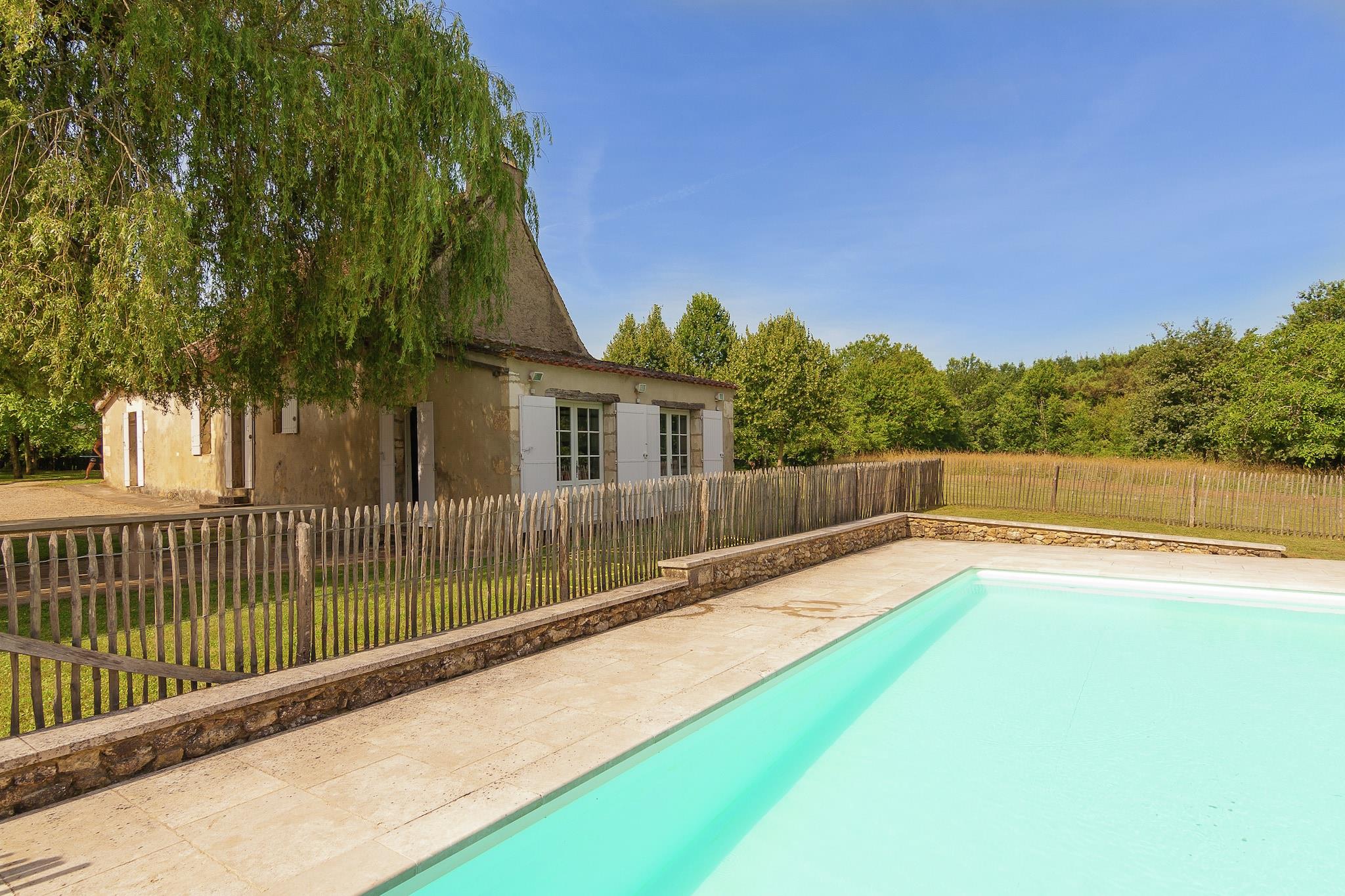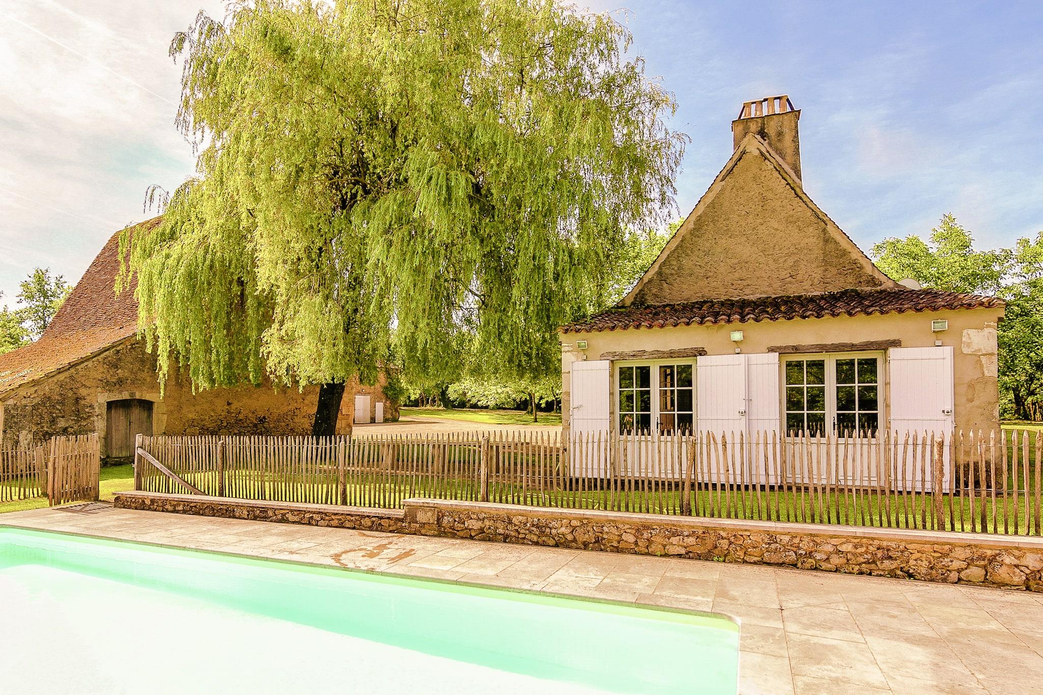 Beliggende i hjertet af Dordogne-regionen, velkommen til La Léotardie, et charmerende og rummeligt palæ i Saint-Georges-de-Montclard. Dette elegante palæ, der er ideelt til store familier eller grupper, tilbyder al den komfort og karakter, du kan forvente af et feriested på landet - komplet med en privat swimmingpool (åben maj til september) og frodig have med grill, havemøbler og en skyggefuld terrasse. Selvom kæledyr ikke er tilladt, er ejendommen børnevenlig og byder på legeredskaber, en høj stol og en børneseng. Slap af i flere hyggelige stuer med traditionelle træbjælkelofter eller nyd måltider sammen ved det store spisebord. Det fuldt udstyrede køkken omfatter moderne apparater, og yderligere funktioner såsom et opholdsrum med bordtennisbord og brændeovn sikrer et behageligt ophold. Udforsk nærliggende aktiviteter: ridning og tennis kun 5 km væk omkring Villamblard eller Campsegret, Golf de la Marterie eller Golf de Bergerac inden for 15 km, eller slap af ved floden eller nyd vandsport nær Dordogne-floden, som er berømt i regionen for kajaksejlads, kanosejlads og svømning. Essentials, restauranter og et supermarked ligger alle inden for 5 km. For sightseeing kan du besøge middelalderbyen Bergerac for sin charme ved floden og vinsmagning. Oplev Château de Monbazillac, berømt for søde vine og en fantastisk udsigt over vingårdene. Gå ikke glip af Périgueux, kendt for sine romerske ruiner og livlige markeder, eller Le Bugue med dets akvarium og huler. Nyd en fredelig og stilfuld ferie i hjertet af Dordogne!
