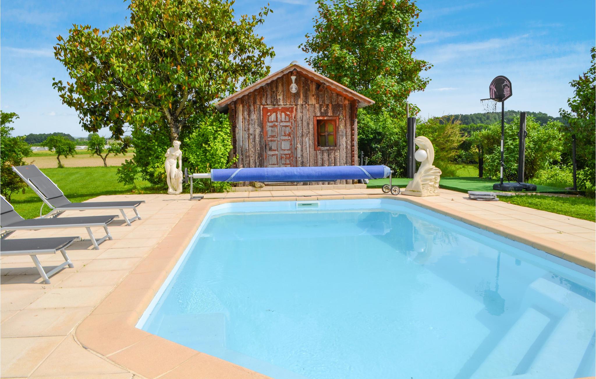 Drømmer I om en behagelig familieferie i smukke naturomgivelser? Så ville dette rummelige feriehus med privat udendørs pool være et godt valg. Dette skønne feriehus ligger i departementet Lot-et-Garonne i Saint-Georges kommune. Indenfor kan I forvente et højkvalitets og komfortabelt interiør, der gør et smukt og smagfuldt indtryk. Glæd jer til en afslappende ferie med familien og føl jer godt tilpas i den stilfulde atmosfære. På den enorme naturejendom vil unge og gamle finde masser af plads til at slippe dampen af og flere hjørner, der inviterer til at blive hængende. Tilbring solrige dage ved poolen og spil af og til en runde bordtennis, mens de små hopper, gynger eller nyder en fodboldkamp. På den skyggefulde terrasse finder I det perfekte sted til en stemningsfuld afslutning på dagen. Gå en tur gennem det rustikke landskab og oplev charmerende landsbyer. Stop ved en hyggelig restaurant og smag lokale specialiteter.