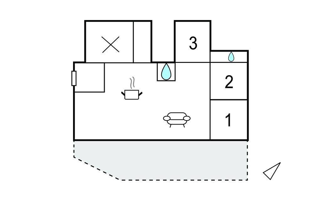 Køkkenet har v/k vand