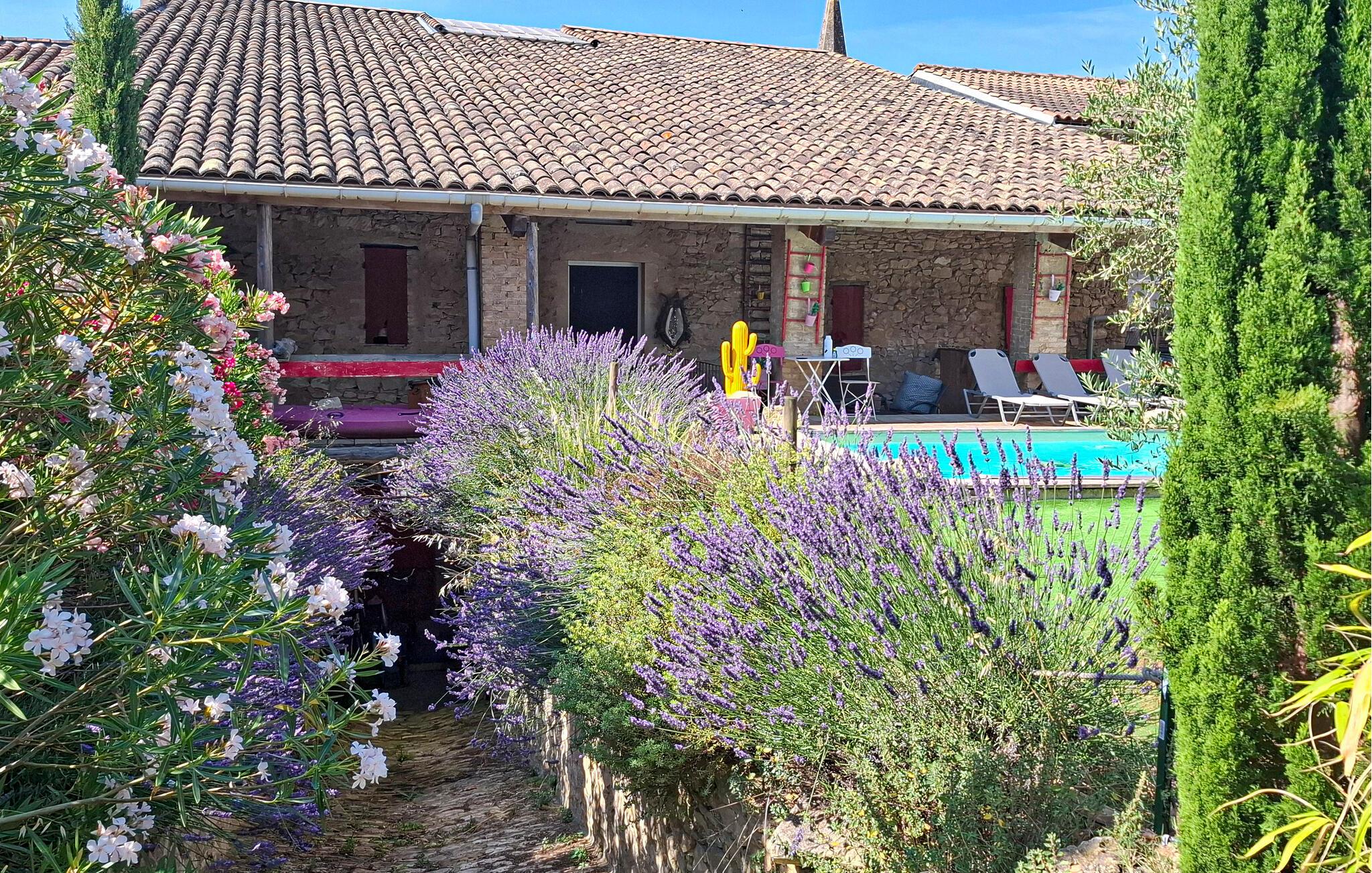 I bor ikke langt fra floderne, hvor I kan sejle i kano, holde picnic eller bade. Der er også kun 5 km til en af ??de smukkeste landsbyer i Frankrig, La-Roque-sur-Cèze, samt den storslåede Cascades du Sautadet. Oplev Goudargues med caféer, restauranter og den skyggefulde kanal, de storslåede kløfter i L'Ardèche, hulerne i Orgnac l 'Aven og de la Cocalière. Oplev også Saint-Martin-d'Ardèche med natmarked, landsbyen Aiguèze samt Barjac, en karakteristisk landsby med loppemarked og grøntmarked.