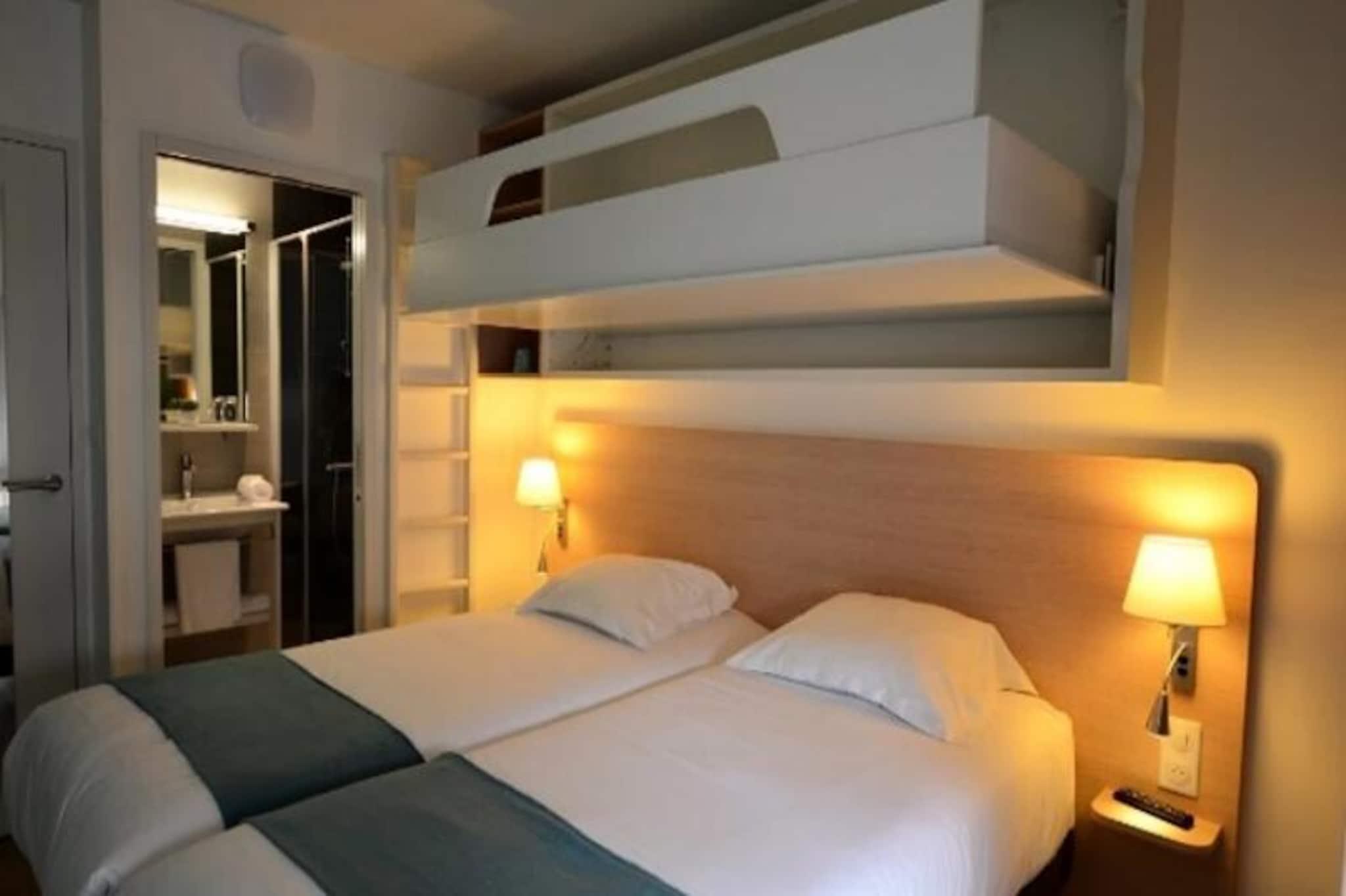 Dette charmerende hotel tilbyder 51 komfortable værelser, inklusive muligheder, der er egnede til personer med nedsat mobilitet. Hvert værelse er udstyret med to enkeltsenge, der kan sættes sammen, plus en høj seng egnet til børn over 6 år, eget badeværelse og tv. Hotellet tilbyder gratis WiFi overalt på ejendommen, og der tilbydes håndklæder. For gæster, der rejser i bil, er der begrænset privat parkering med yderligere ledige pladser i nærheden. Hotellet er ikke kæledyrsvenligt, og en turistskat skal betales på stedet. Hotellet ligger kun 200 meter fra en smuk sandstrand og er perfekt til en afslappende kystferie. Gæsterne kan udforske den omkringliggende naturlige skønhed, herunder klitter, skove, moser og bocages. Lystbådehavnen ligger tæt på, og området byder på masser af muligheder for udendørs aktiviteter. Der er en panoramisk restaurant på stedet, hvor gæsterne kan nyde traditionelle retter og friske skaldyr, mens de nyder en fantastisk udsigt over marinaen. Yderligere lokale attraktioner, caféer og markeder er let tilgængelige. Værelserne er veludstyrede med eget badeværelse, og mange har praktiske forbindelsesmuligheder for familier. Selvom der ikke er et tekøkken på værelserne, tilbyder restauranten en dejlig madoplevelse. Med sine rolige omgivelser og fremragende faciliteter er hotellet et ideelt sted at slappe af og nyde den omkringliggende natur.