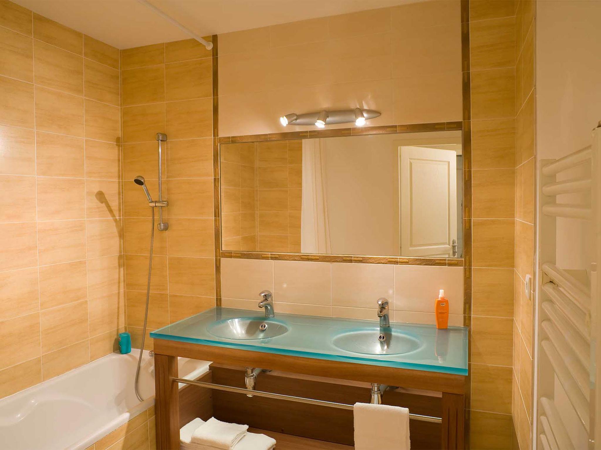 "Le Domaine de Fontenelles", 2-room apartment 46 m2. Bright, practical and beautiful furnishings: living/sleeping room with 1 double sofabed, dining table and TV can be hired. Exit to the balcony. 1 room with 2 sleeping facilities. Kitchenette (4 hot plates, dishwasher, toaster, kettle, electric coffee machine). Bathroom, sep. WC. Electric heating. Balcony or terrace. Terrace furniture, balcony furniture. Please note: non-smokers only. Maximum 2 pets/ dogs allowed. Smoke alarm, fire extinguisher.