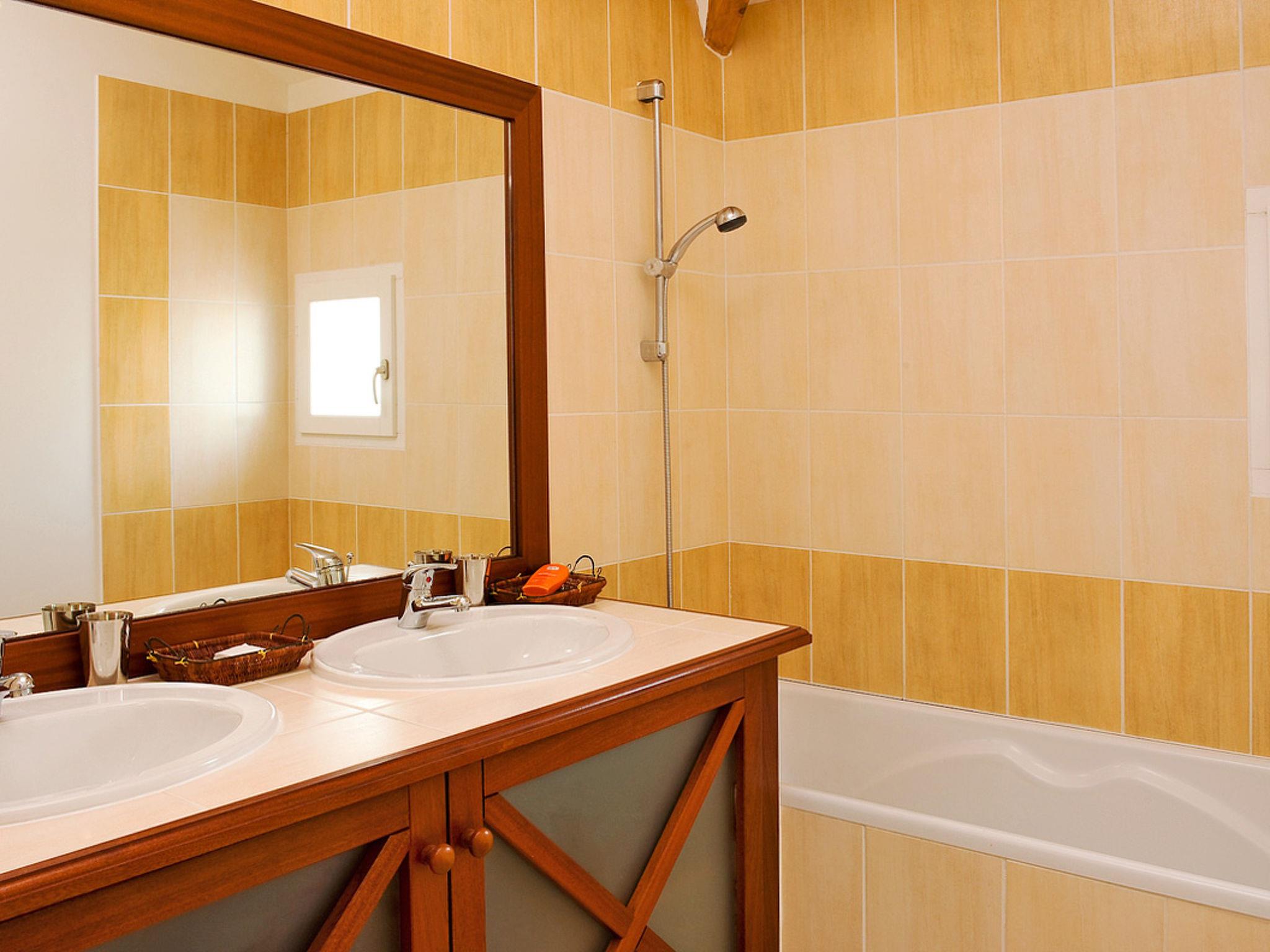 "Le Domaine de Fontenelles", 3-room terraced house 77 m2 on 2 levels. Bright, practical and beautiful furnishings: living/dining room with dining table and TV can be hired. Exit to the terrace. 1 room with 1 french bed (1 x 140 cm, length 180 cm). Kitchenette (4 hot plates, dishwasher, toaster, kettle, freezer, electric coffee machine). Bathroom, sep. WC. Electric heating. Upper floor: 1 room with 2 beds (90 cm, length 180 cm). Sep. WC. Electric heating. Terrace, small garden, lawn. Terrace furniture. Please note: non-smoking house. Maximum 2 pets/ dogs allowed. Smoke alarm, fire extinguisher.