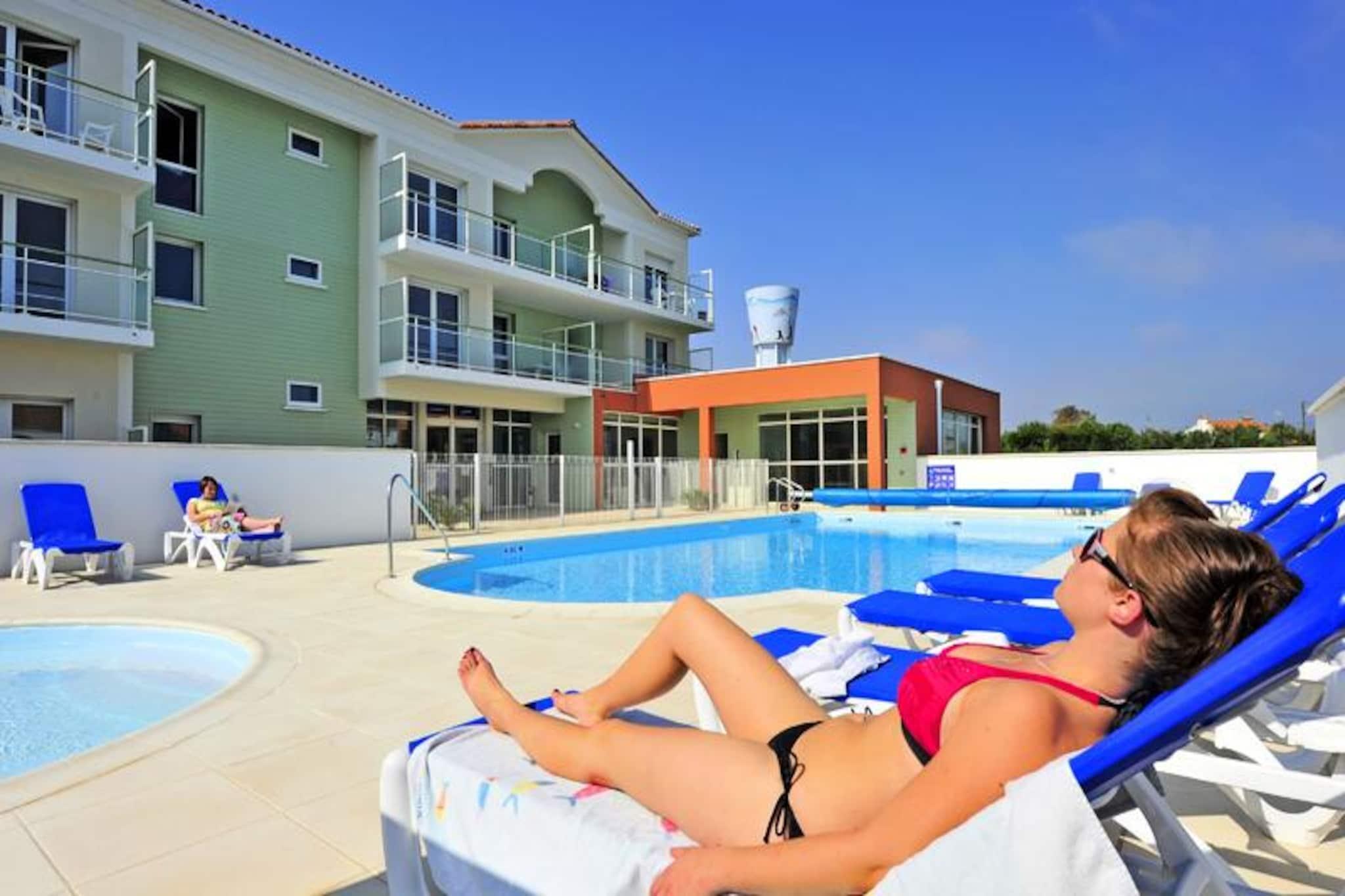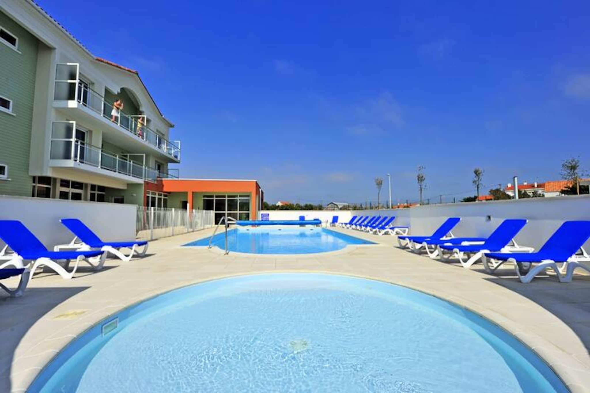 I Saint Gilles Croix de Vie er Résidence Goélia La Grande Plage*** ideelt beliggende 400 m fra en 3,6 km lang strand. Adgang til denne strand er til fods via en fodgængerbro. Boligen består af dobbelthuse og lejligheder. Dette kystmiljø er boligens virkelige "plus", surfentusiaster vil finde, hvad de leder efter, med pladsen "La Passerelle" dedikeret til denne sport. Strandklubben vil glæde børn, takket være de aktiviteter, den tilbyder: holdsport, hoppepude, trampoliner (klub uafhængig af boligen). Desuden er alle resortets butikker og aktiviteter (markeder, restauranter, barer, natklubber osv.) 1,8 km væk. Til dine fritidsaktiviteter i selve boligen finder du en opvarmet udendørs swimmingpool og et wellness-område (mod et ekstra gebyr) med sauna og spabade. 3 Værelser 6 Personer. Terrasse eller altan. Stue med sovesofa til 2 personer, soveværelse med 2 enkeltsenge, soveværelse med dobbeltseng (140 x 190) med tilstødende brusebadeværelse Udstyret køkken. Badeværelse eller bruser og toilet. Wifi-adgang - i receptionen i euro timer; åbning af den. Adgang begrænset til 30 minutter pr. dag pr. voksen. Priser for ubegrænset adgang: EURO6/dag, EURO21/uge, EURO31/2 uger. Minutpakker: 5€ i 60 minutter og 8€ i 2 timer. Kæledyr tilladt - 10,50EURO/nat, 49EURO/uge, 98EURO/uge i 3 til 4 uger. Bemærk venligst ved tilmelding (anti-rabies certifikat påkrævet). Angrebshunde (pittbull) og 2. kat. (vagt/forsvar) er forbudt. Kun 1 dyr pr. overnatning. Depositum (ekstra) - 250 Babykit - (seng, stole, bad) EURO5/ophold, skal forudbestilles samtidig med overnatning og afhængig af tilgængelighed. Sengelinned - 12,50 EURO/skift Håndklæder - 10€/pers/skift Slutrengøring - (ekskl. tekøkken) 60€ til 89€ afhængig af lejetype. Slutrengøring eller daglig rengøring efter anmodning Parkering - en parkeringsplads inkluderet, afhængig af tilgængelighed Morgenmad - EURO13/dag/voksen og EURO7,5/dag/barn under 16 til 12 år. Forudbestilles dagen før og betales på stedet. Swimmingpool - opvarmet udendørs - gratis adgang, åben fra april til slutningen af ??september (afhængigt af vejrforhold) + rund børnepool Sauna - Betales på stedet Turistskat (ekstra gebyr) - betales på stedet, afhængigt af tilgængelighed Fjernsyn - inkluderet