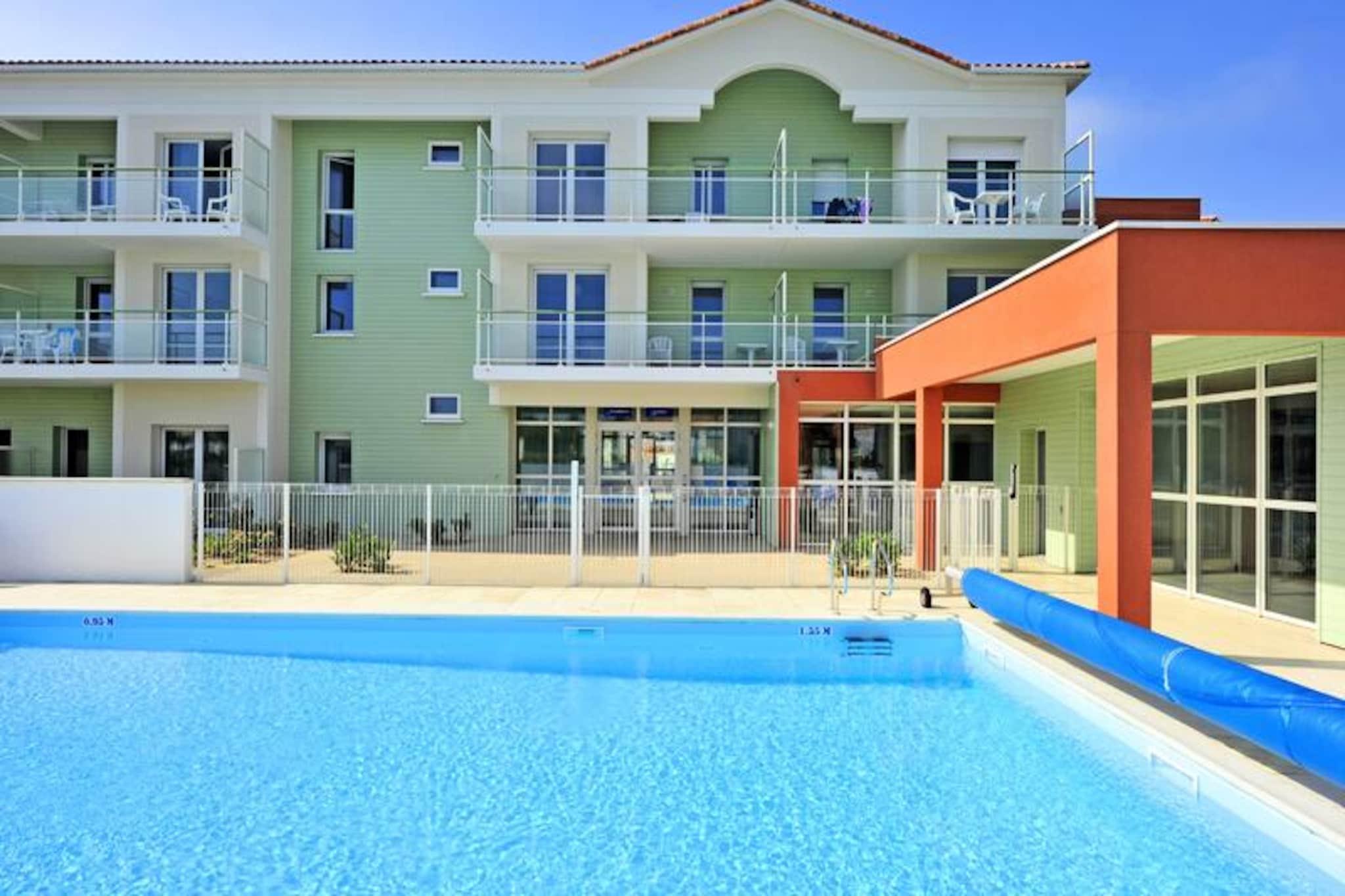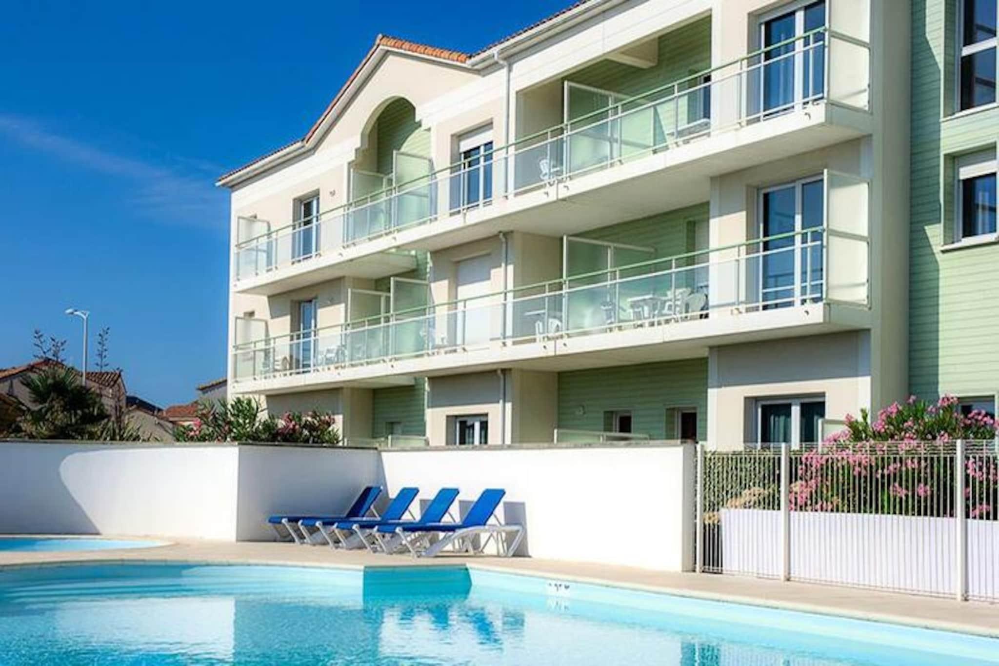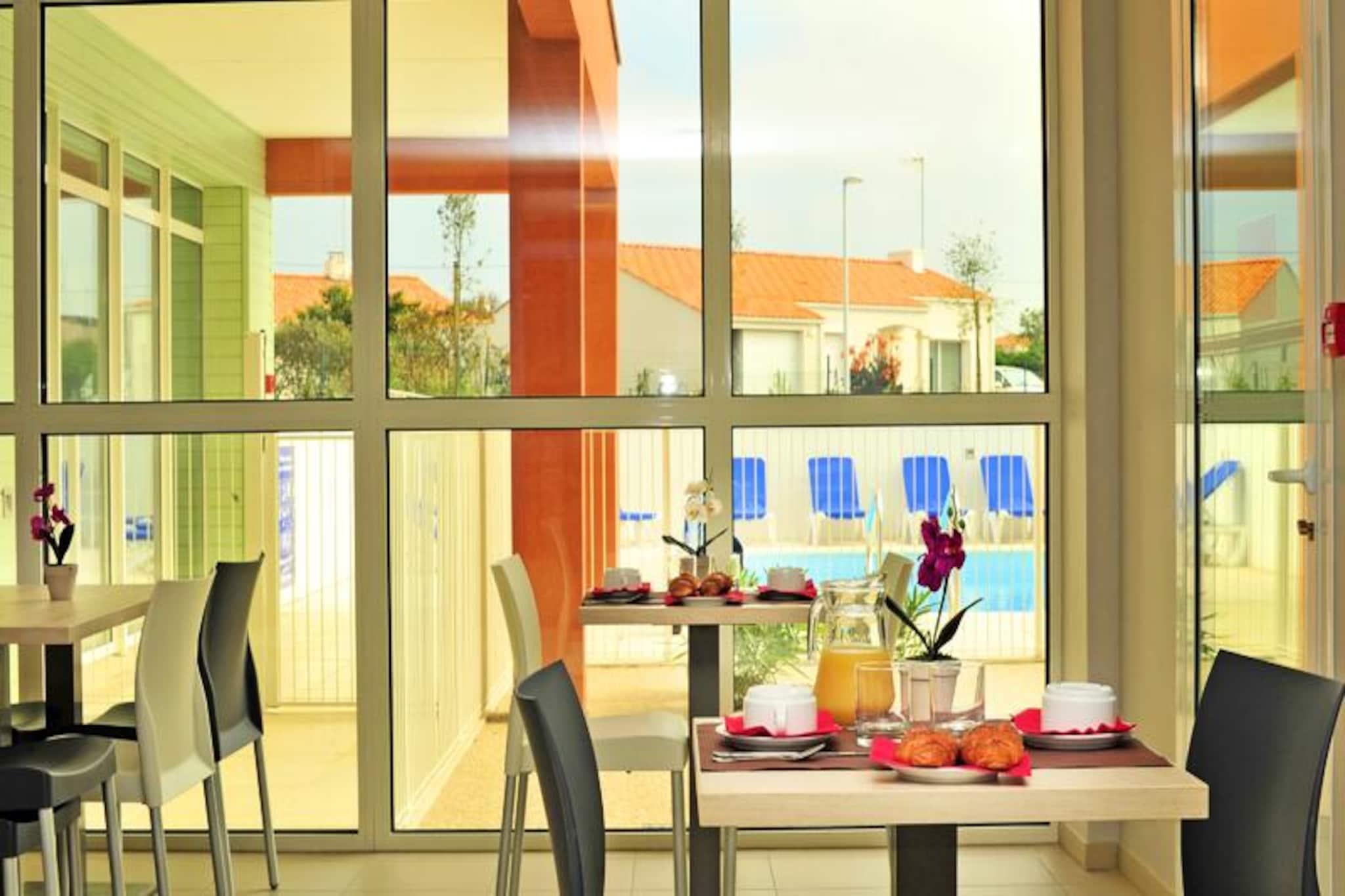 I Saint Gilles Croix de Vie er Résidence Goélia La Grande Plage*** ideelt beliggende 400 m fra en 3,6 km lang strand. Adgang til denne strand er til fods via en fodgængerbro. Boligen består af dobbelthuse og lejligheder. Dette kystmiljø er boligens virkelige "plus", surfentusiaster vil finde, hvad de leder efter, med pladsen "La Passerelle" dedikeret til denne sport. Strandklubben vil glæde børn, takket være de aktiviteter, den tilbyder: holdsport, hoppepude, trampoliner (klub uafhængig af boligen). Desuden er alle resortets butikker og aktiviteter (markeder, restauranter, barer, natklubber osv.) 1,8 km væk. Til dine fritidsaktiviteter i selve boligen finder du en opvarmet udendørs swimmingpool og et wellness-område (mod et ekstra gebyr) med sauna og spabade. 3 værelses hus 6 personer. Terrasse. I stueetagen stue med sovesofa til 2 personer. Ovenpå, soveværelse med 2 enkeltsenge, soveværelse med dobbeltseng (140 x 190) Udstyret køkken. Separat badeværelse og toilet. Bemærk venligst: denne bolig er fordelt på 2 etager. Wifi-adgang - i receptionen i euro timer; åbning af den. Adgang begrænset til 30 minutter pr. dag pr. voksen. Priser for ubegrænset adgang: EURO6/dag, EURO21/uge, EURO31/2 uger. Minutpakker: 5€ i 60 minutter og 8€ i 2 timer. Kæledyr tilladt - 10,50EURO/nat, 49EURO/uge, 98EURO/uge i 3 til 4 uger. Bemærk venligst ved tilmelding (anti-rabies certifikat påkrævet). Angrebshunde (pittbull) og 2. kat. (vagt/forsvar) er forbudt. Kun 1 dyr pr. overnatning. Depositum (ekstra) - 250 Babykit - (seng, stole, bad) EURO5/ophold, skal forudbestilles samtidig med overnatning og afhængig af tilgængelighed. Sengelinned - 12,50 EURO/skift Håndklæder - 10€/pers/skift Slutrengøring - (ekskl. tekøkken) 60€ til 89€ afhængig af lejetype. Slutrengøring eller daglig rengøring efter anmodning Parkering - en parkeringsplads inkluderet, afhængig af tilgængelighed Morgenmad - EURO13/dag/voksen og EURO7,5/dag/barn under 16 til 12 år. Forudbestilles dagen før og betales på stedet. Swimmingpool - opvarmet udendørs - gratis adgang, åben fra april til slutningen af ??september (afhængigt af vejrforhold) + rund børnepool Sauna - Betales på stedet Turistskat (ekstra gebyr) - betales på stedet, afhængigt af tilgængelighed Fjernsyn - inkluderet