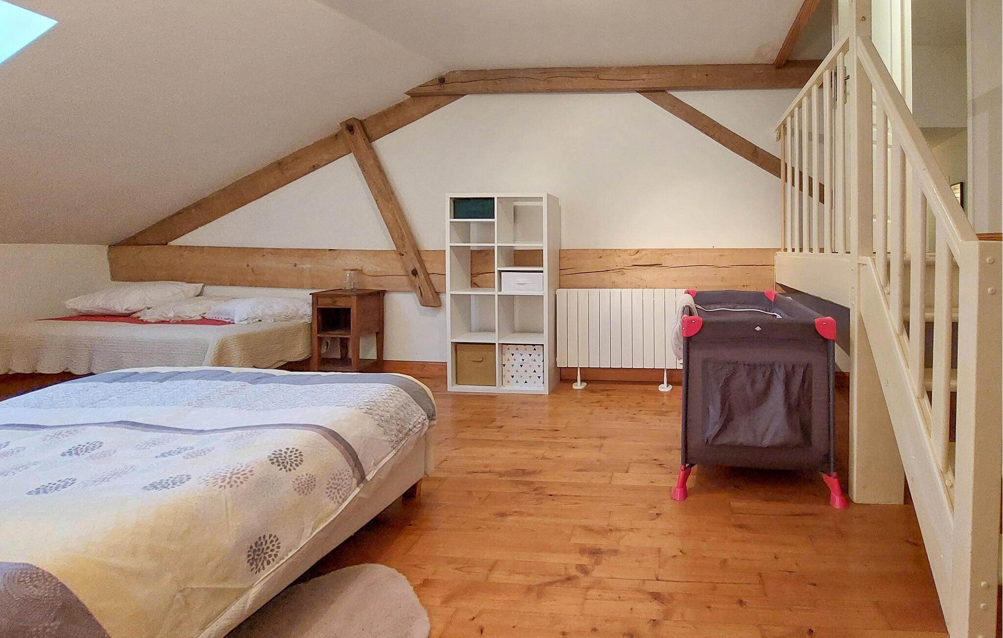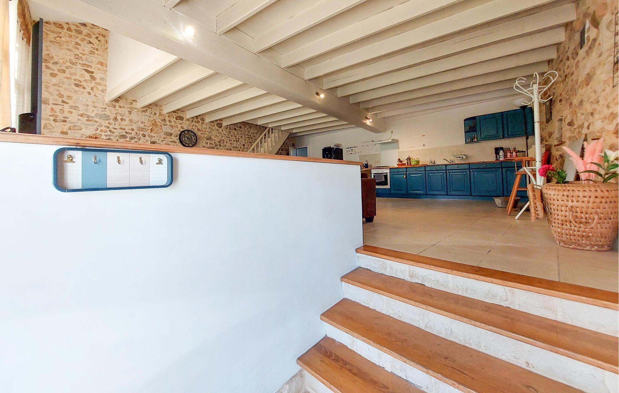 Dette charmerende feriehus stammer fra en smukt renoveret lade og har et rummeligt og komfortabelt interiør, der tilbyder masser af plads til en harmonisk ferie med familien. Nyd fælles måltider og sjove spilleaftener omkring spisebordet, læn jer tilbage i de behagelige sofaer og slap af efter en begivenhedsrig dag med en god film.