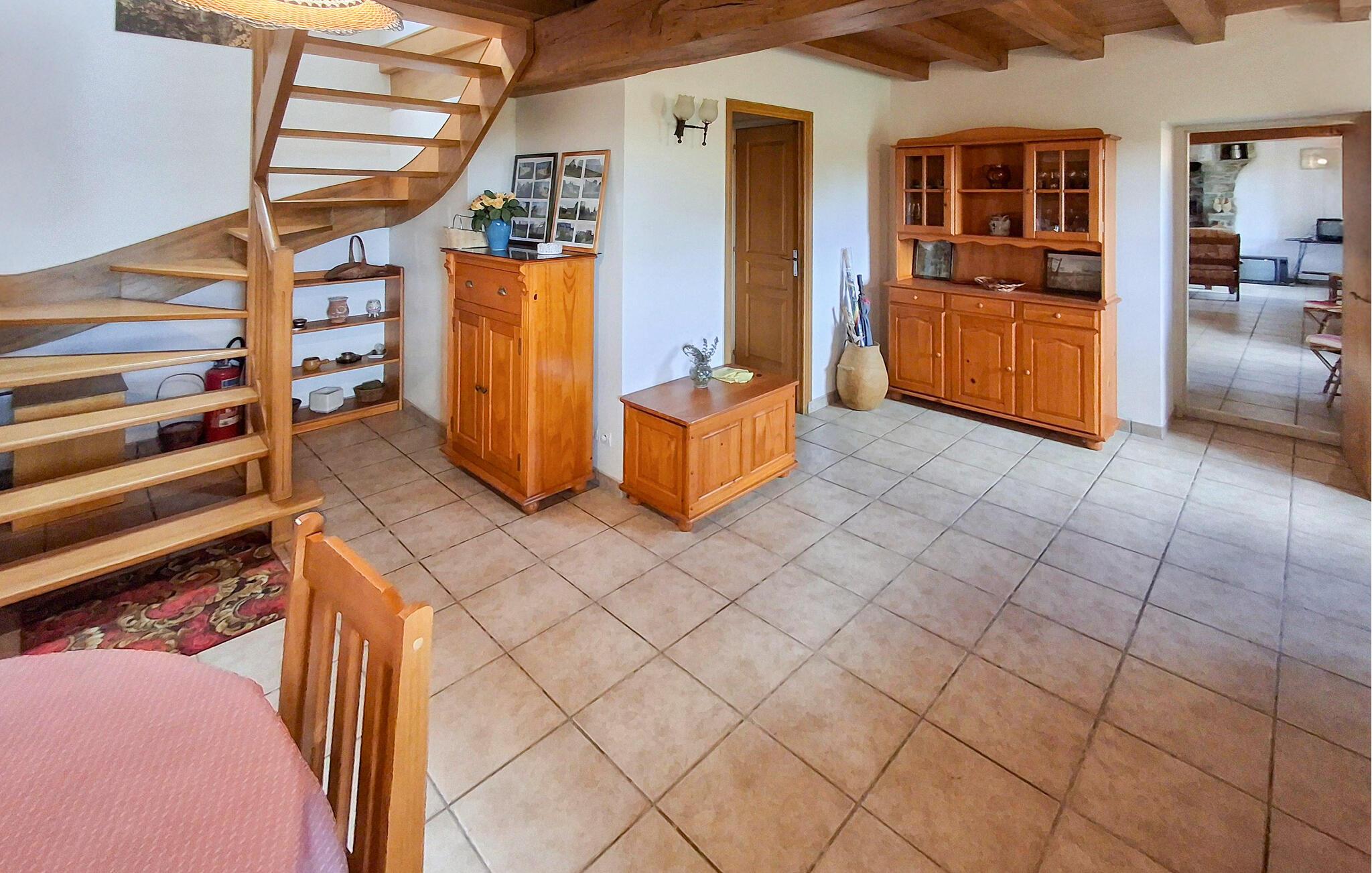Beliggende på en stor grund byder dette smukke stenhus jer velkommen, hvor synlige træbjælker og charmerende, traditionelle møbler skaber en autentisk atmosfære. Tilbered lækre retter med lokale råvarer og planlæg dagens aktiviteter over harmoniske måltider. Efter en lang dag kan I fordybe jer i aften med et brætspil eller en god bog.