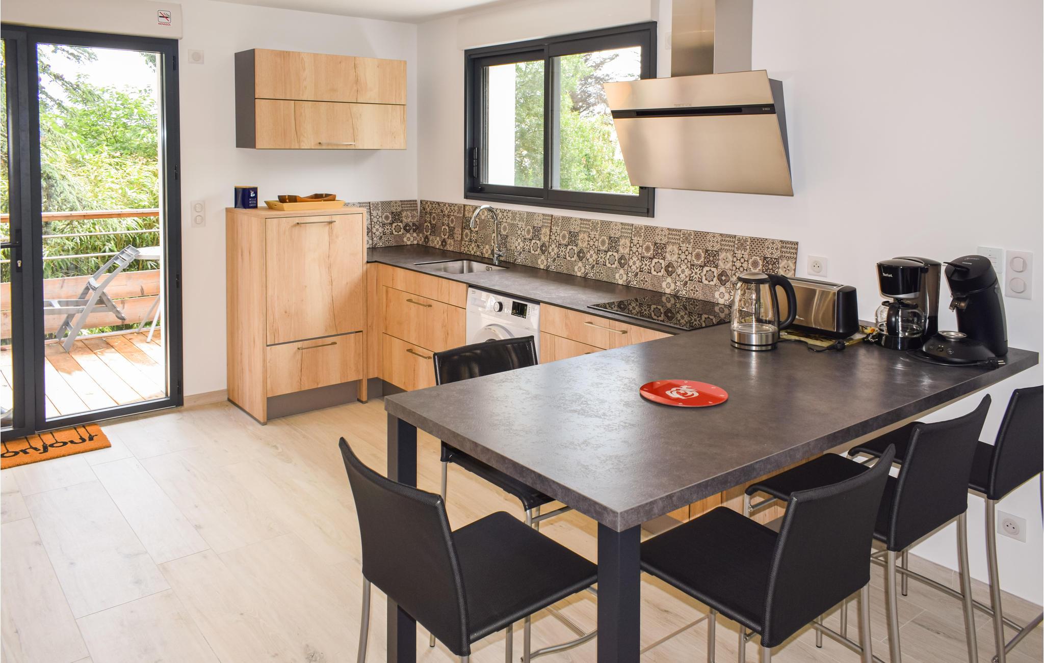 Takket være den smagfulde indretning og det moderne udstyrede badeværelse føler man sig hurtigt hjemme i dette feriehus. Den indhegnede 80 m2 store træterrasse er det perfekte sted at nyde dagens første kop kaffe og et godt glas vin om aftenen. Huset er omgivet af grønne områder, som gør, at det føles meget privat og beskyttet.